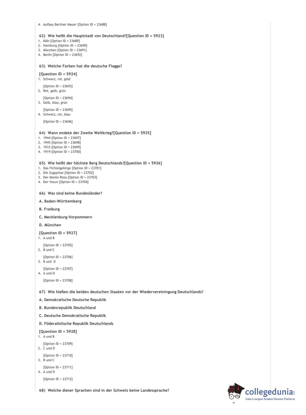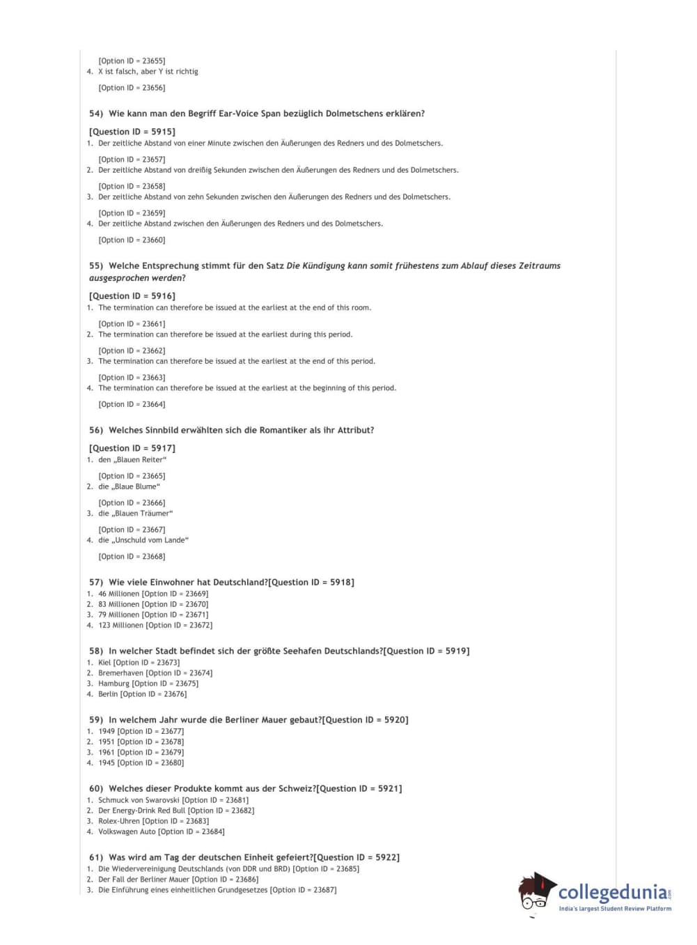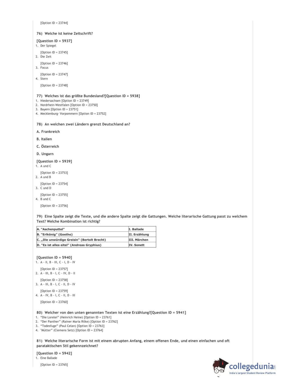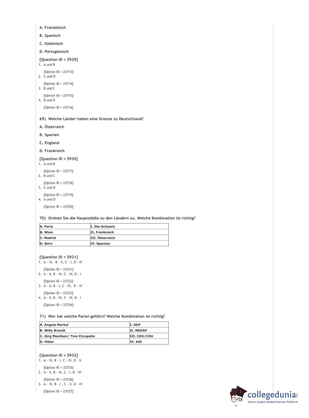 DUET 2021 DU MA German Question Paper with Answer Key PDFs Shift 2