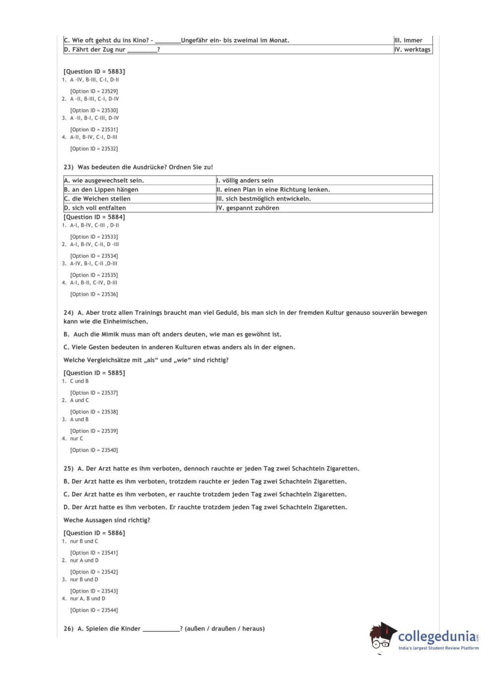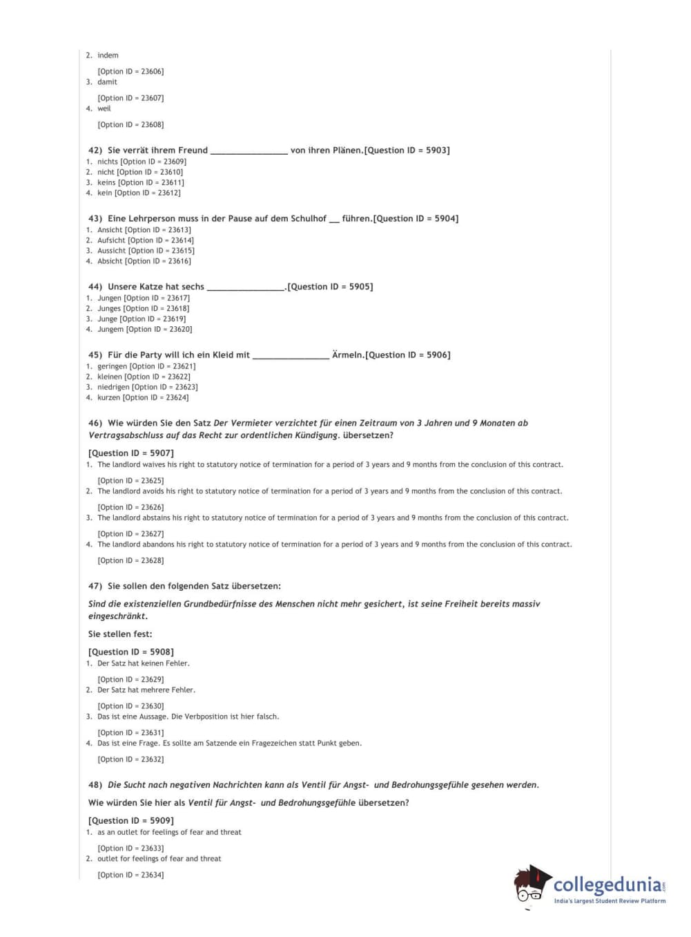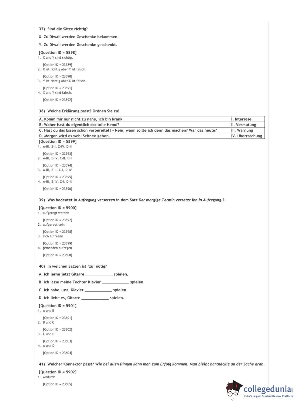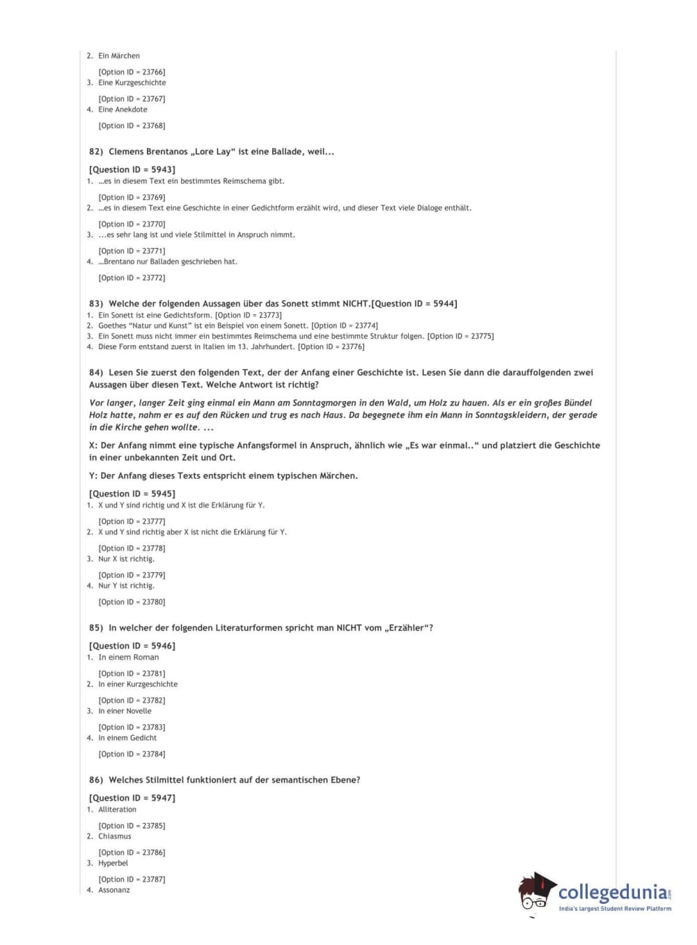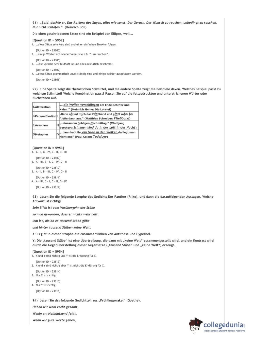 DUET 2021 DU MA German Question Paper with Answer Key PDFs Shift 2