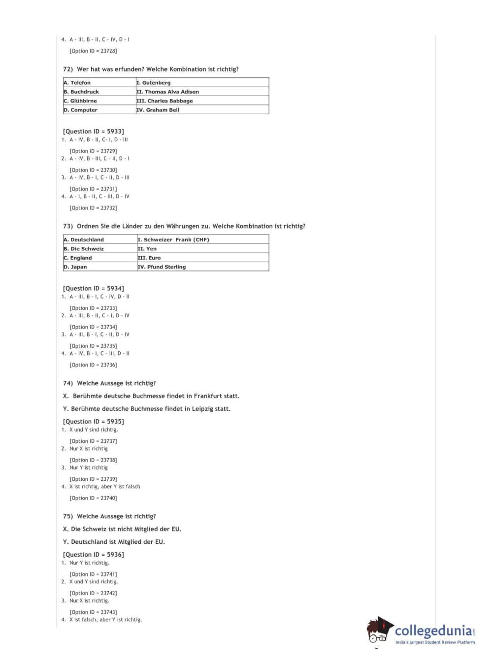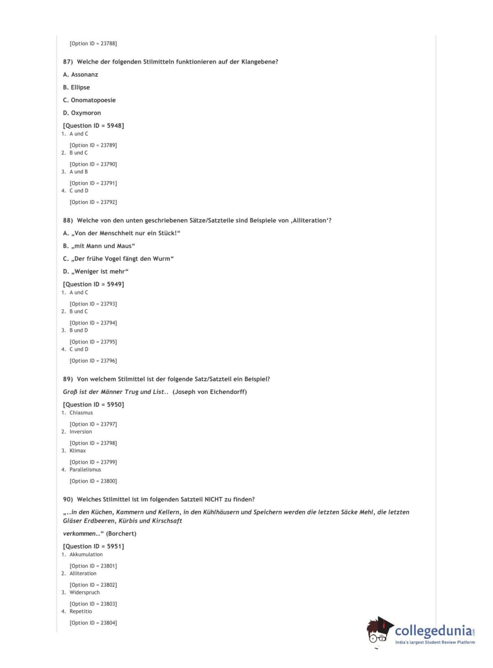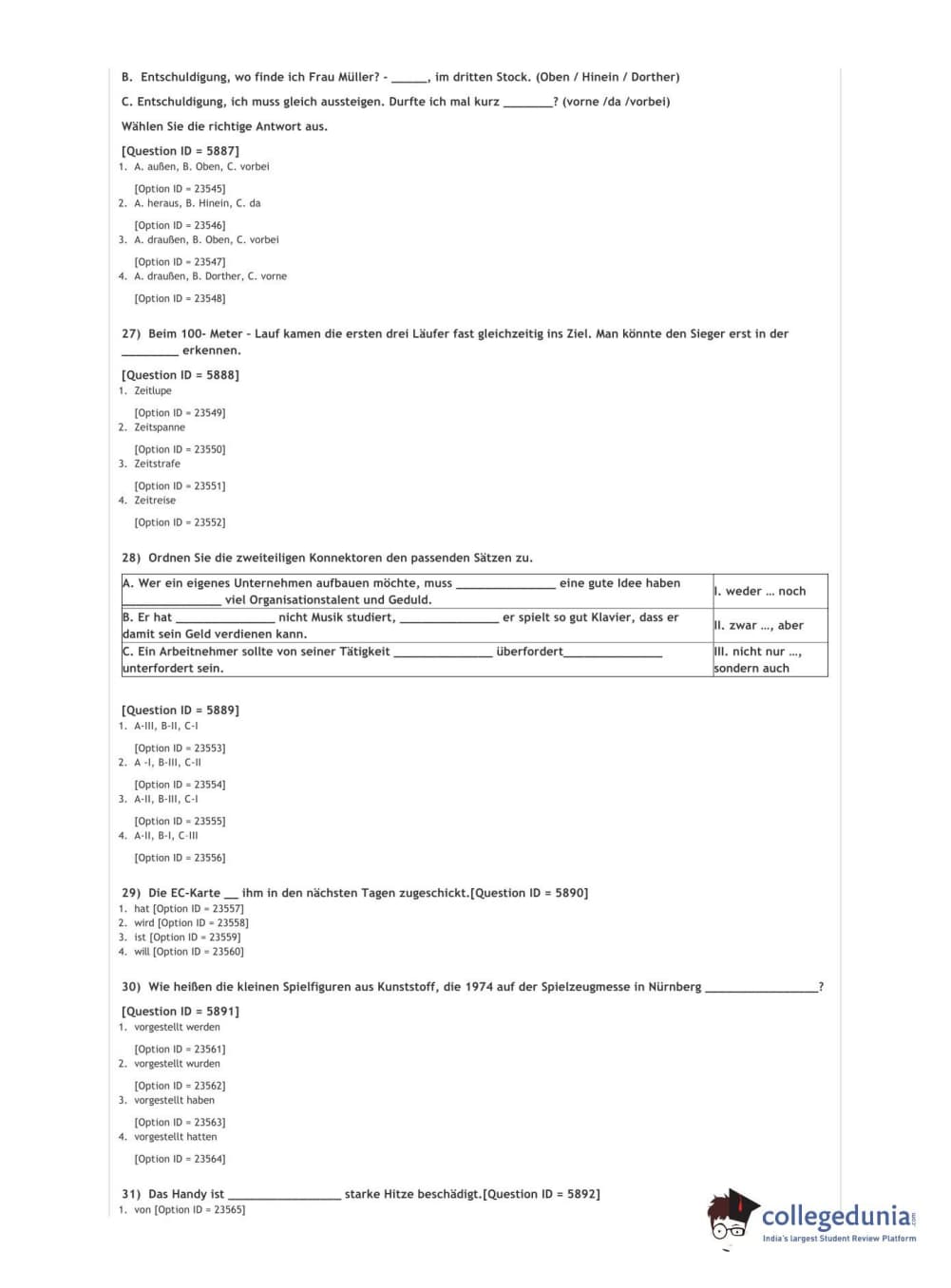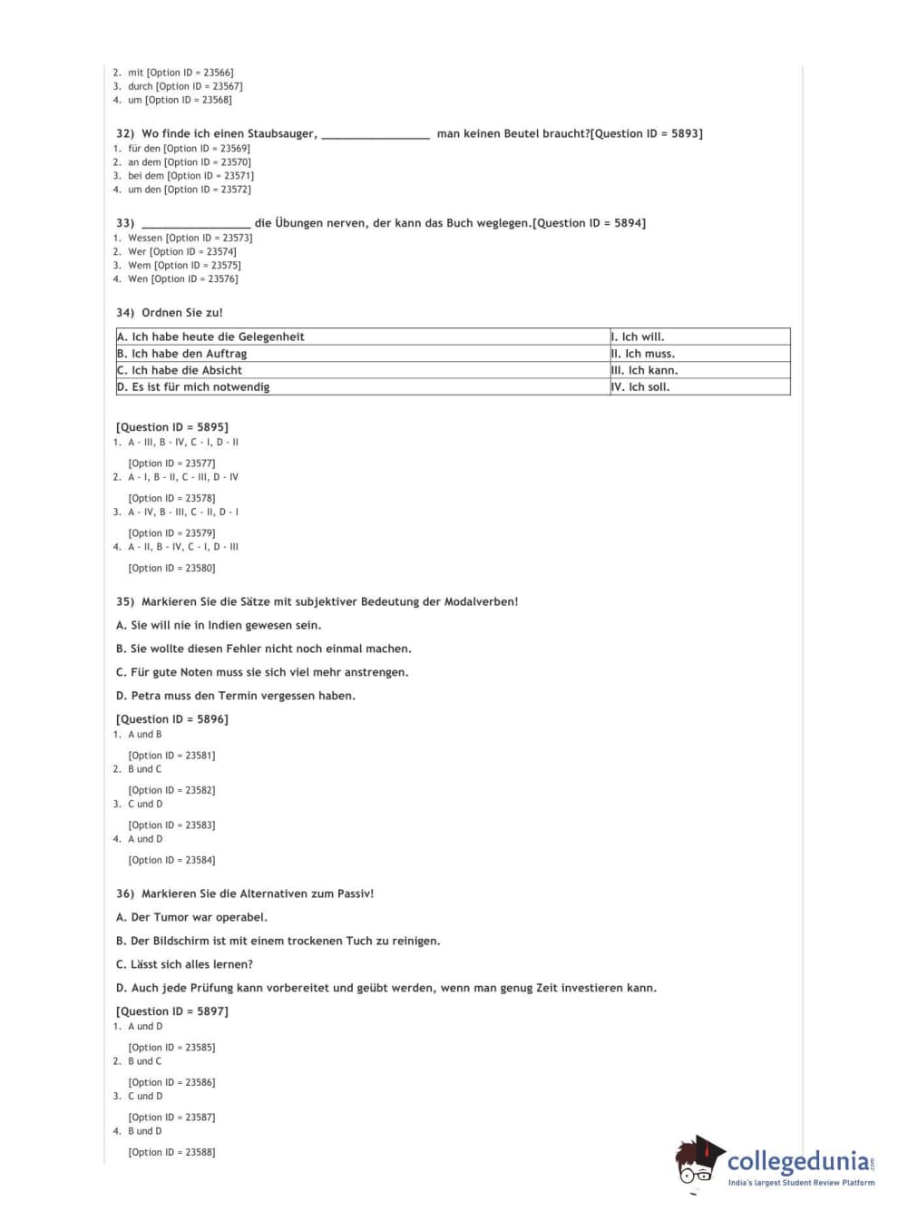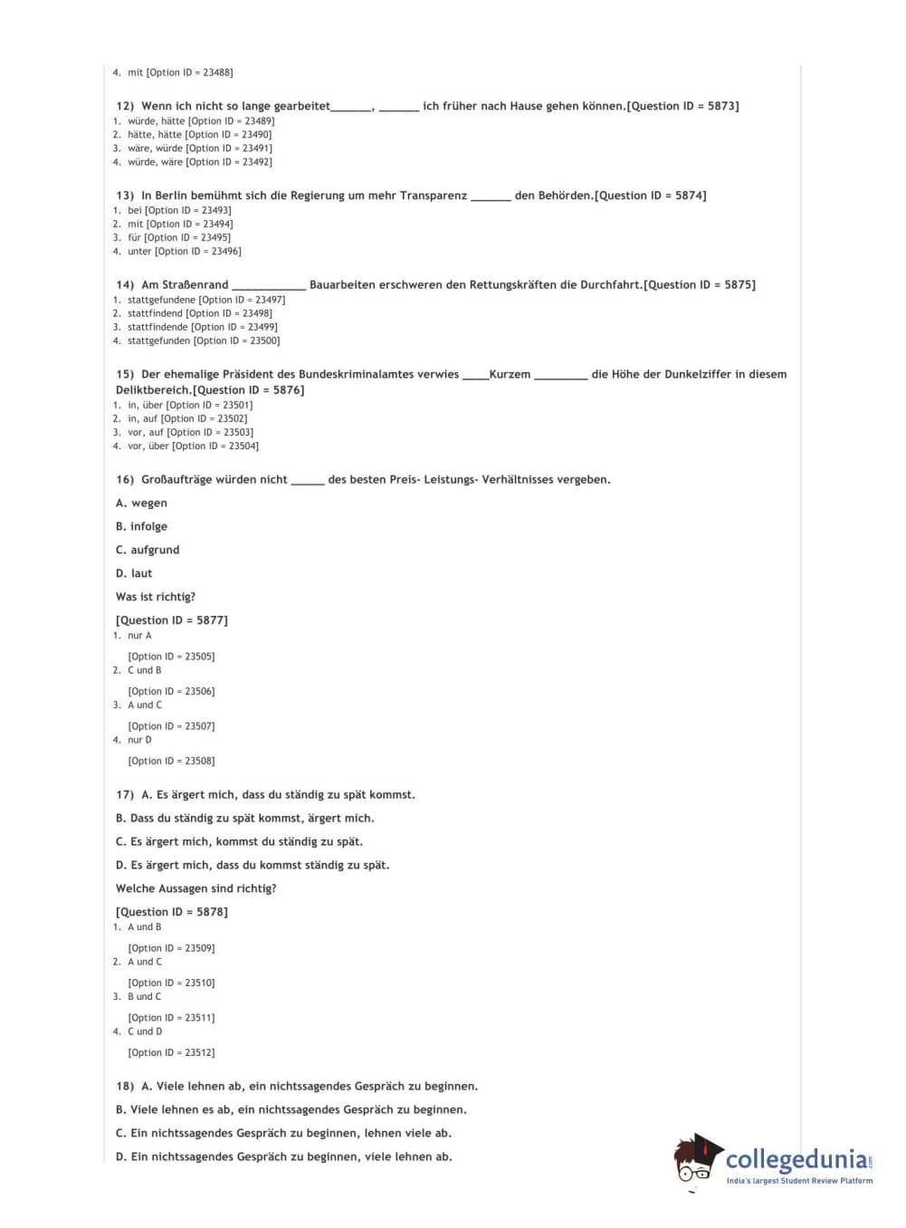 DUET 2021 DU MA German Question Paper with Answer Key PDFs Shift 2