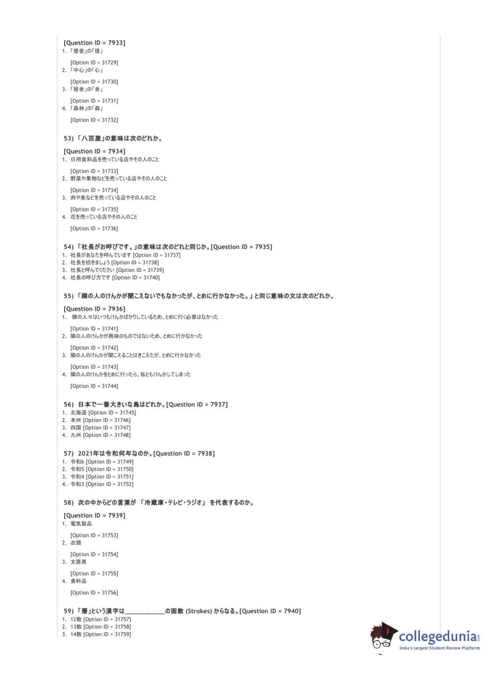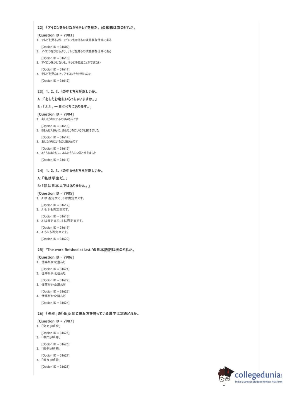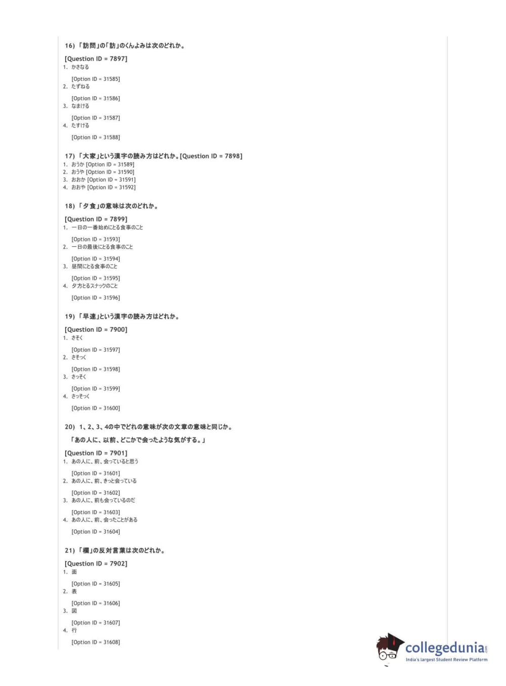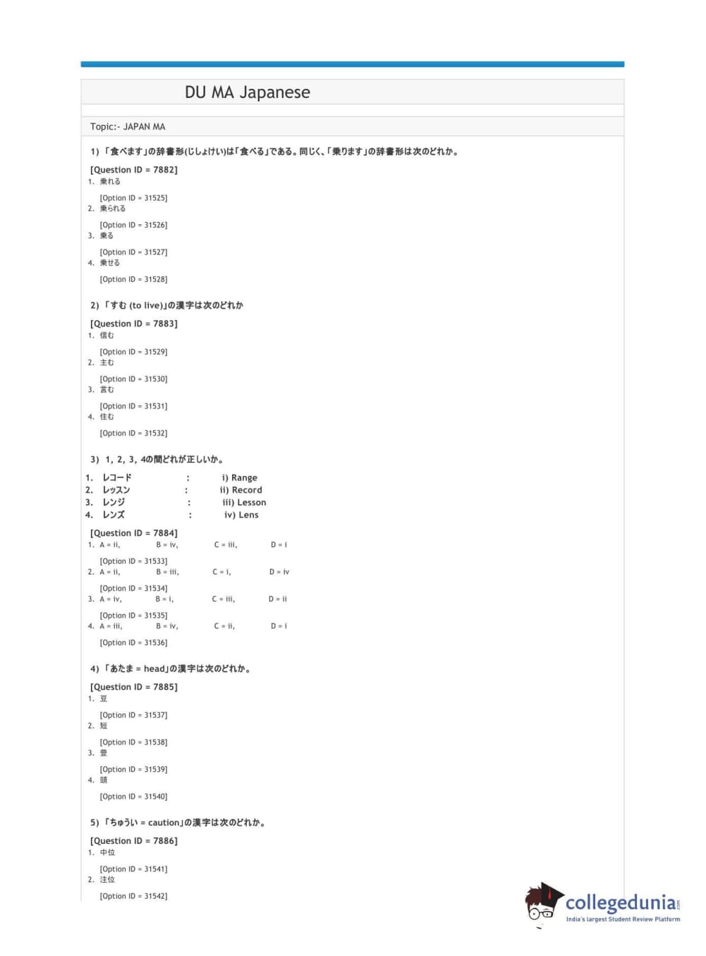 DUET 2021 DU MA Japanese Question Paper with Answer Key PDFs Shift 2