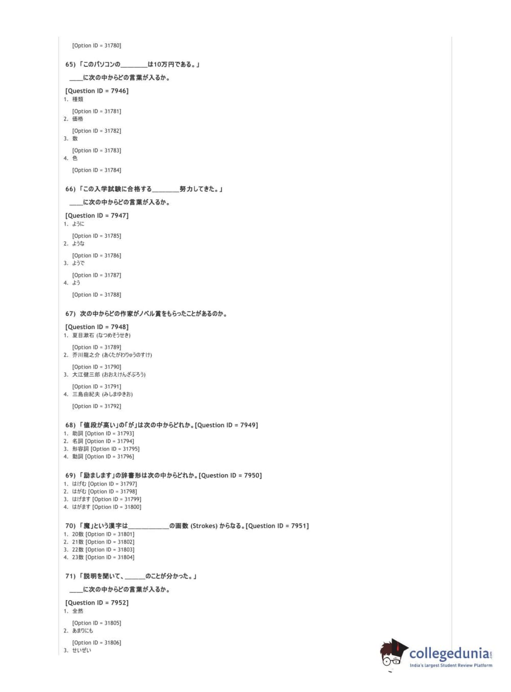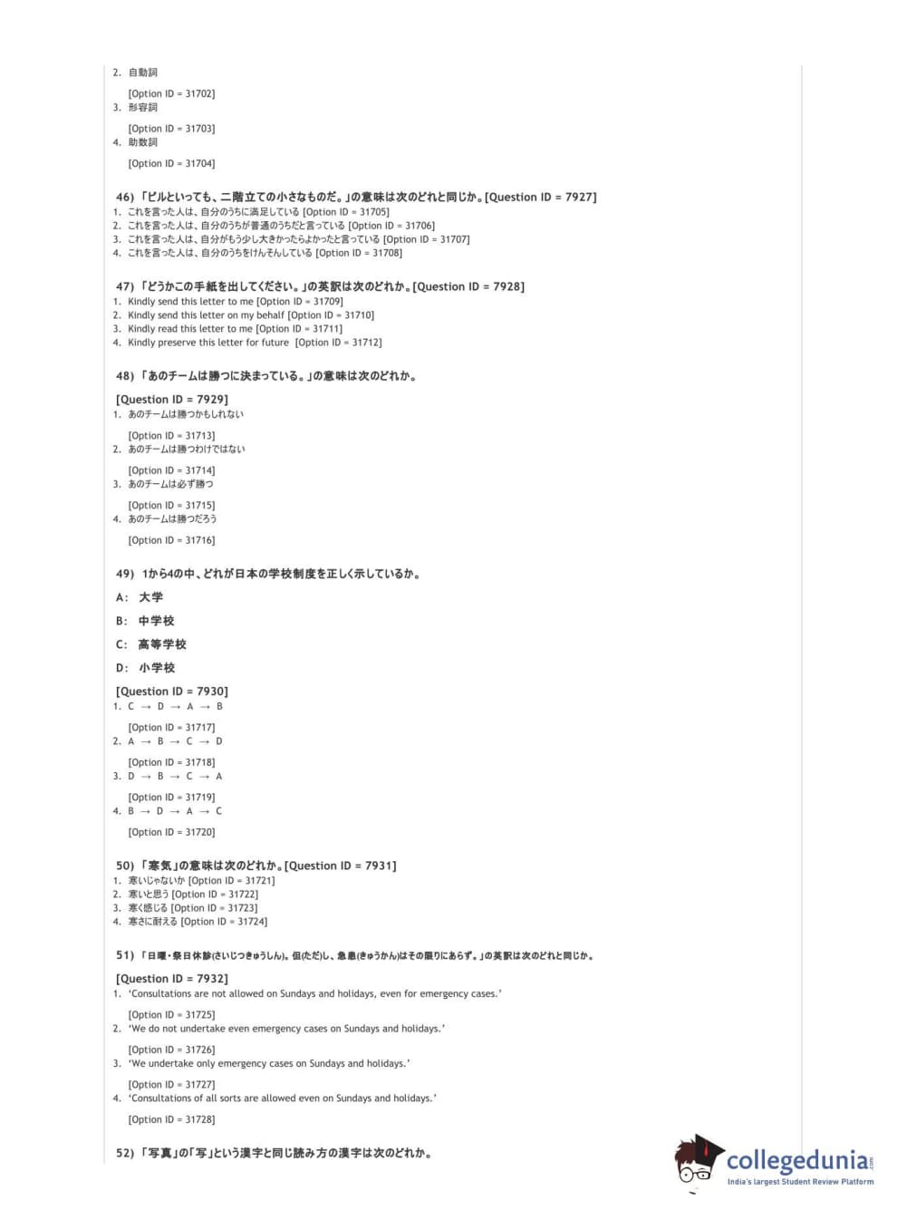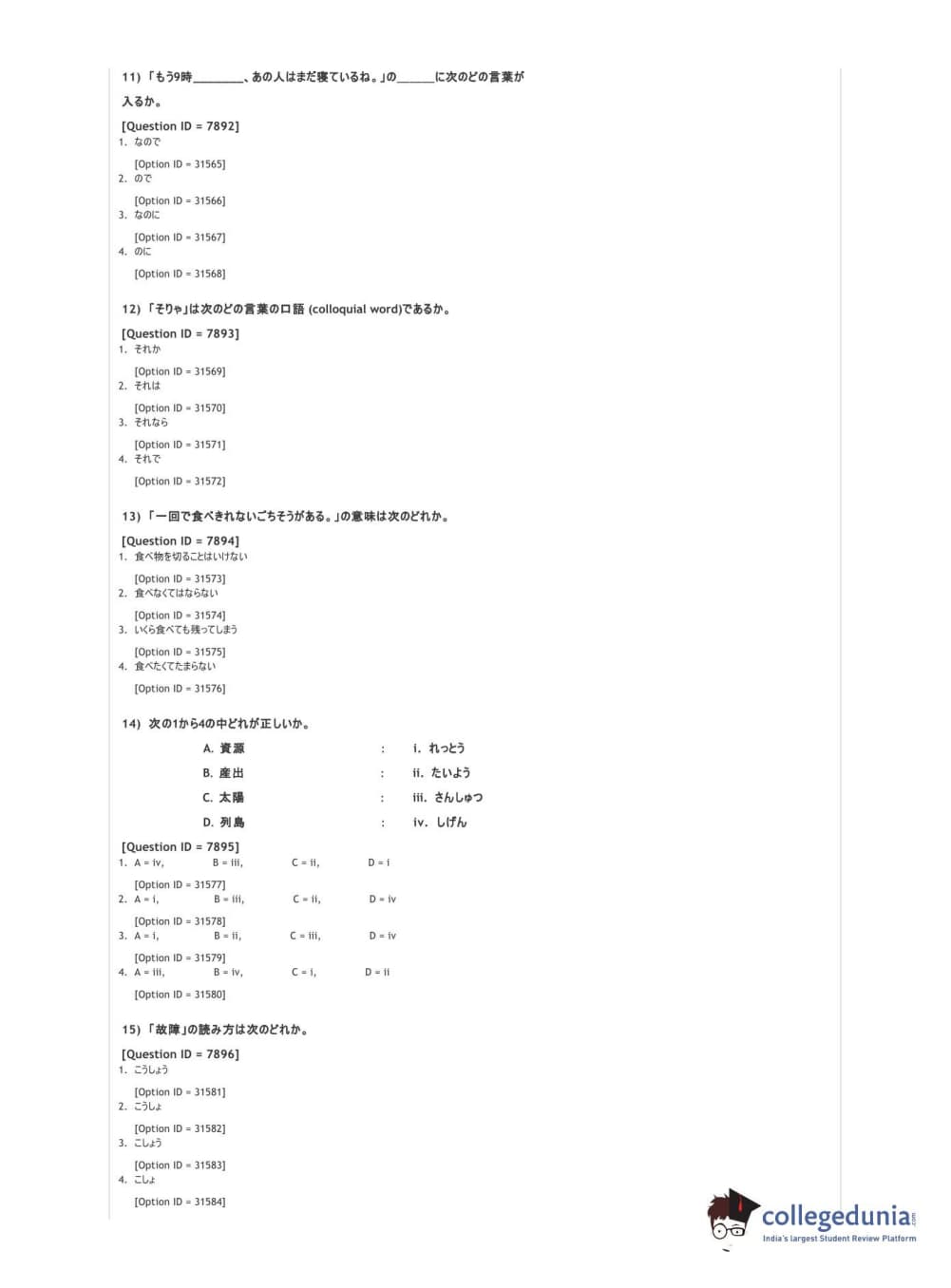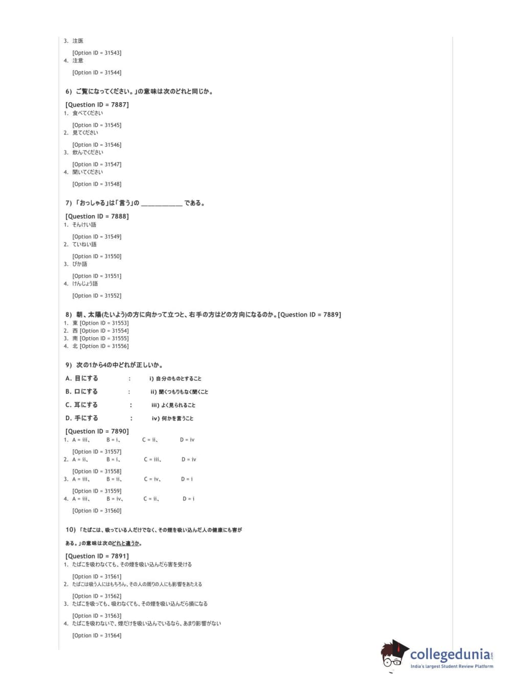 DUET 2021 DU MA Japanese Question Paper with Answer Key PDFs Shift 2