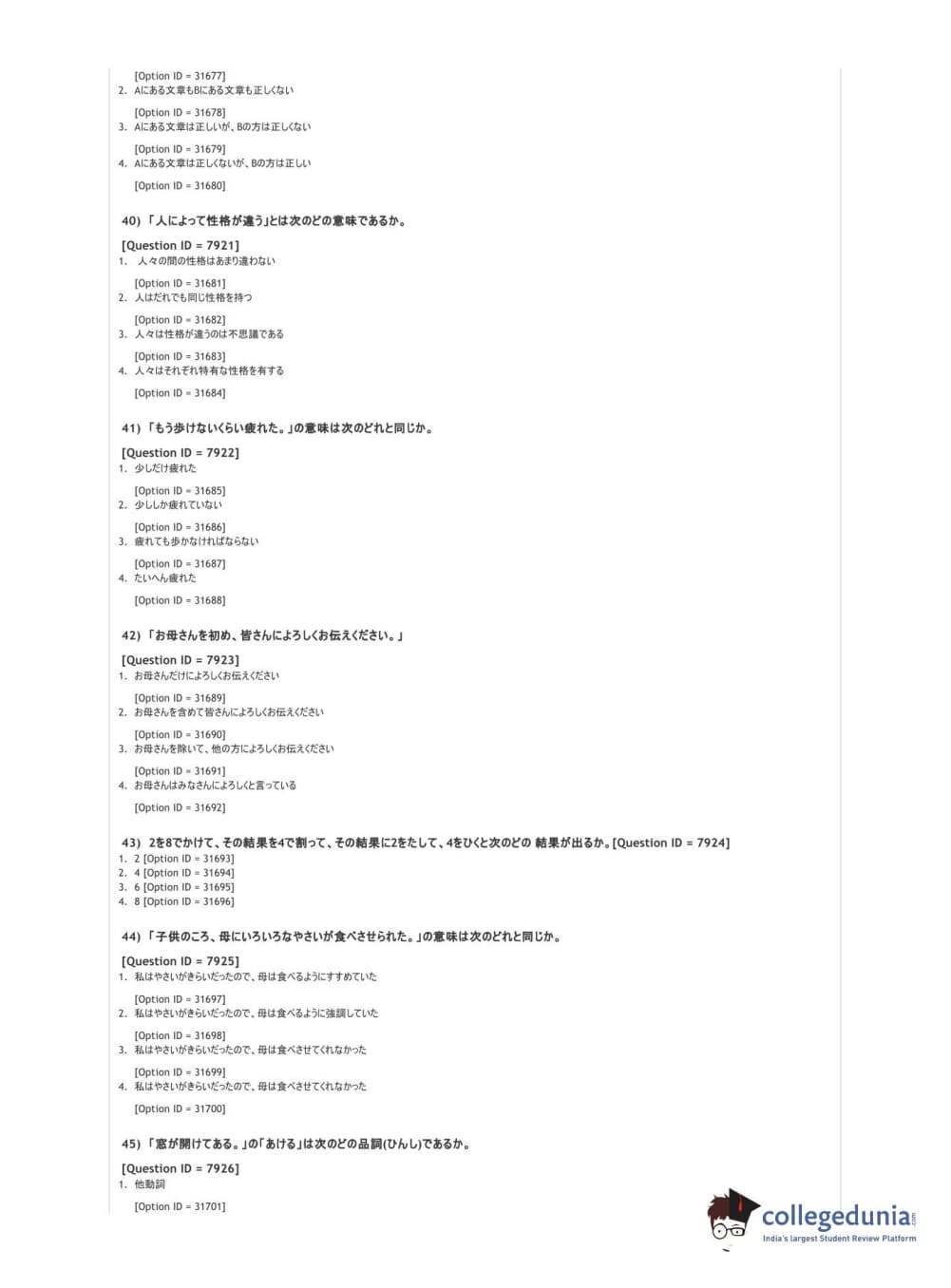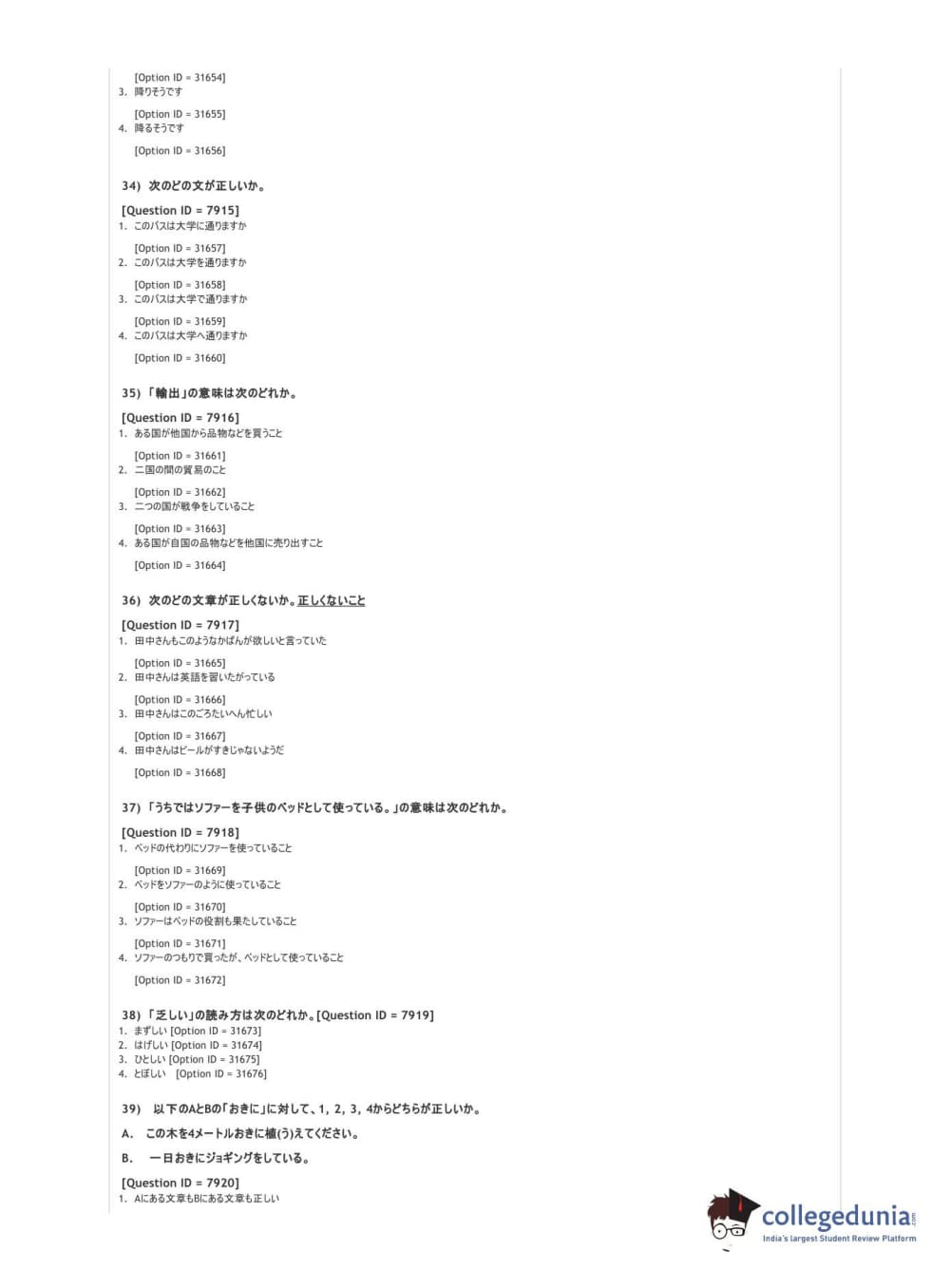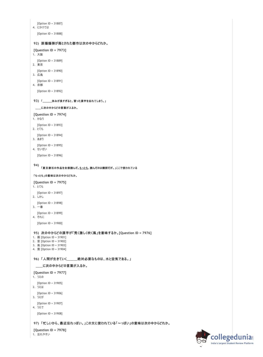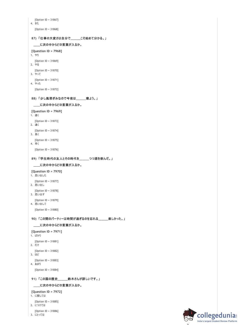 DUET 2021 DU MA Japanese Question Paper with Answer Key PDFs Shift 2
