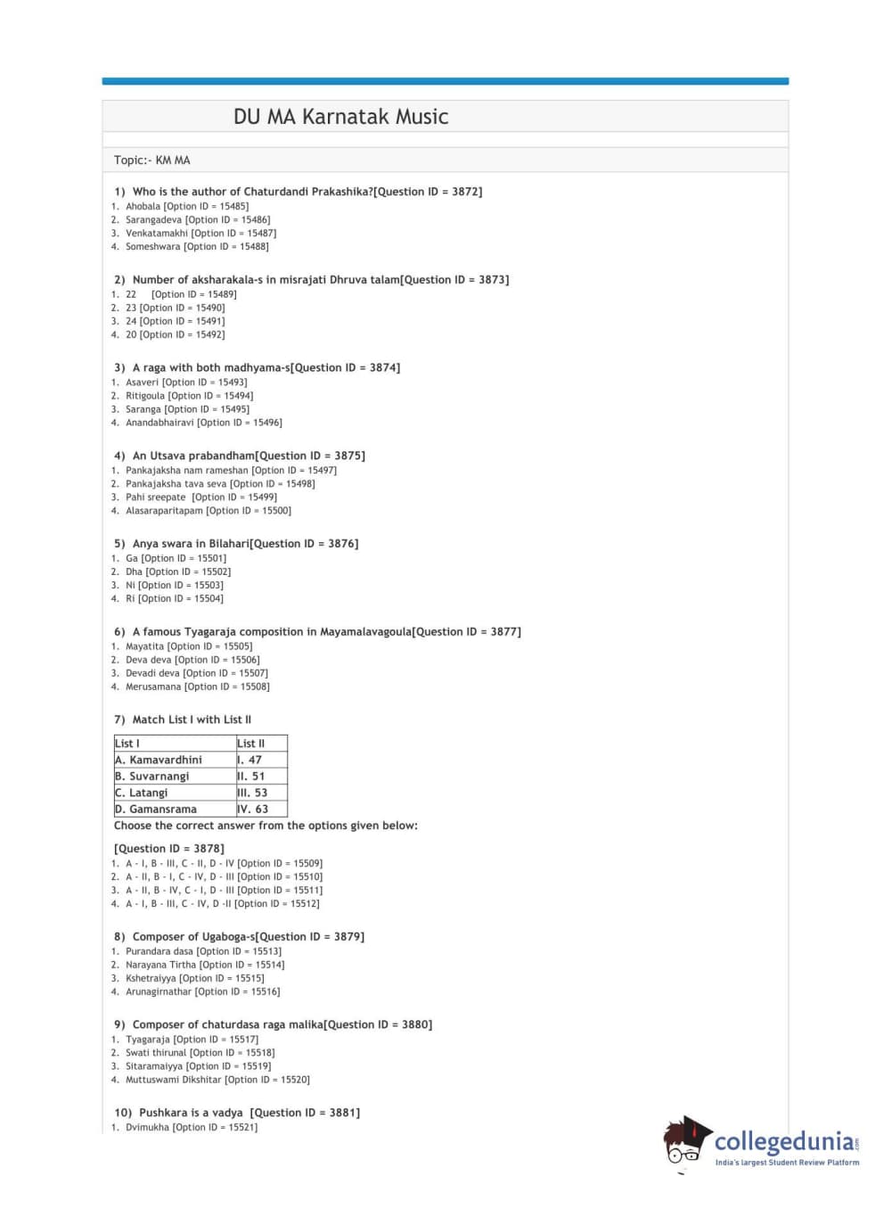 | DUET 2021 DU MA Karnatak Music Question Paper PDF | DUET 2021 DU MA Karnatak Music Answer Key PDF |