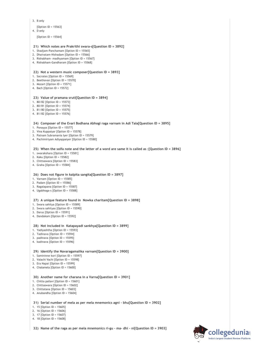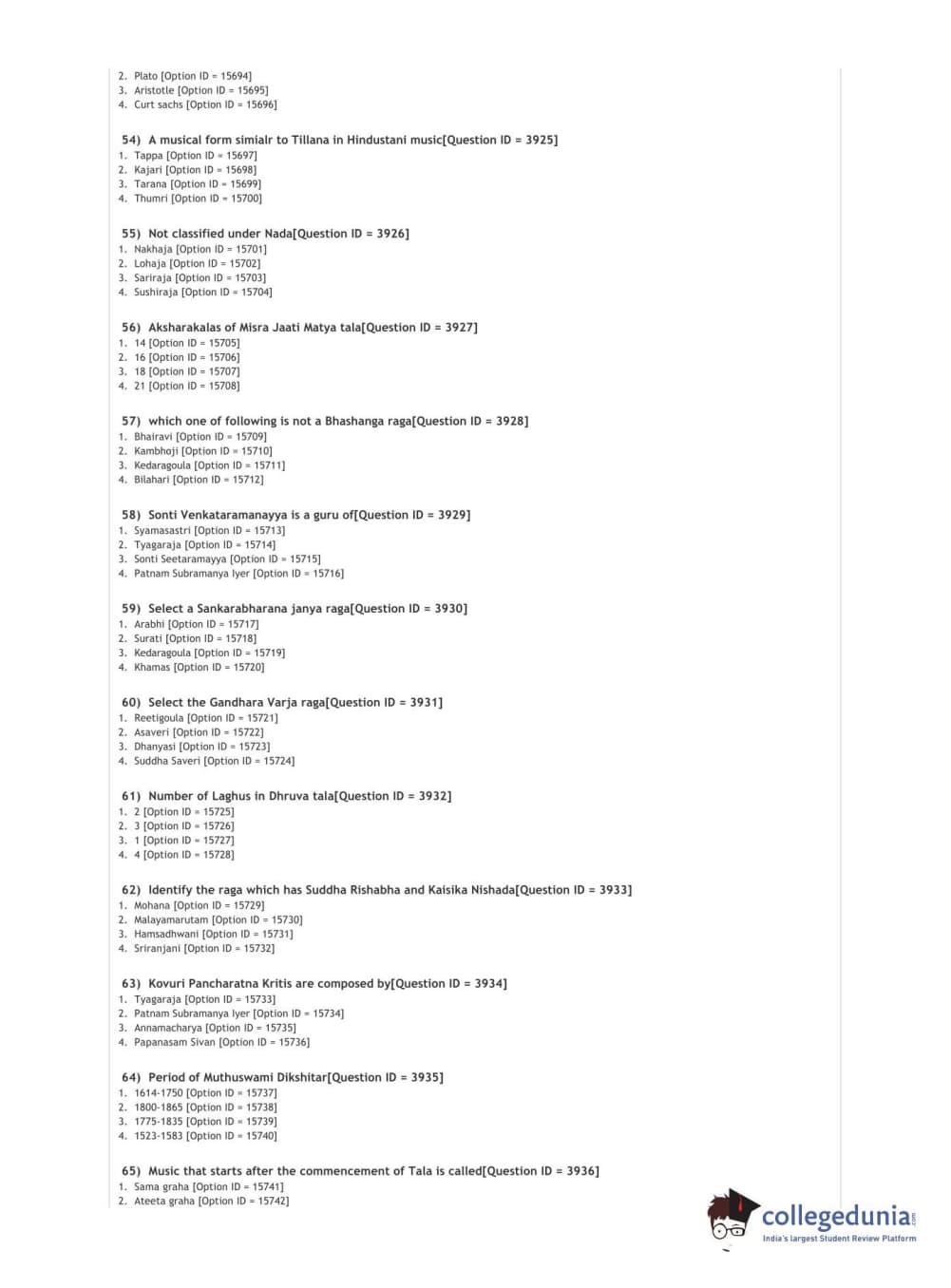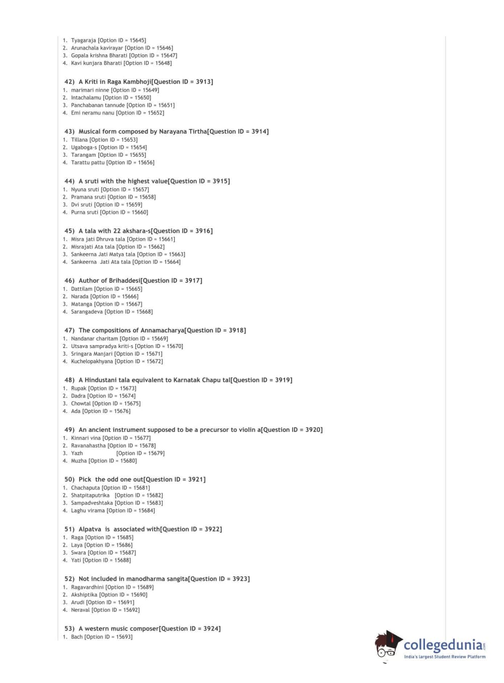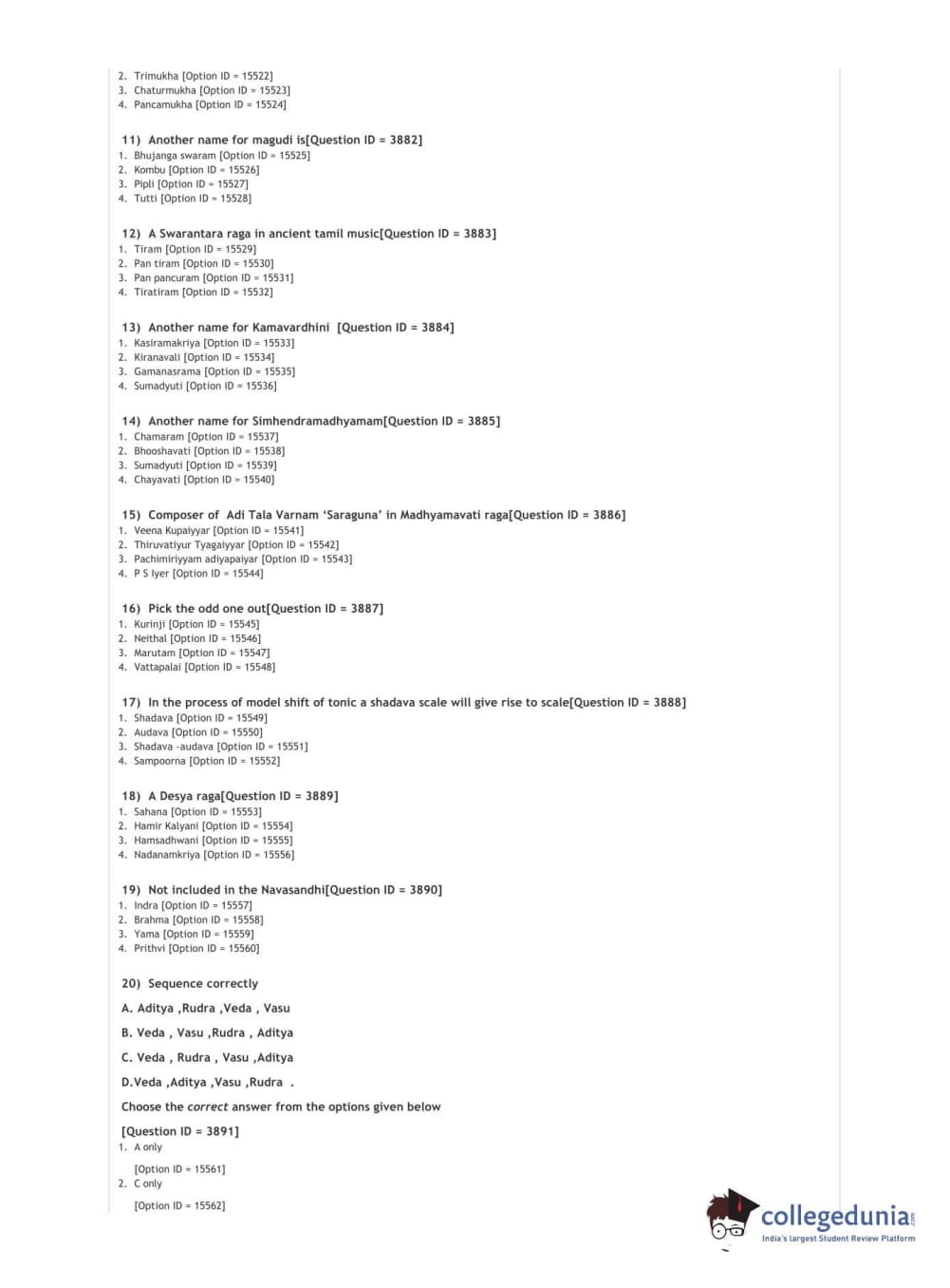DUET 2021 DU MA Karnatak Music Question Paper with Answer Key PDFs Shift 2