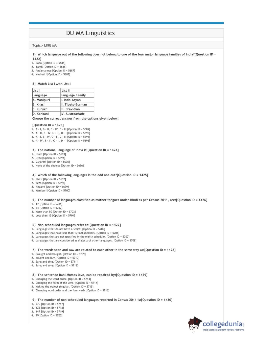 | DUET 2021 DU MA Linguistics Question Paper PDF | DUET 2021 DU MA Linguistics Answer Key PDF |