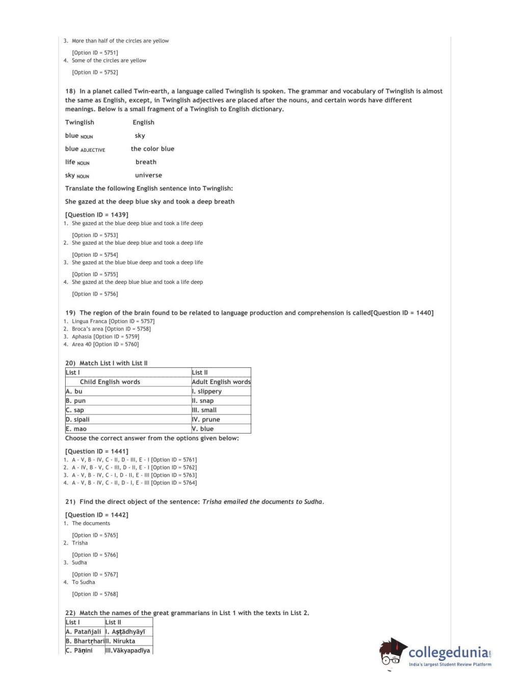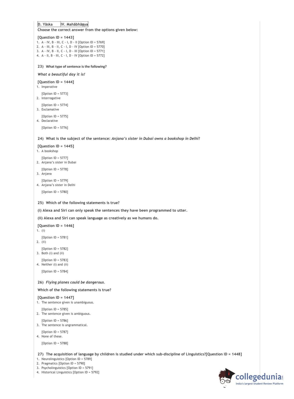 DUET 2021 DU MA Linguistics Question paper with answer key pdf conducted on September 26, 2021 in Shift 3 is available for download. The exam was successfully organized by National Testing Agency (NTA). The question paper comprised a total of 50 questions.
