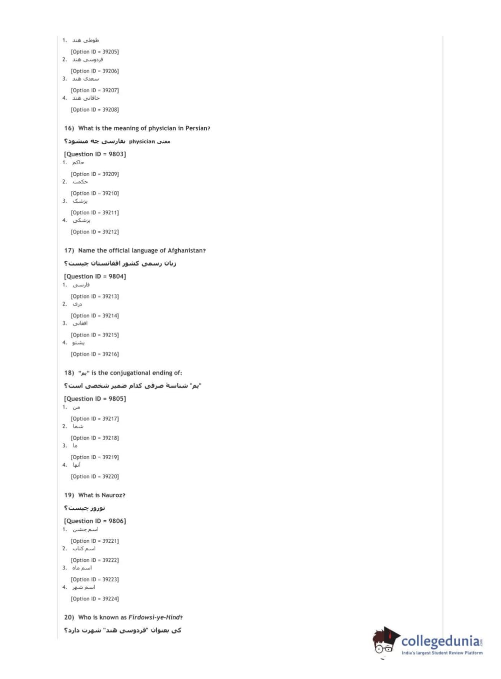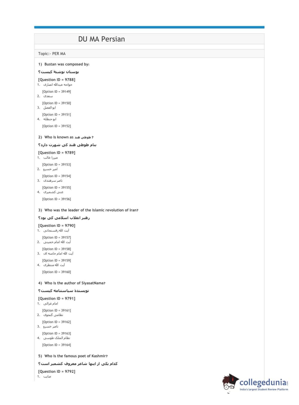 | DUET 2021 DU MA Persian Question Paper PDF | DUET 2021 DU MA Persian Answer Key PDF |