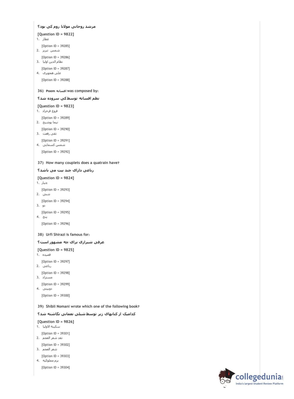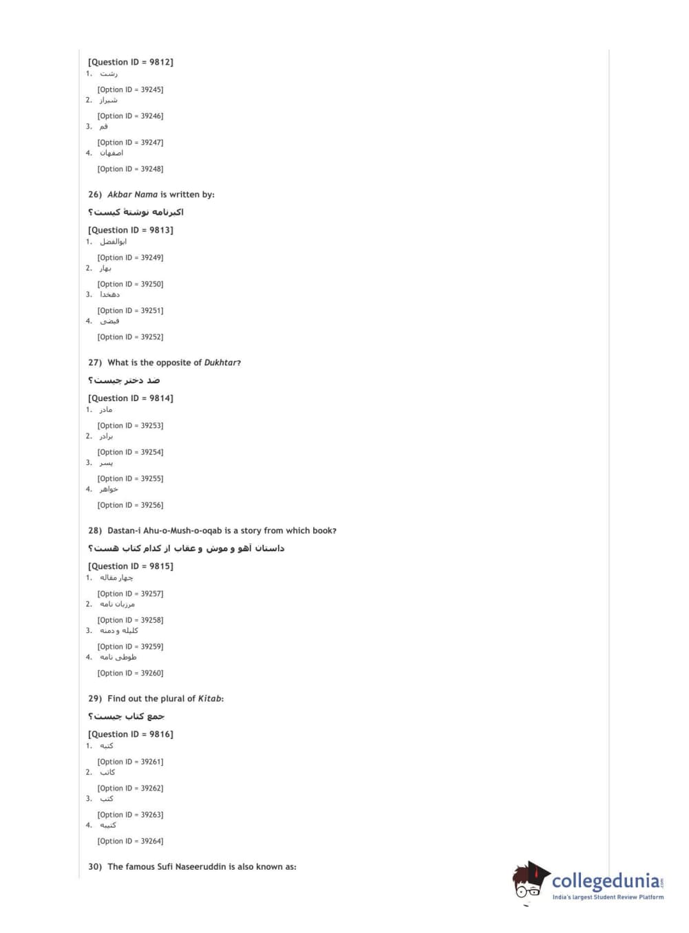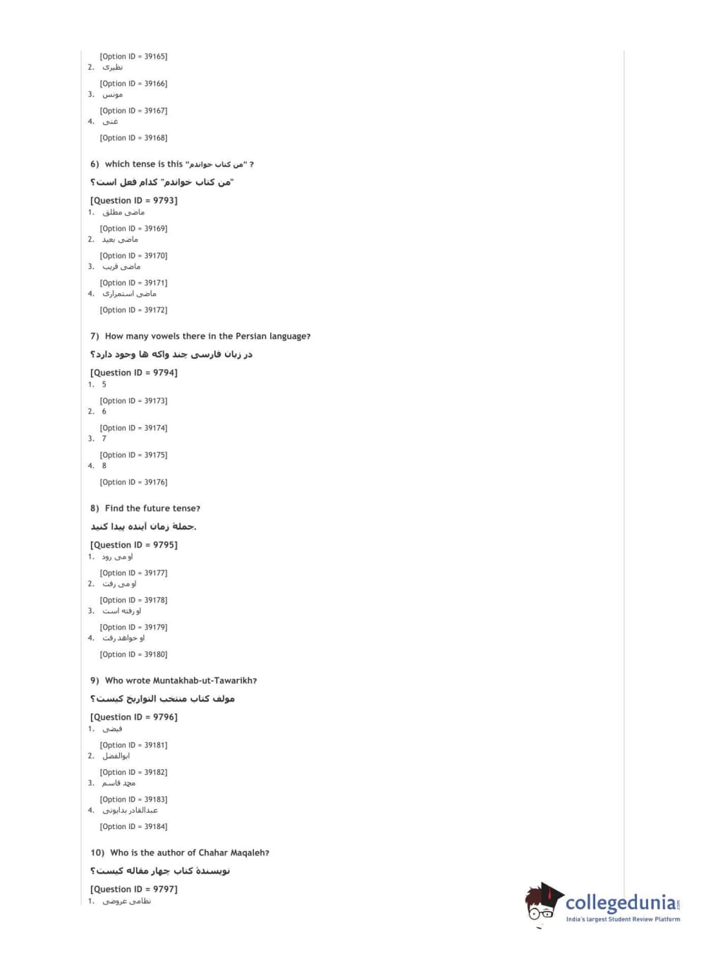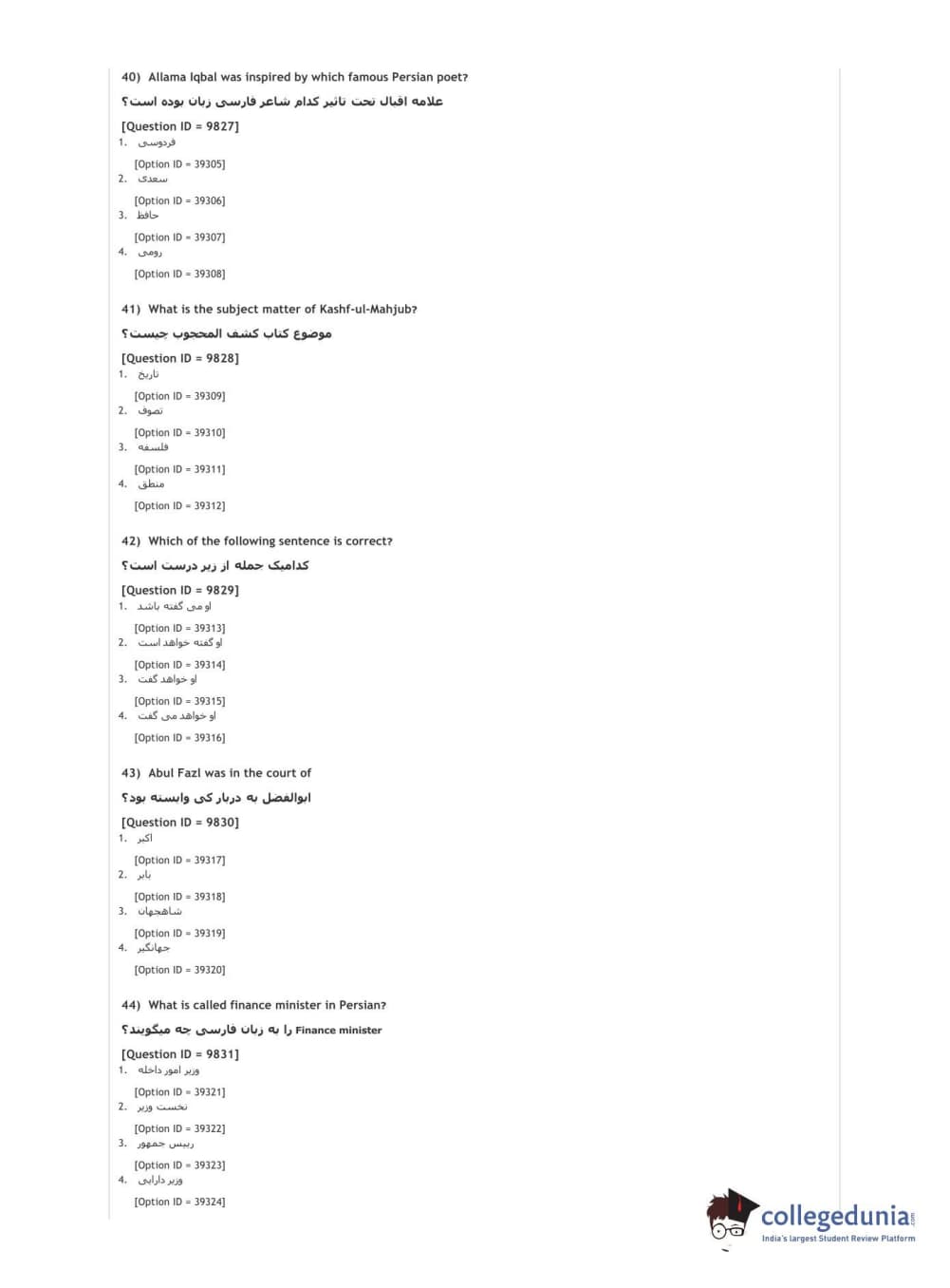 DUET 2021 DU MA Persian Question Paper with Answer Key PDFs Shift 2
