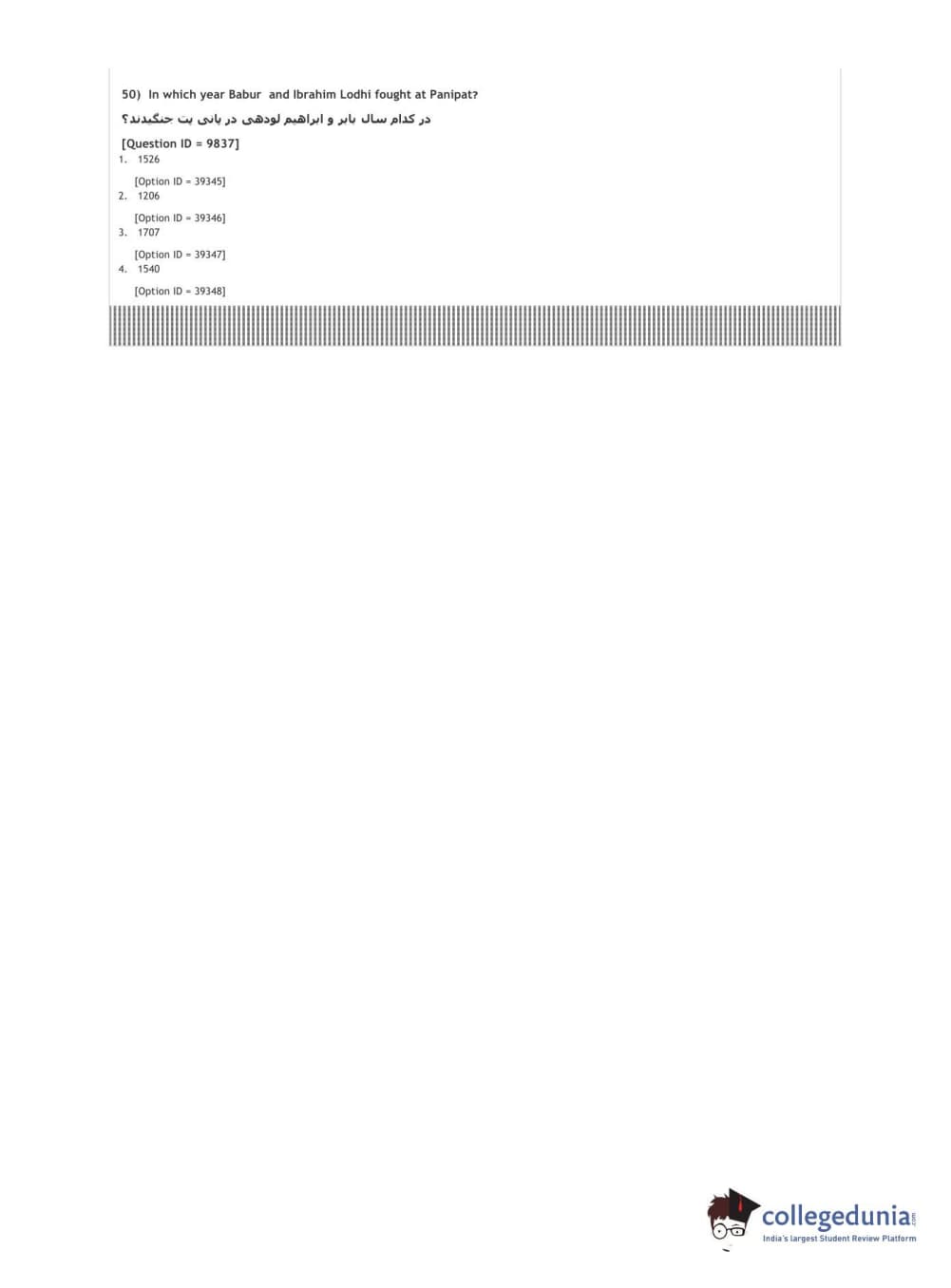 DUET 2021 DU MA Persian Question paper with answer key pdf conducted on September 26, 2021 in Shift 2 is available for download. The exam was successfully organized by National Testing Agency (NTA). The question paper comprised a total of 50 questions.