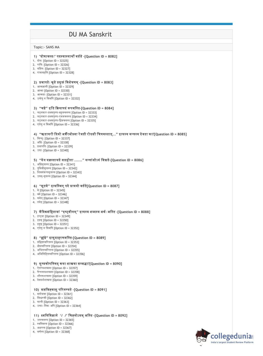DUET 2021 DU MA Sanskrit Question paper with answer key pdf conducted on September 30, 2021 in Shift 3 is available for download. The exam was successfully organized by National Testing Agency (NTA). The question paper comprised a total of 100 questions.