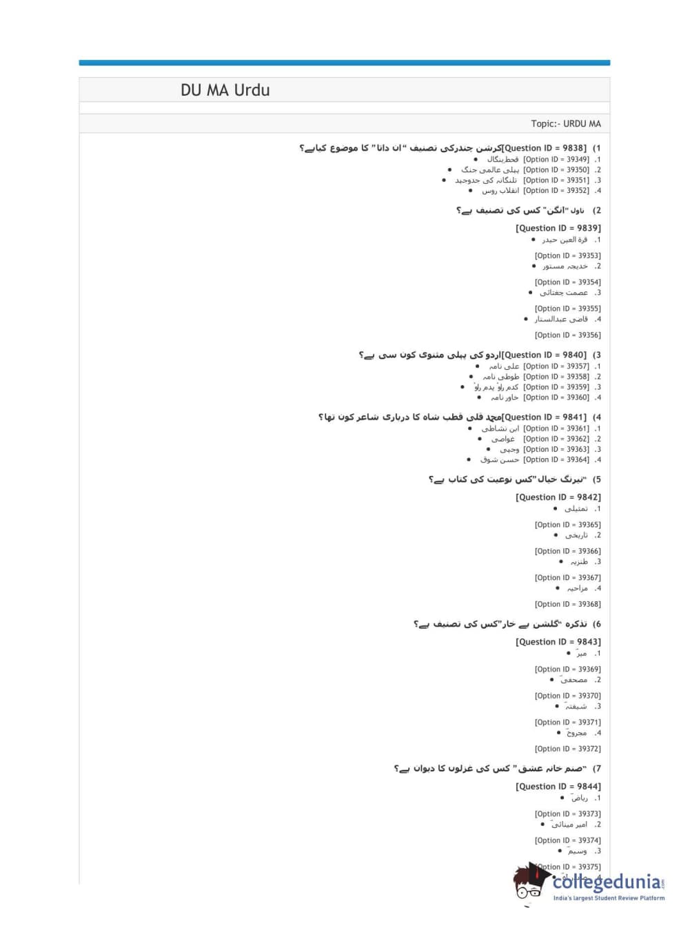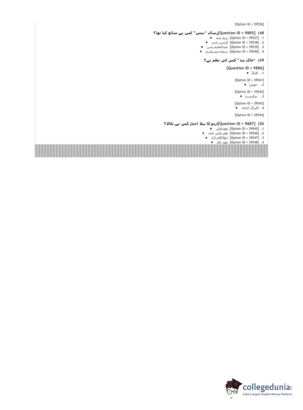 DUET 2021 DU MA Urdu Question paper with answer key pdf conducted on January 10, 2021 in Shift 3 is available for download. The exam was successfully organized by National Testing Agency (NTA). The question paper comprised a total of 50 questions.