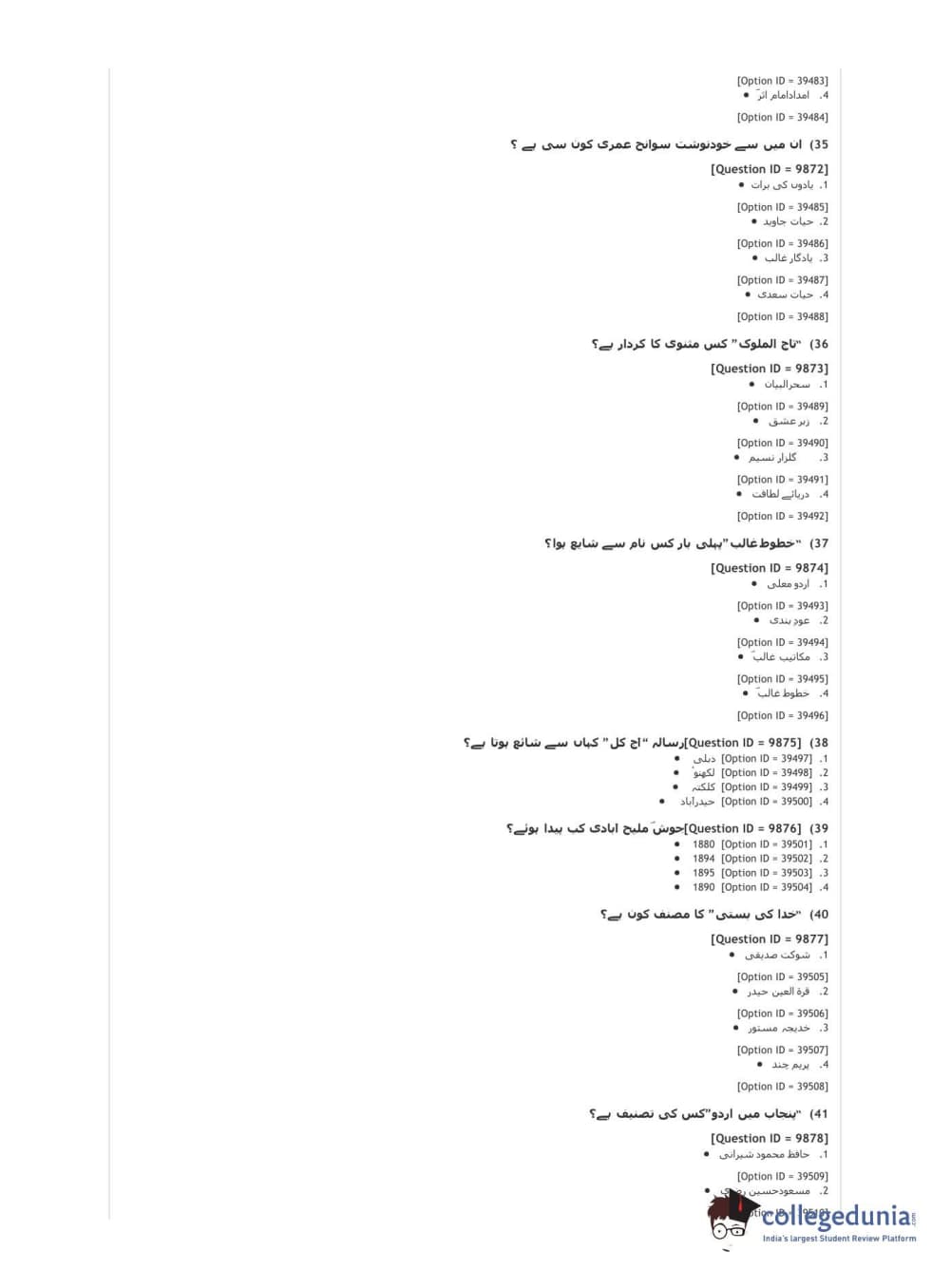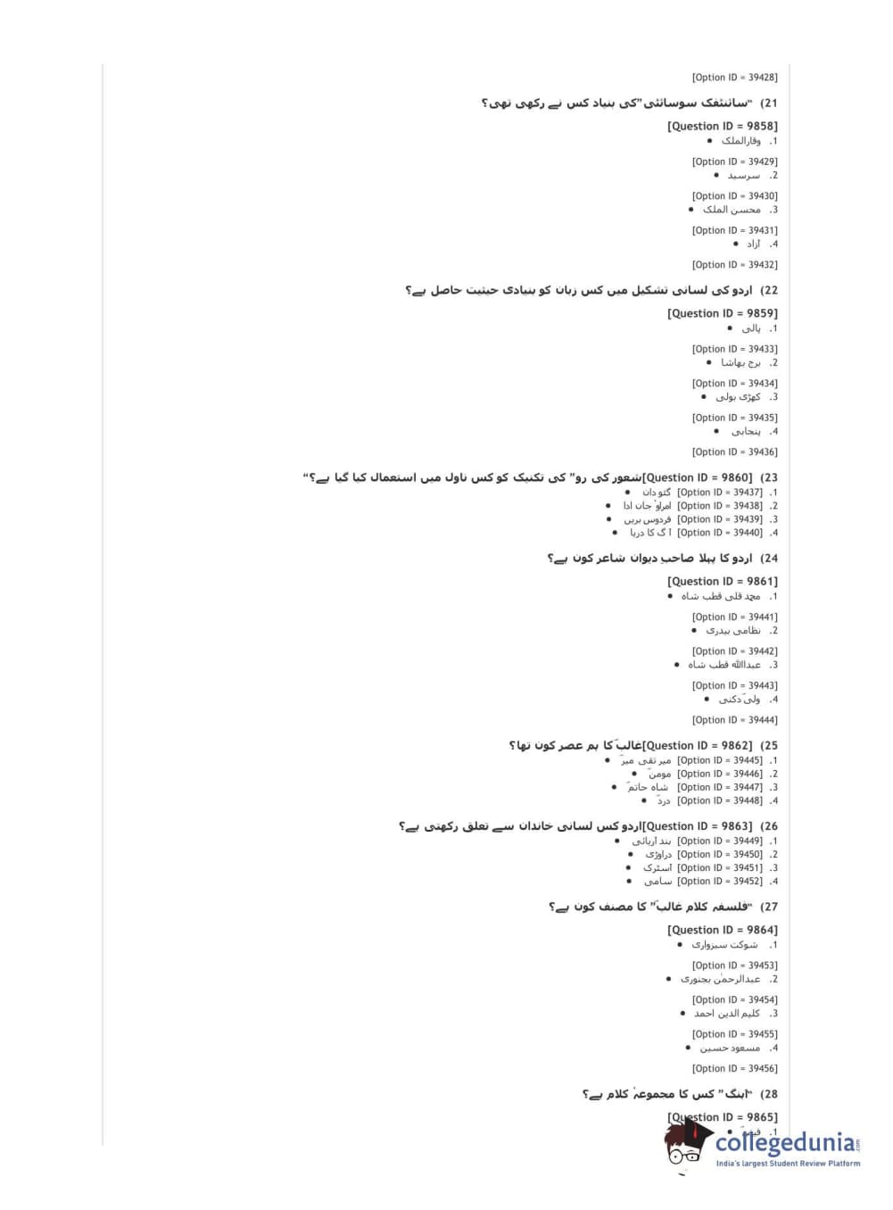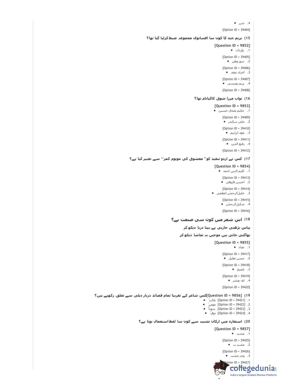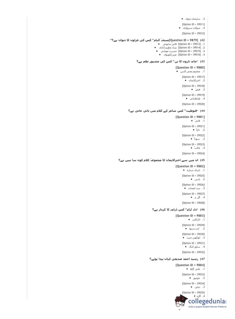 DUET 2021 DU MA Urdu Question Paper with Answer Key PDFs Shift 3