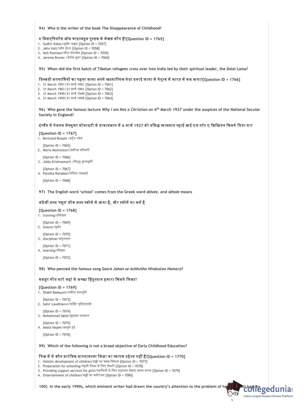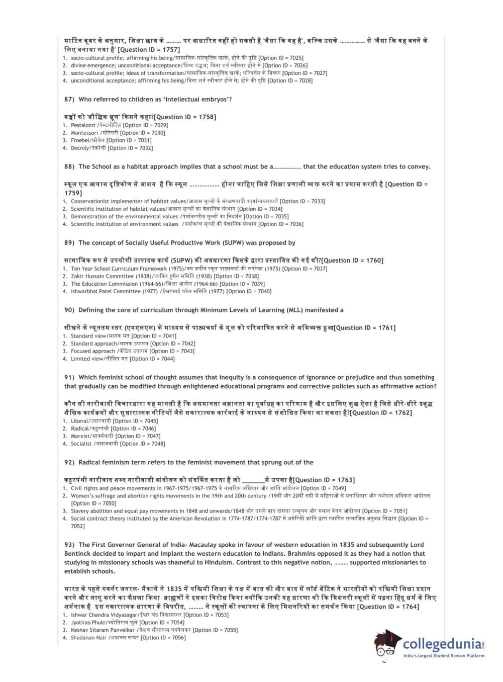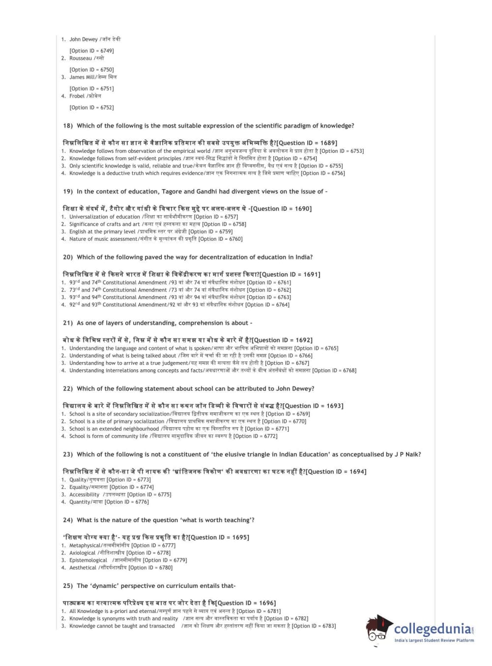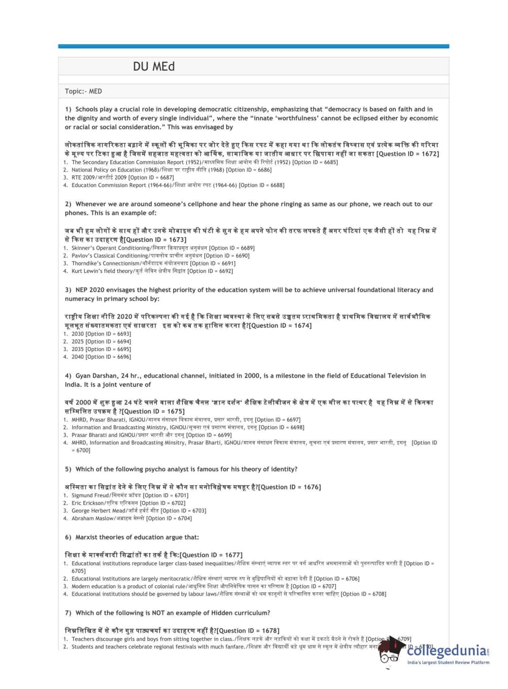 DUET 2021 DU MEd Question Paper with Answer Key PDFs Shift 3