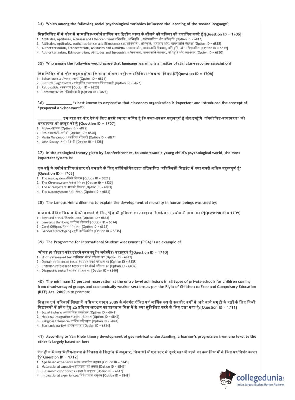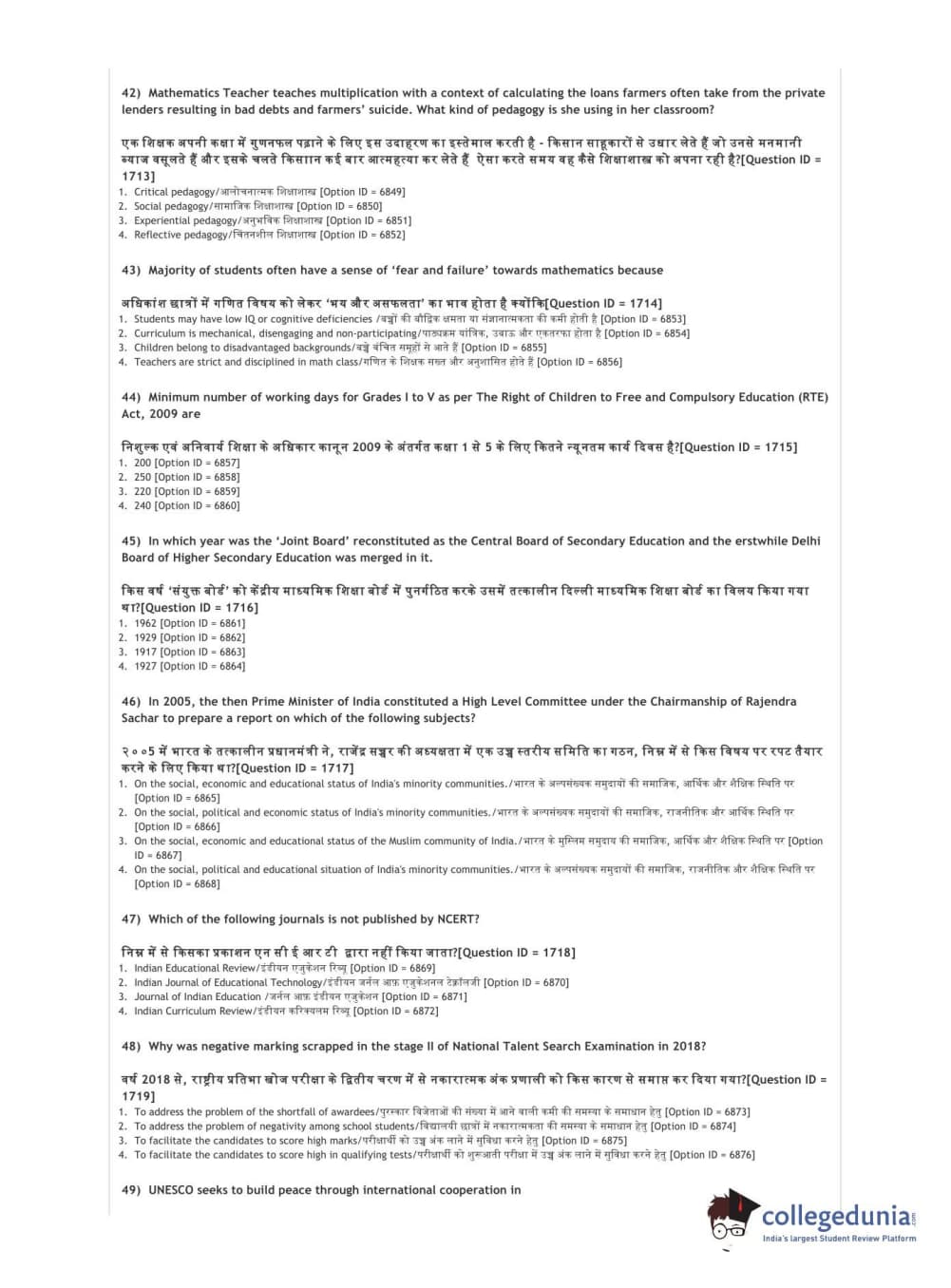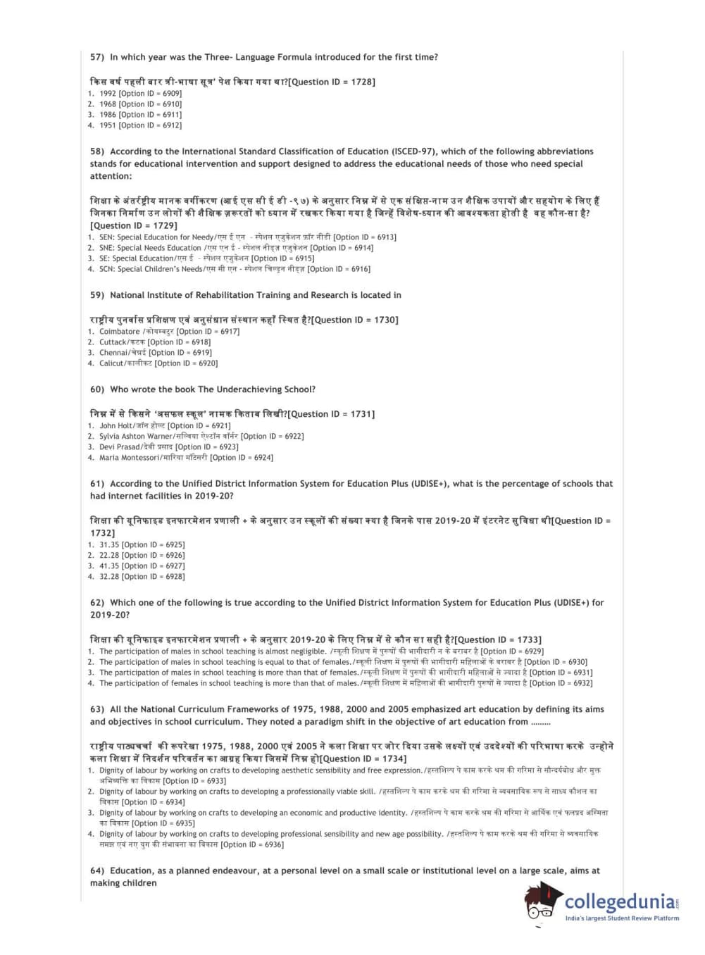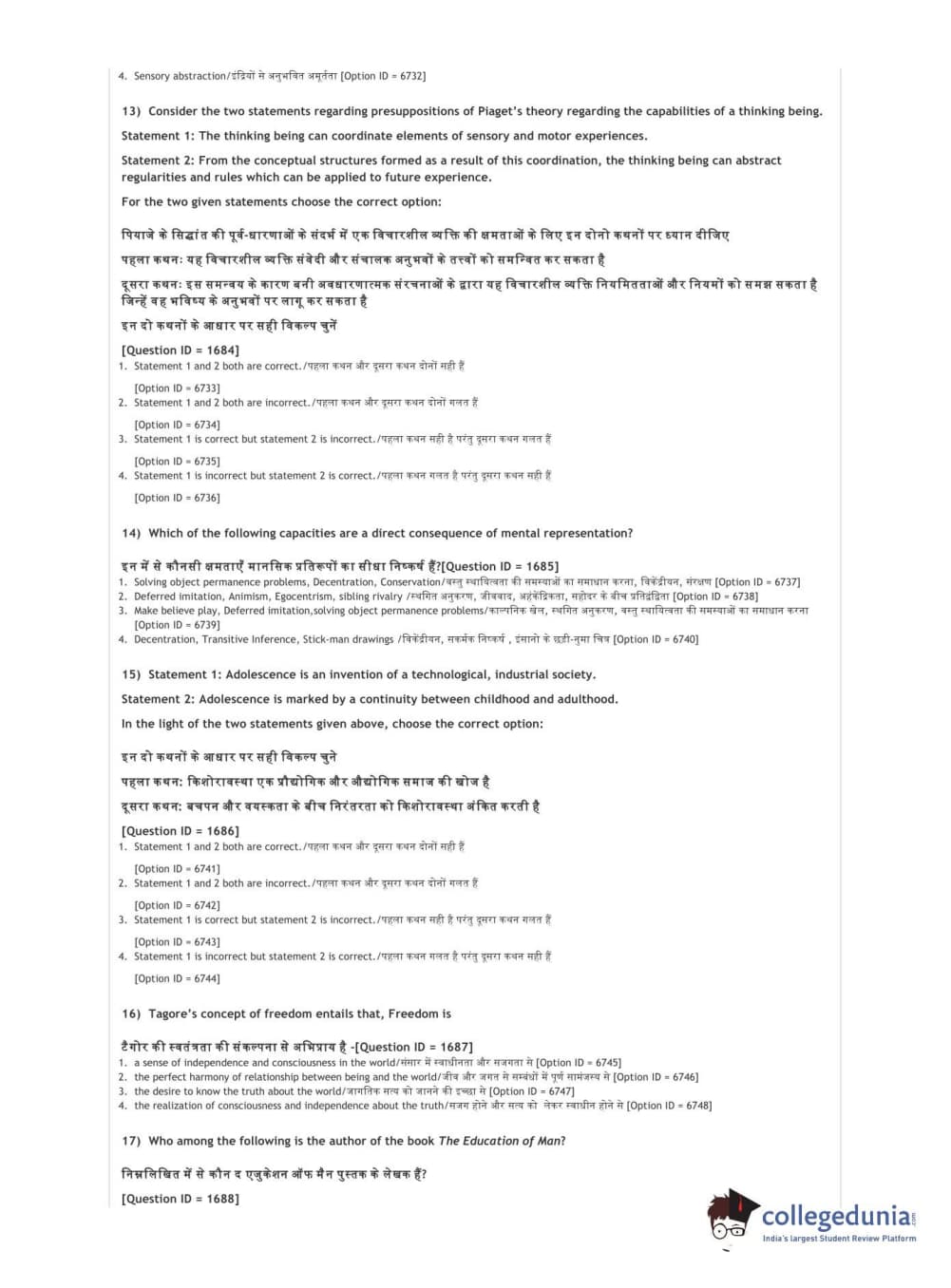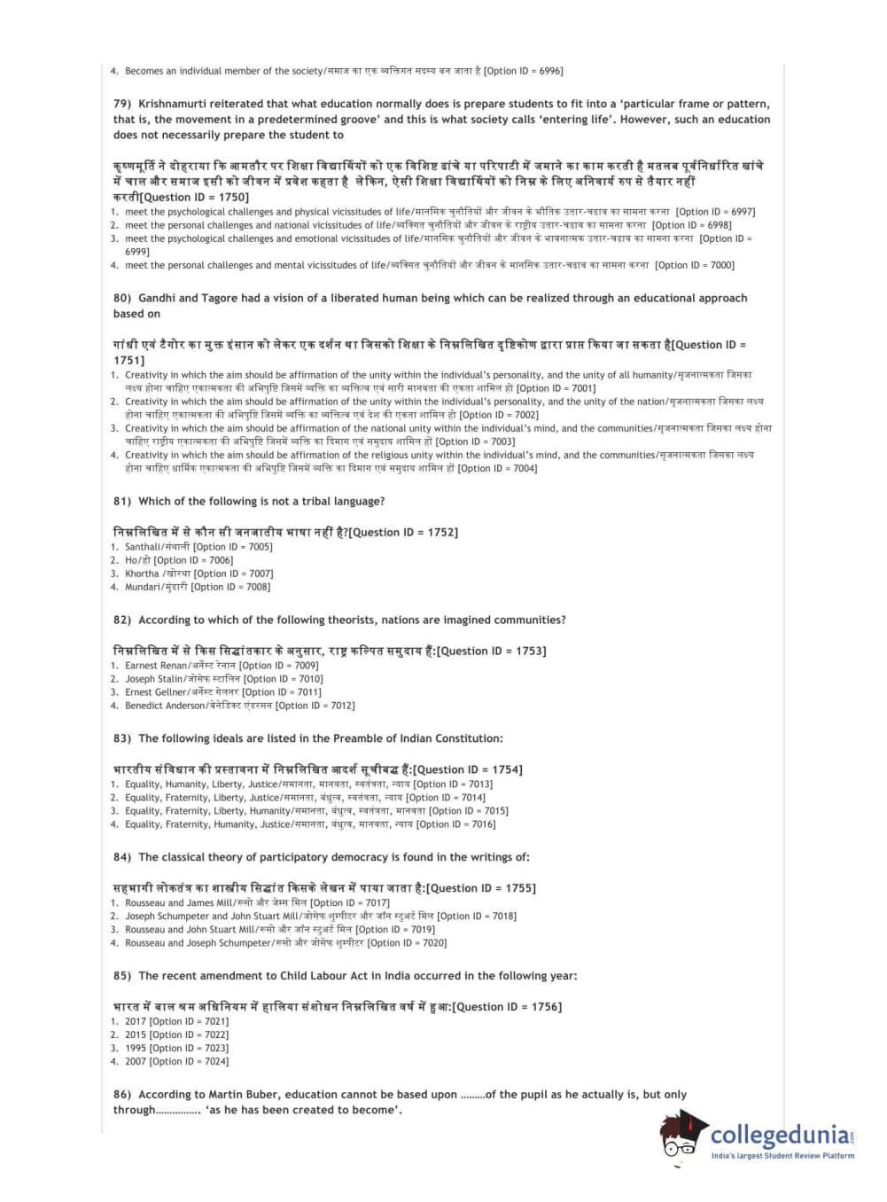 DUET 2021 DU MEd Question Paper with Answer Key PDFs Shift 3