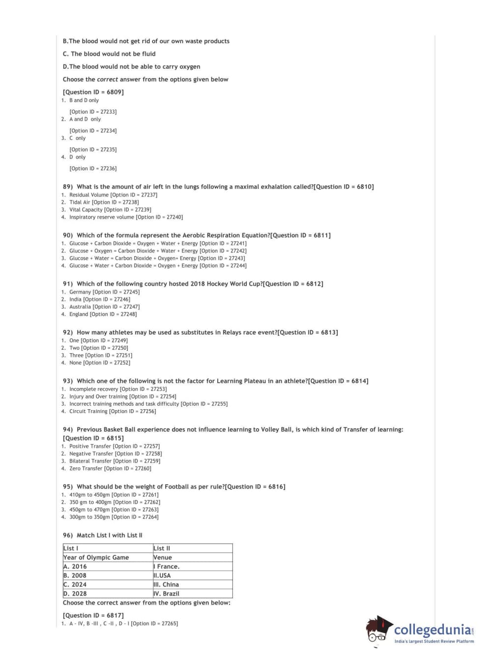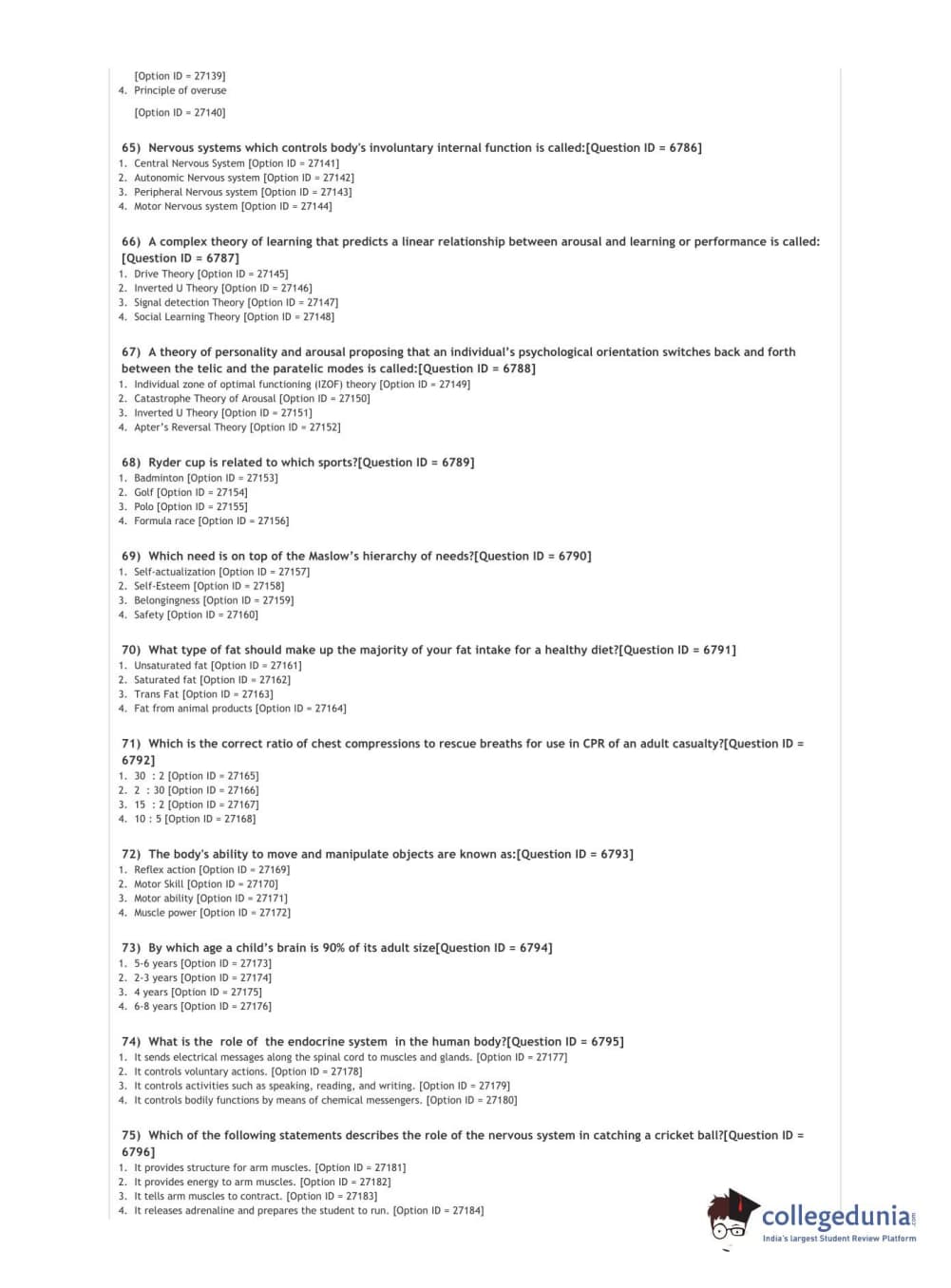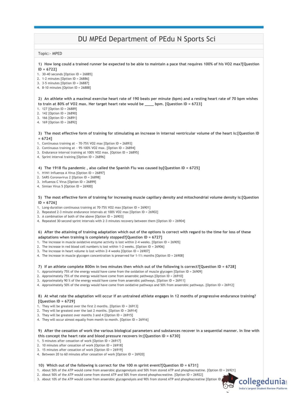 DUET 2021 DU MPEd Department of PEdu N Sports Sci Question Paper with Answer Key PDFs Shift 2