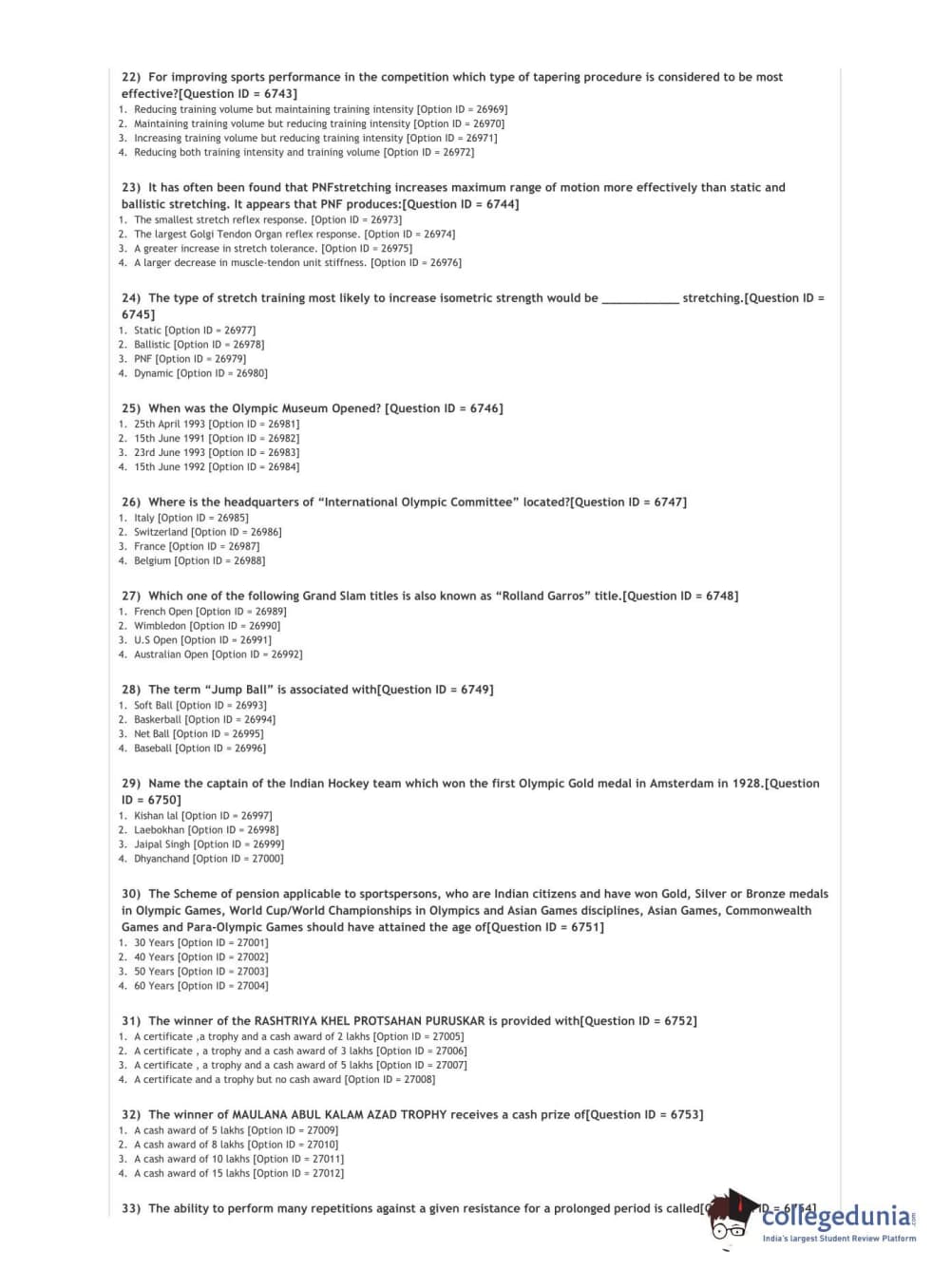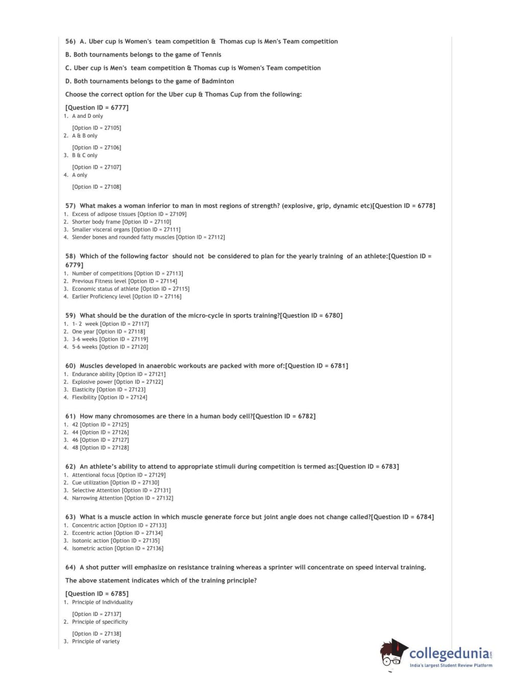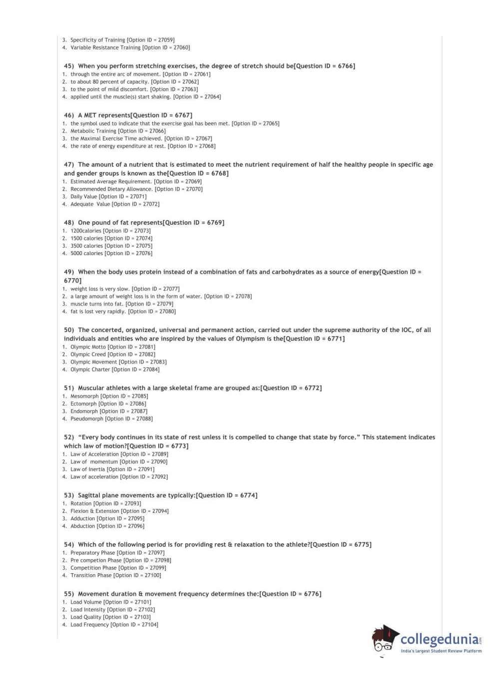 DUET 2021 DU MPEd Department of PEdu N Sports Sci Question Paper with Answer Key PDFs Shift 2
