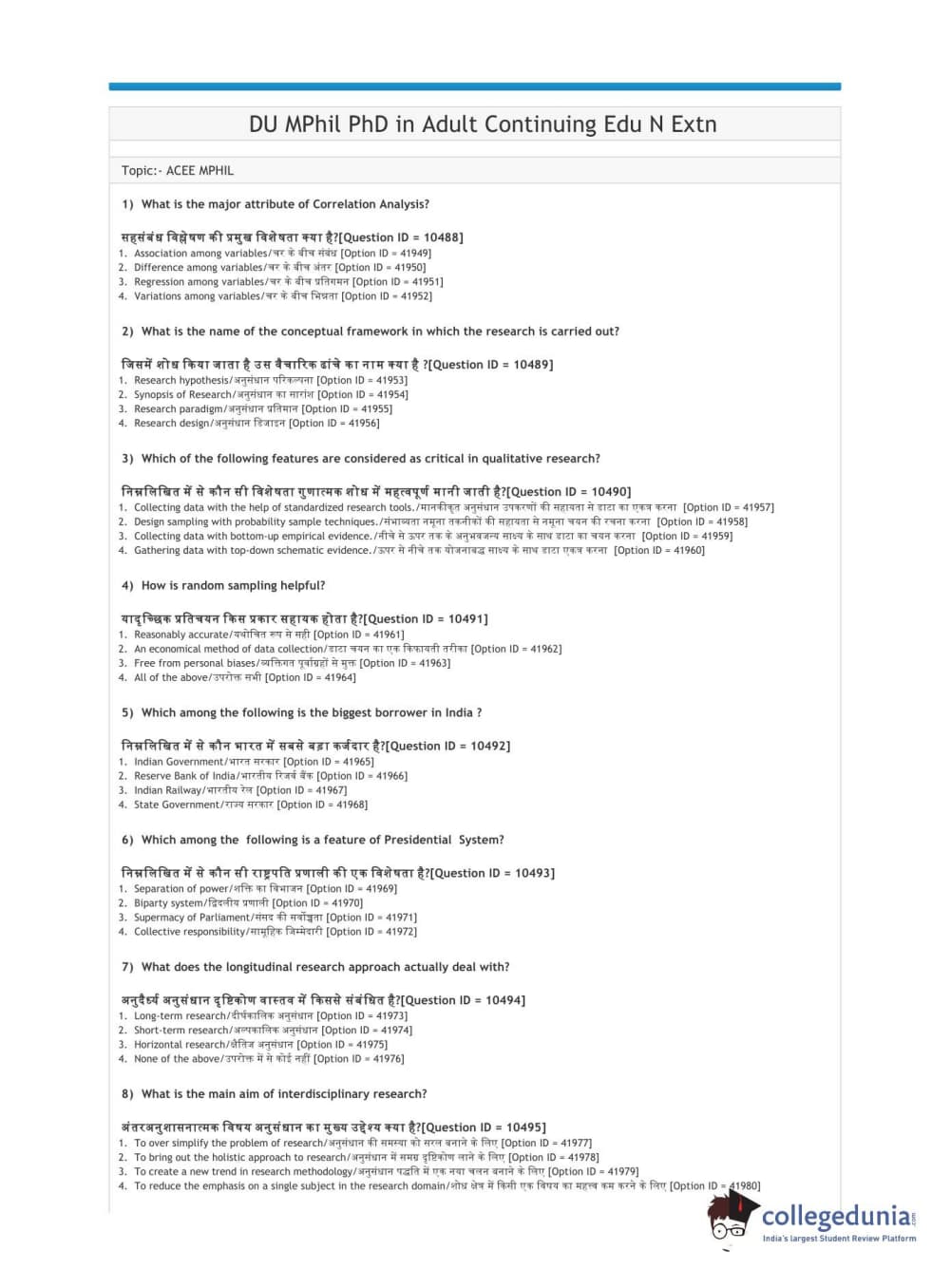 | DUET 2021 DU MPhil PhD in Adult Continuing Edu N Extn Question Paper PDF | DUET 2021 DU MPhil PhD in Adult Continuing Edu N Extn Answer Key PDF |