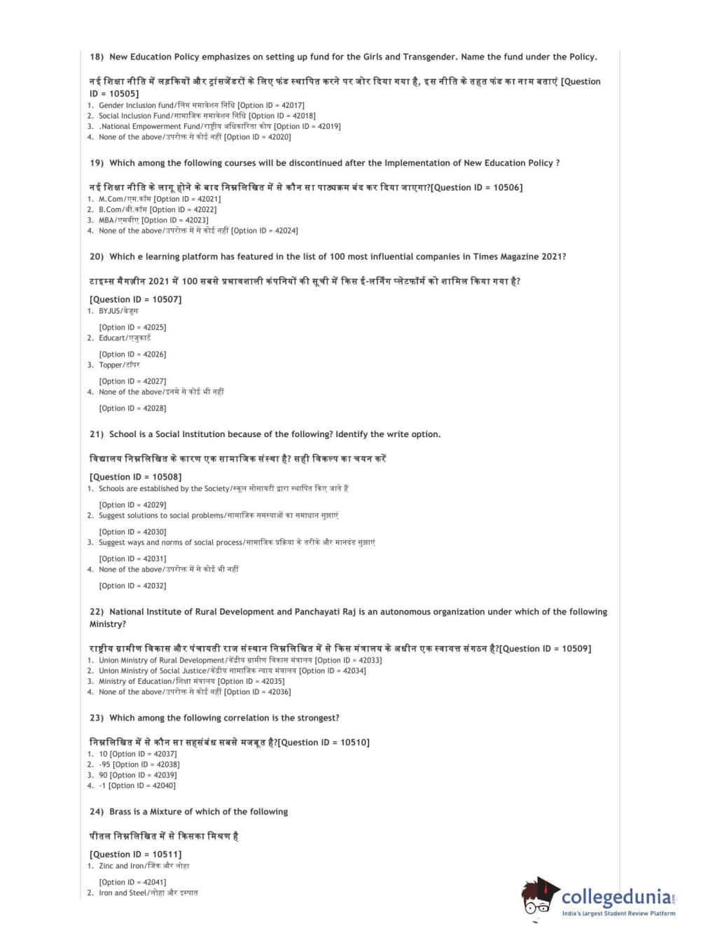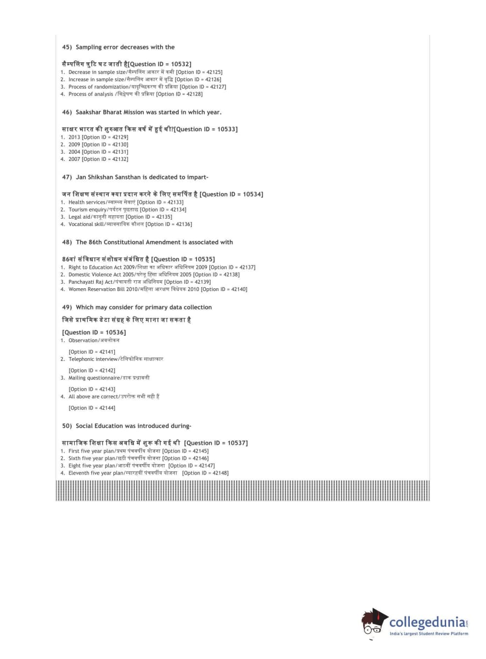 DUET 2021 DU MPhil PhD in Adult Continuing Edu N Extn Question paper with answer key pdf conducted on September 28, 2021 in Shift 3 is available for download. The exam was successfully organized by National Testing Agency (NTA). The question paper comprised a total of 50 questions.