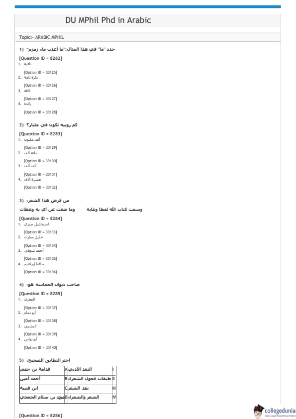 DUET 2021 DU MPhil Phd in Arabic Question paper with answer key pdf conducted on September 30, 2021 in Shift 3 is available for download. The exam was successfully organized by National Testing Agency (NTA). The question paper comprised a total of 50 questions.