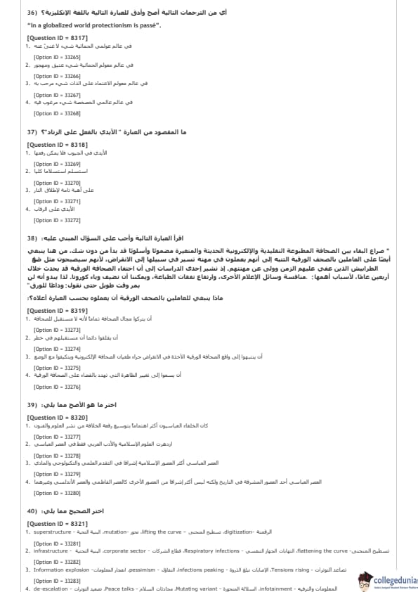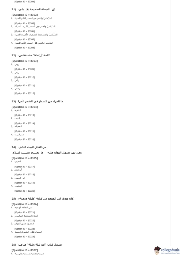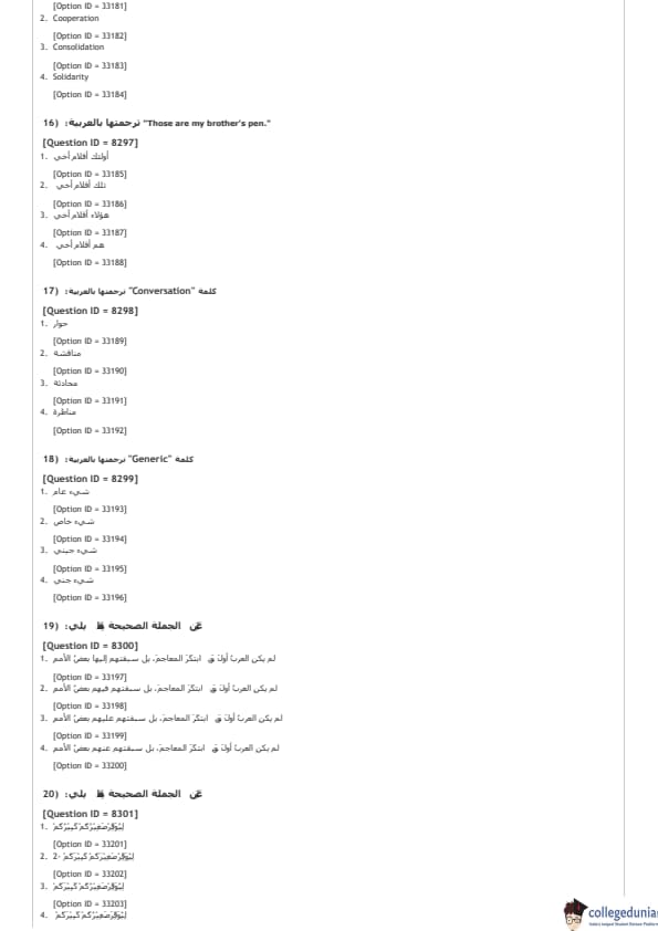 DUET 2021 DU MPhil Phd in Arabic Question Paper with Answer Key PDFs Shift 3