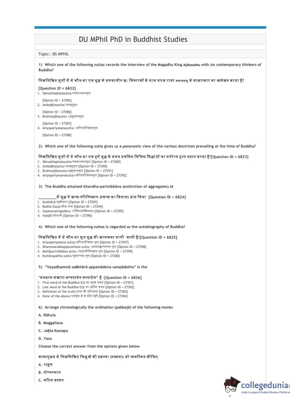 | DUET 2021 DU MPhil PhD in Buddhist Studies Question Paper PDF | DUET 2021 DU MPhil PhD in Buddhist Studies Answer Key PDF |