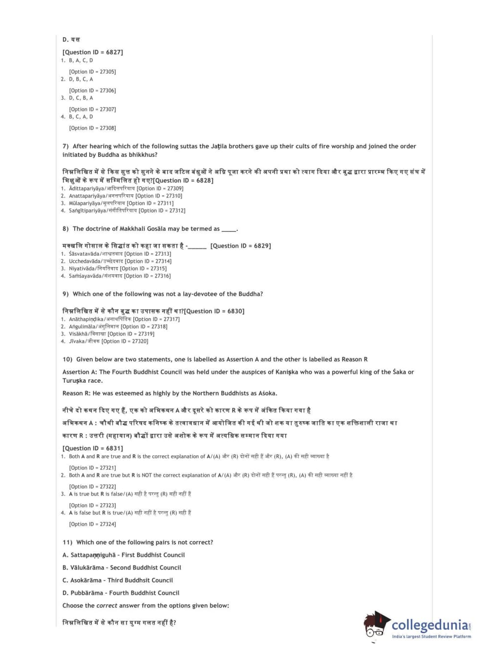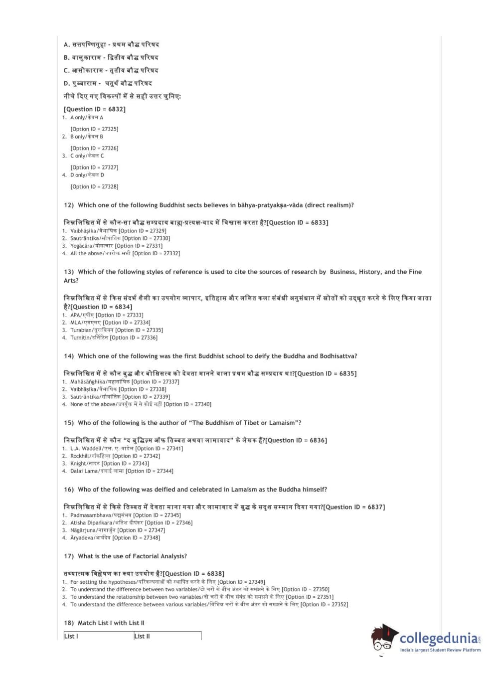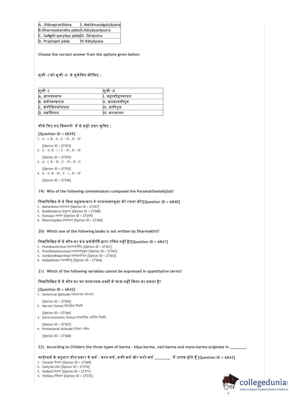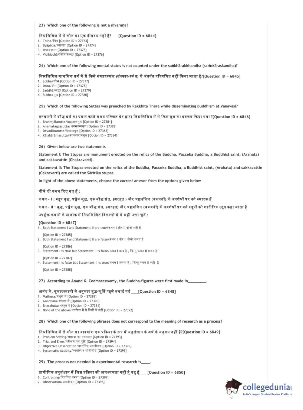 DUET 2021 DU MPhil PhD in Buddhist Studies Question Paper with Answer Key PDFs Shift 1