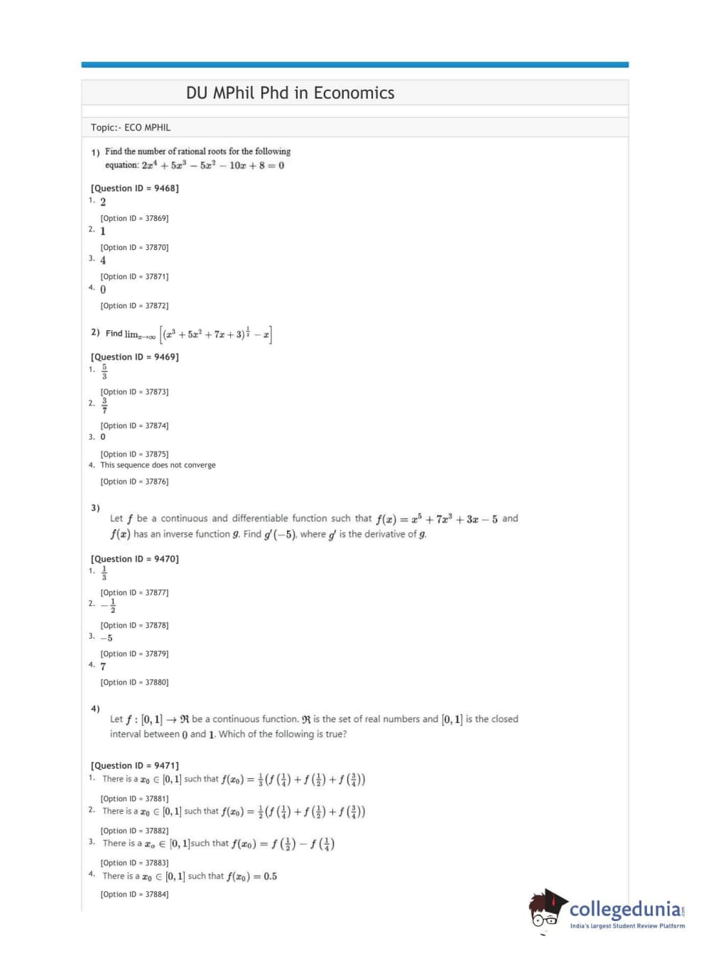 DUET 2021 DU MPhil Phd in Economics Question paper with answer key pdf conducted on January 10, 2021 in Shift 1 is available for download. The exam was successfully organized by National Testing Agency (NTA). The question paper comprised a total of 50 questions.