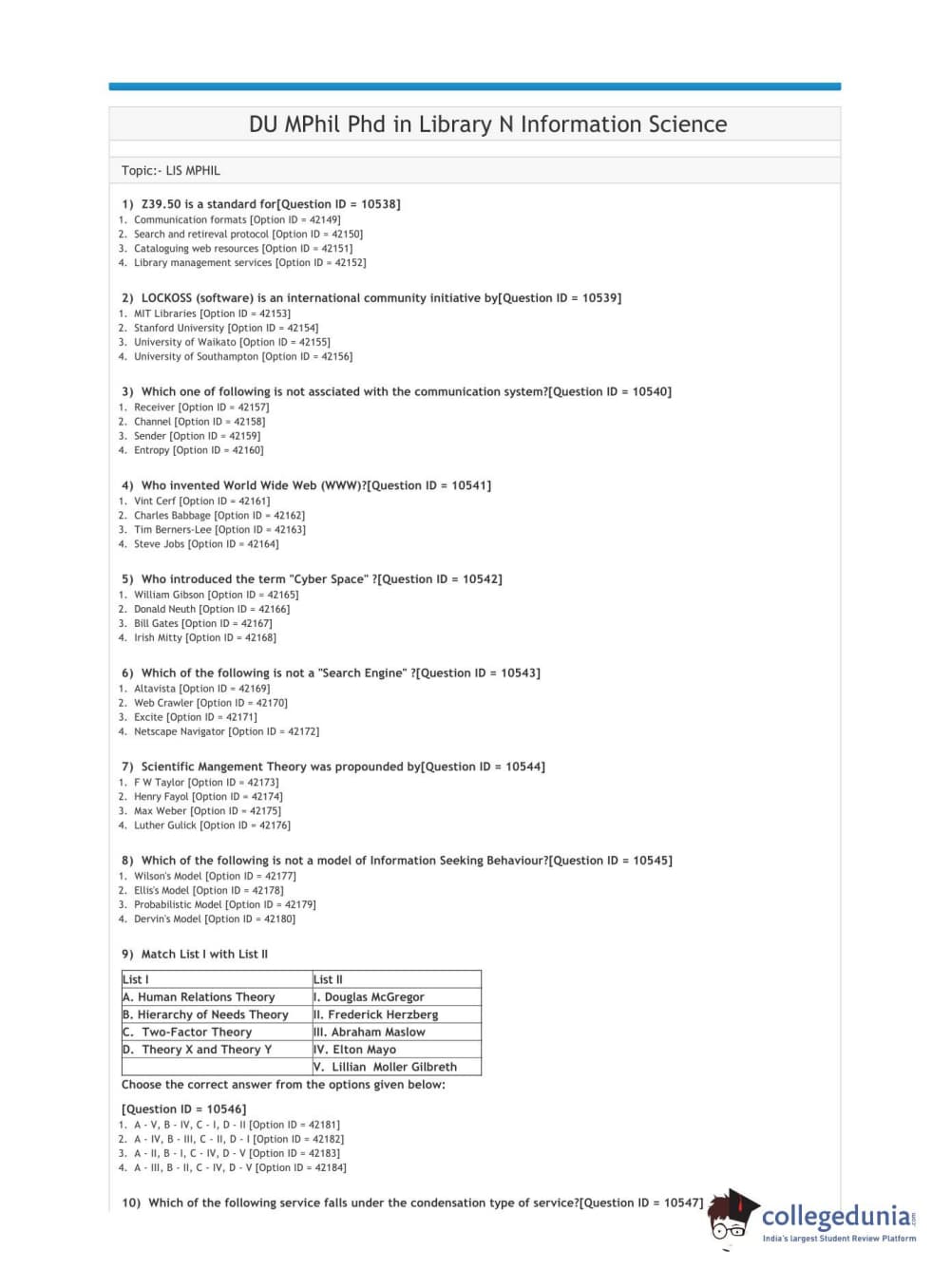 | DUET 2021 DU MPhil Phd in Library N Information Science Question Paper PDF | DUET 2021 DU MPhil Phd in Library N Information Science Answer Key PDF |