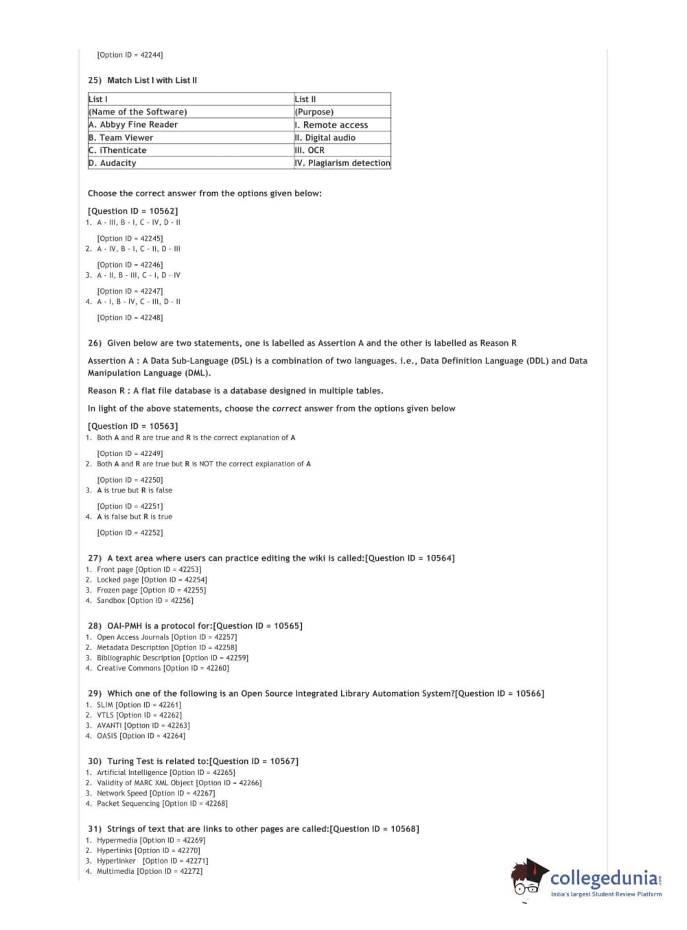 DUET 2021 DU MPhil Phd in Library N Information Science Question paper with answer key pdf conducted on September 30, 2021 in Shift 2 is available for download. The exam was successfully organized by National Testing Agency (NTA). The question paper comprised a total of 50 questions.
