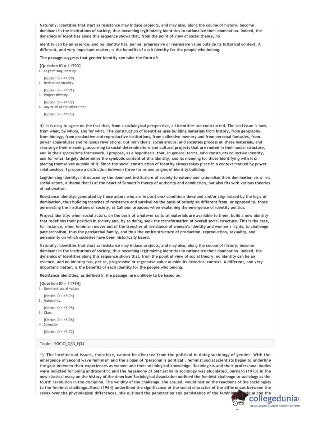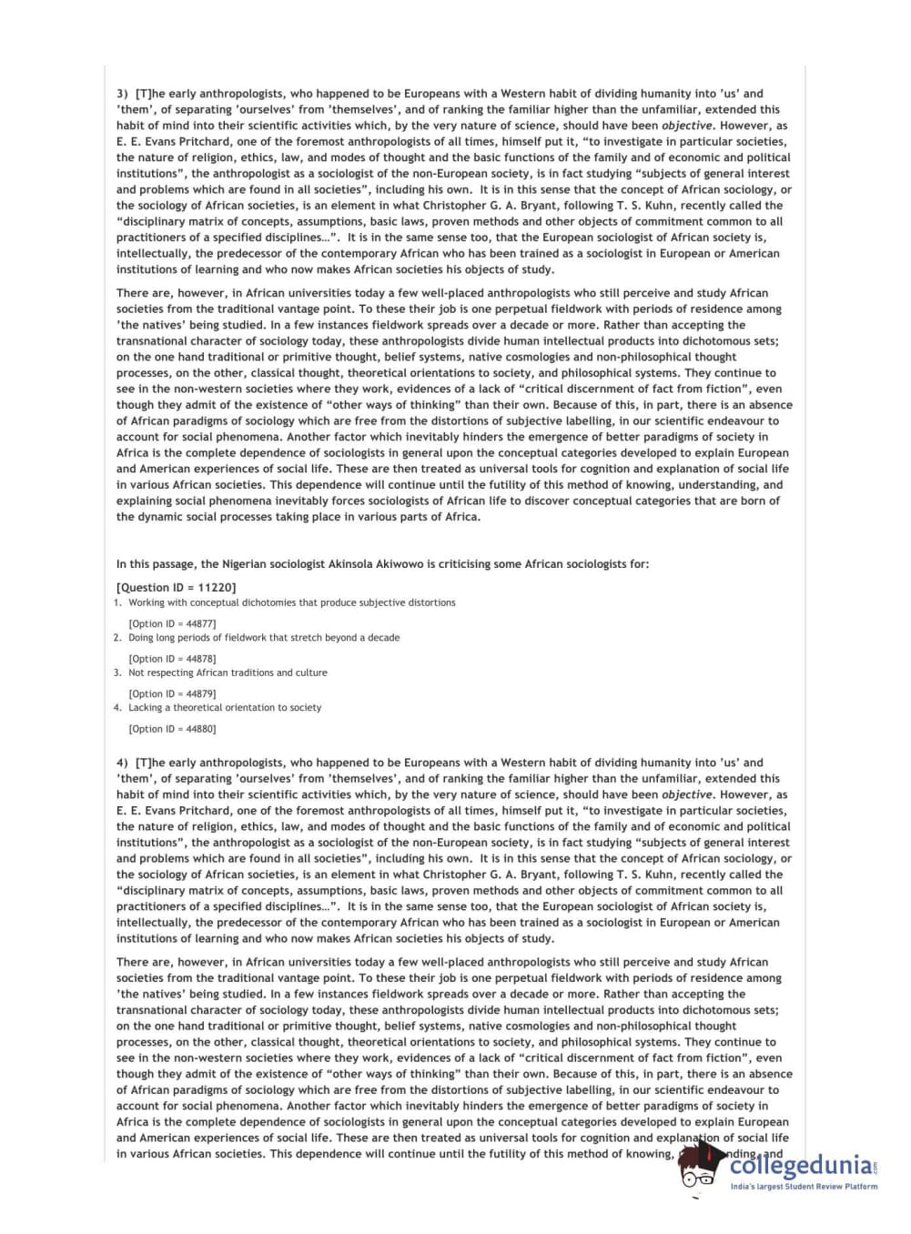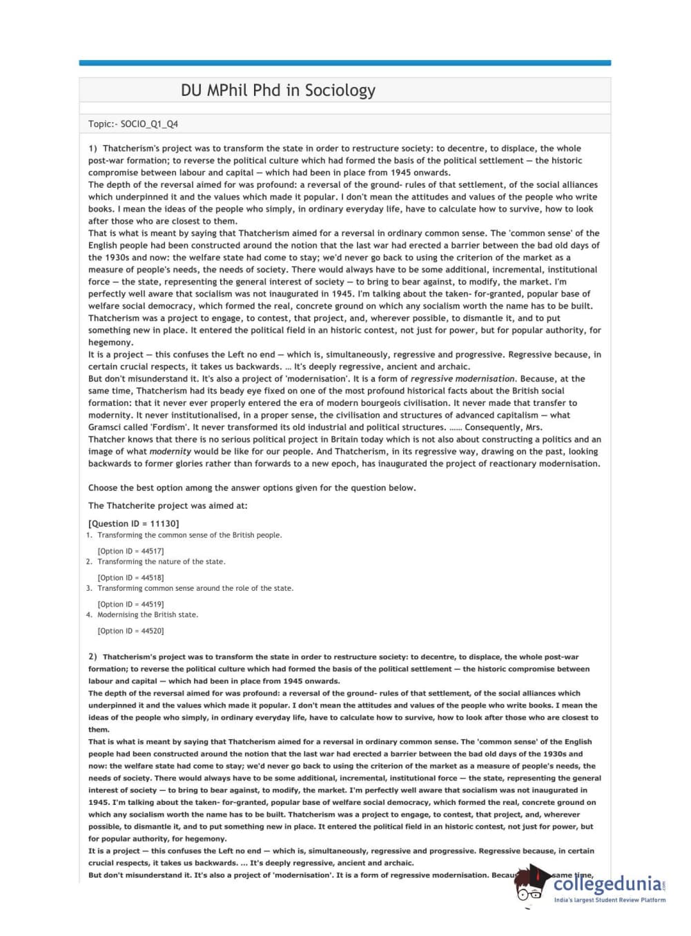 DUET 2021 DU MPhil Phd in Sociology Question Paper with Answer Key PDFs Shift 3