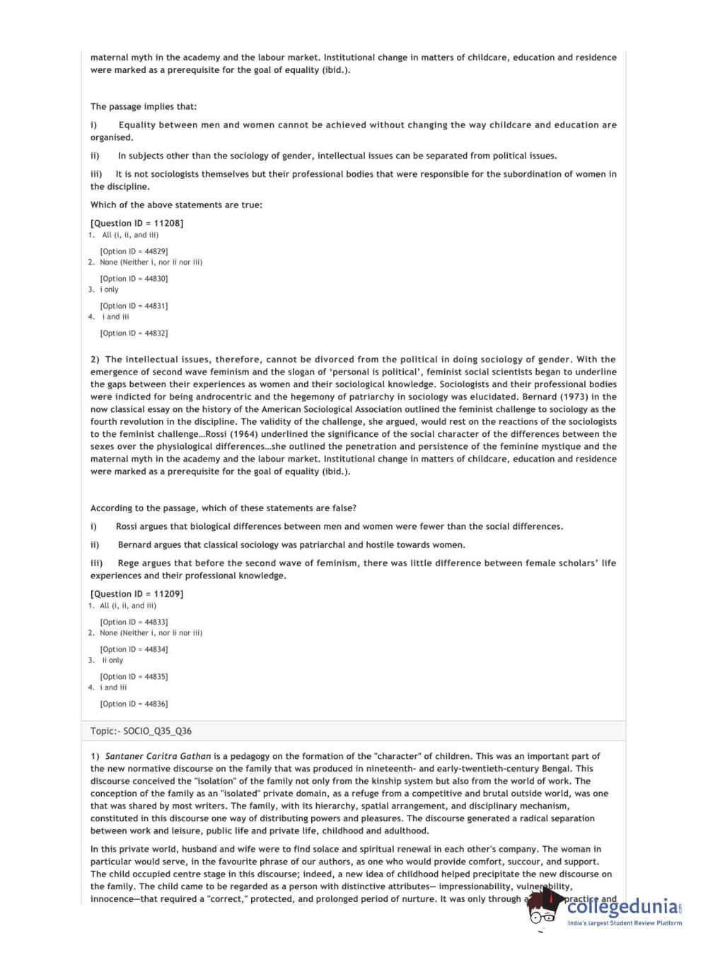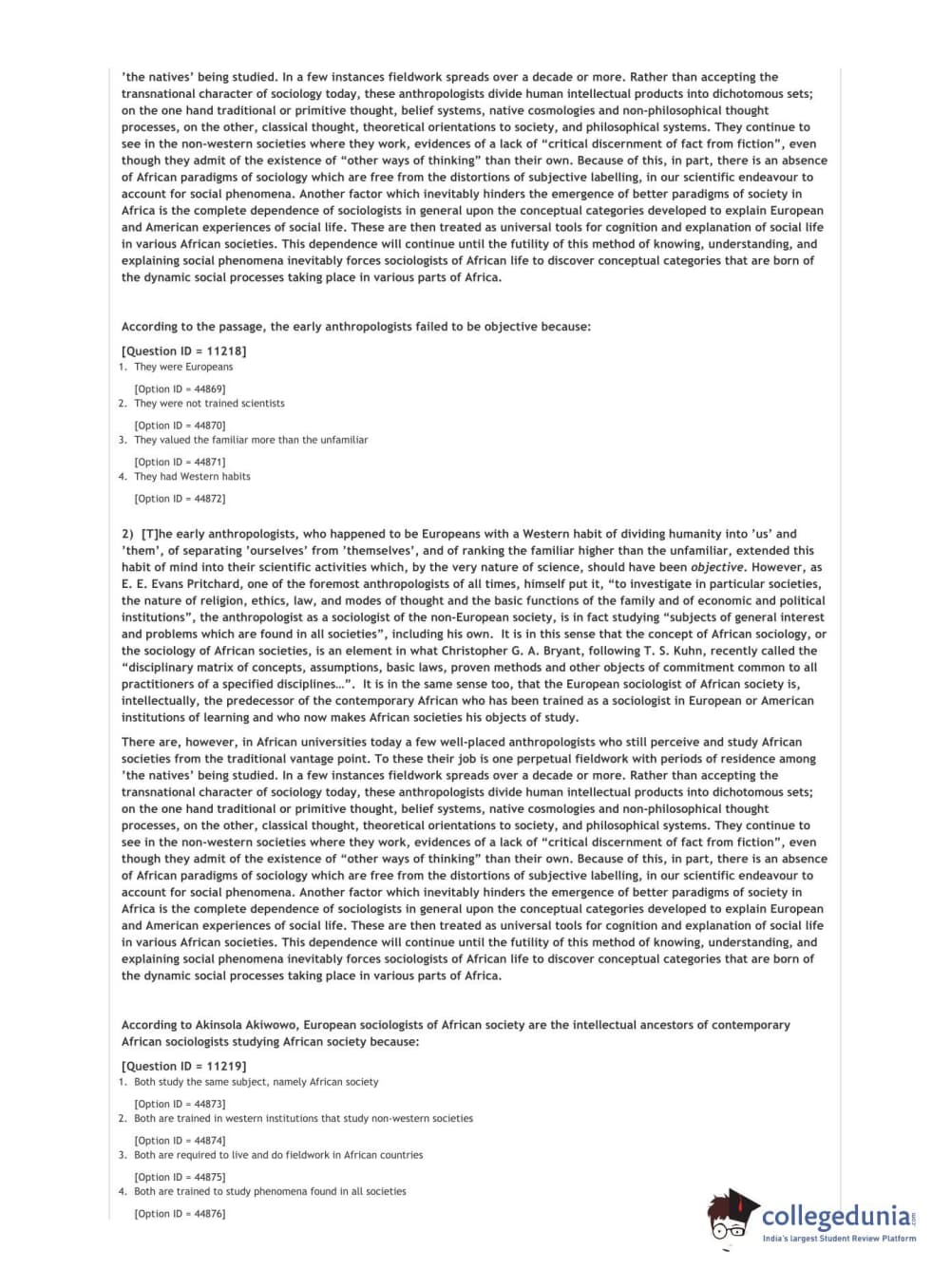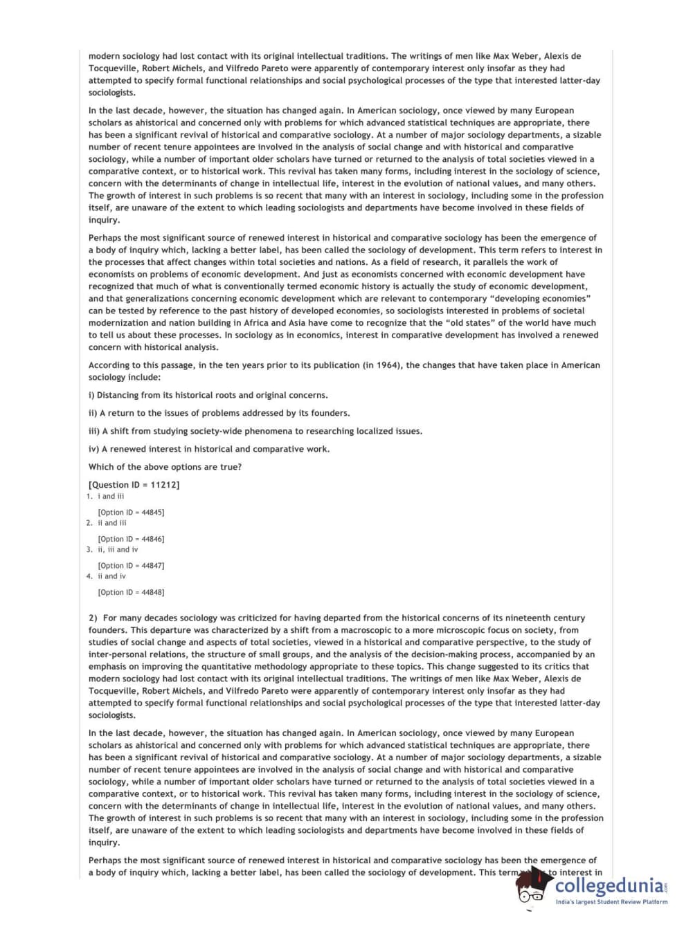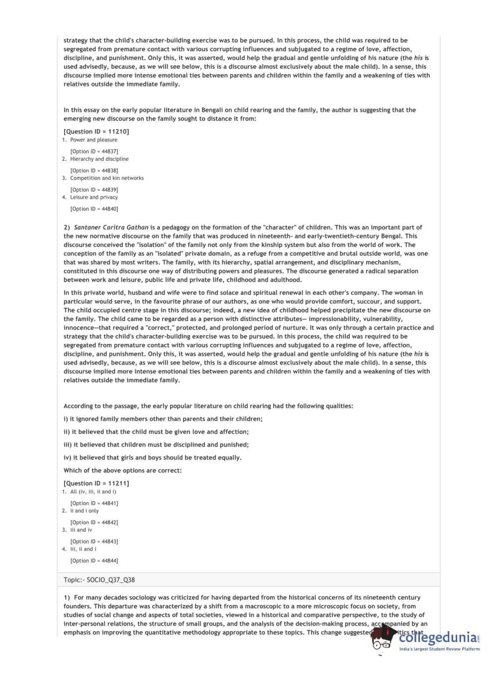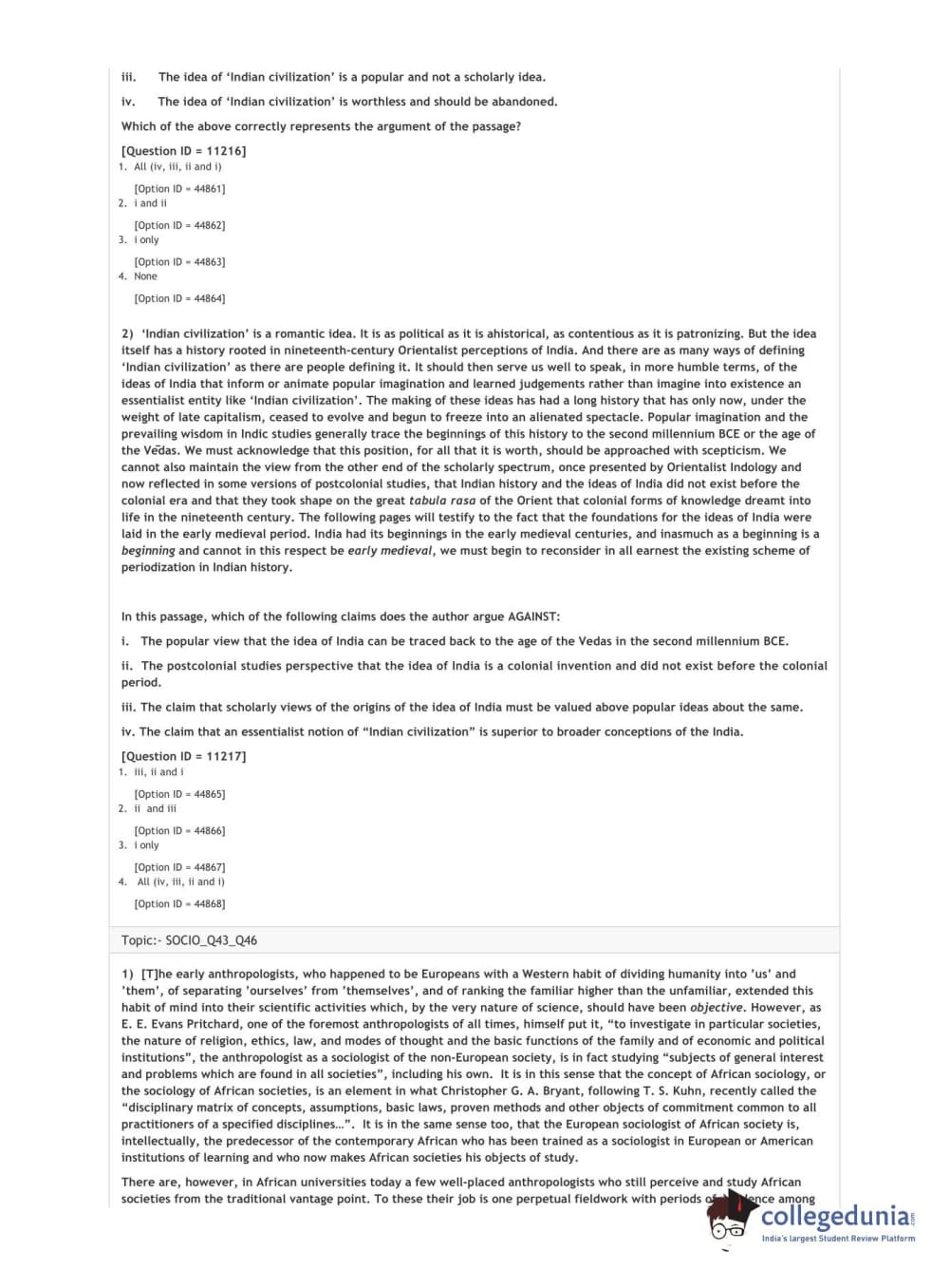 DUET 2021 DU MPhil Phd in Sociology Question paper with answer key pdf conducted on January 10, 2021 in Shift 3 is available for download. The exam was successfully organized by National Testing Agency (NTA). The question paper comprised a total of 50 questions.