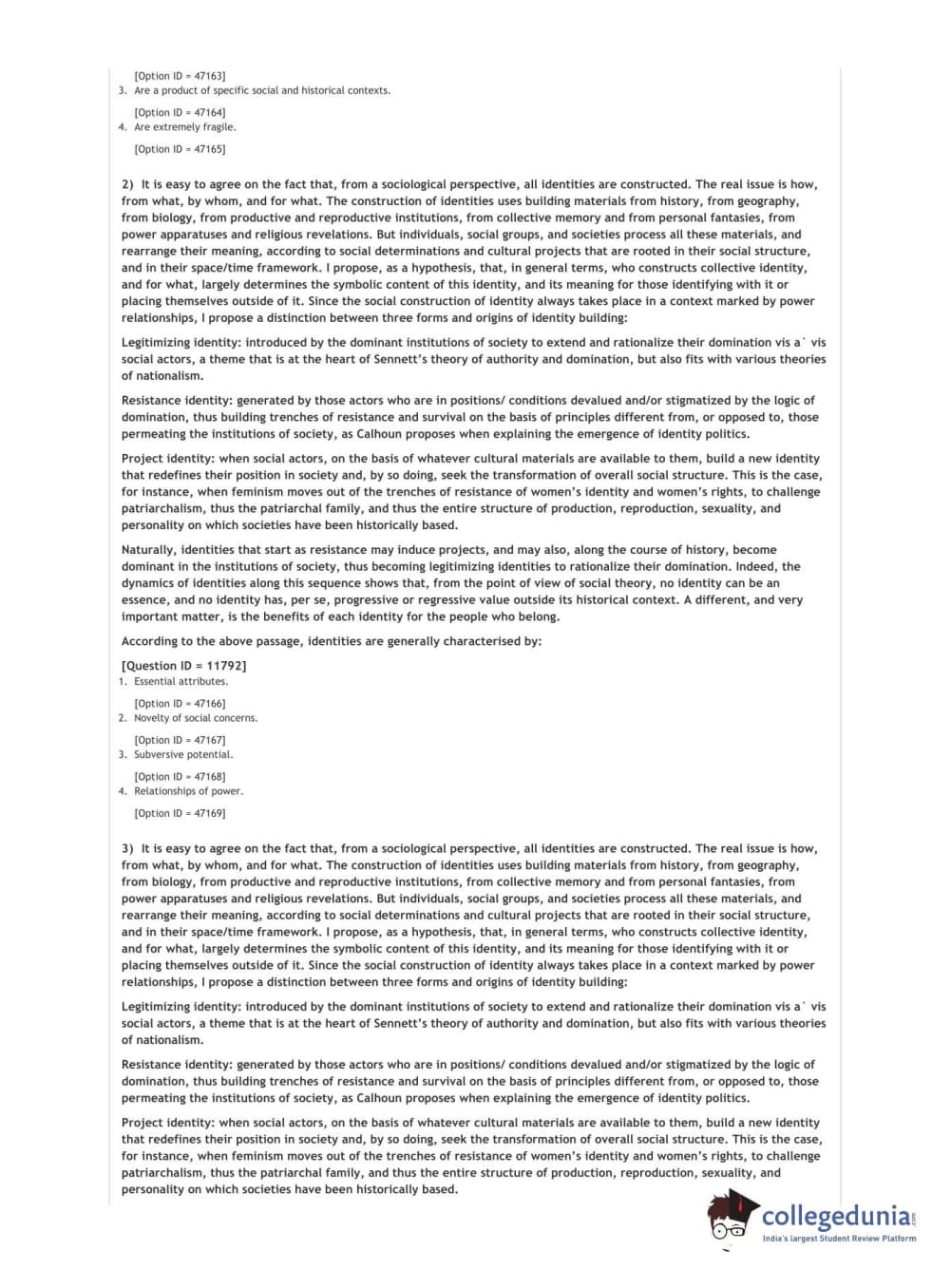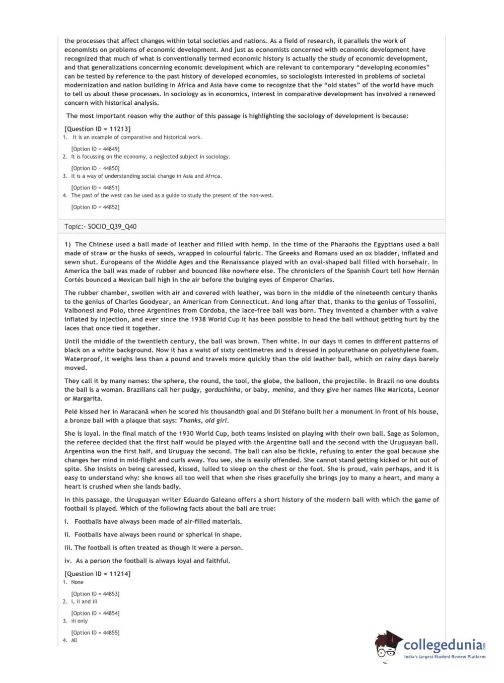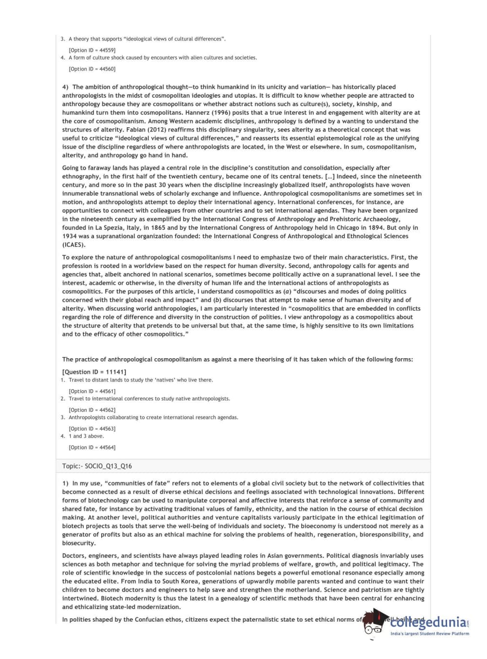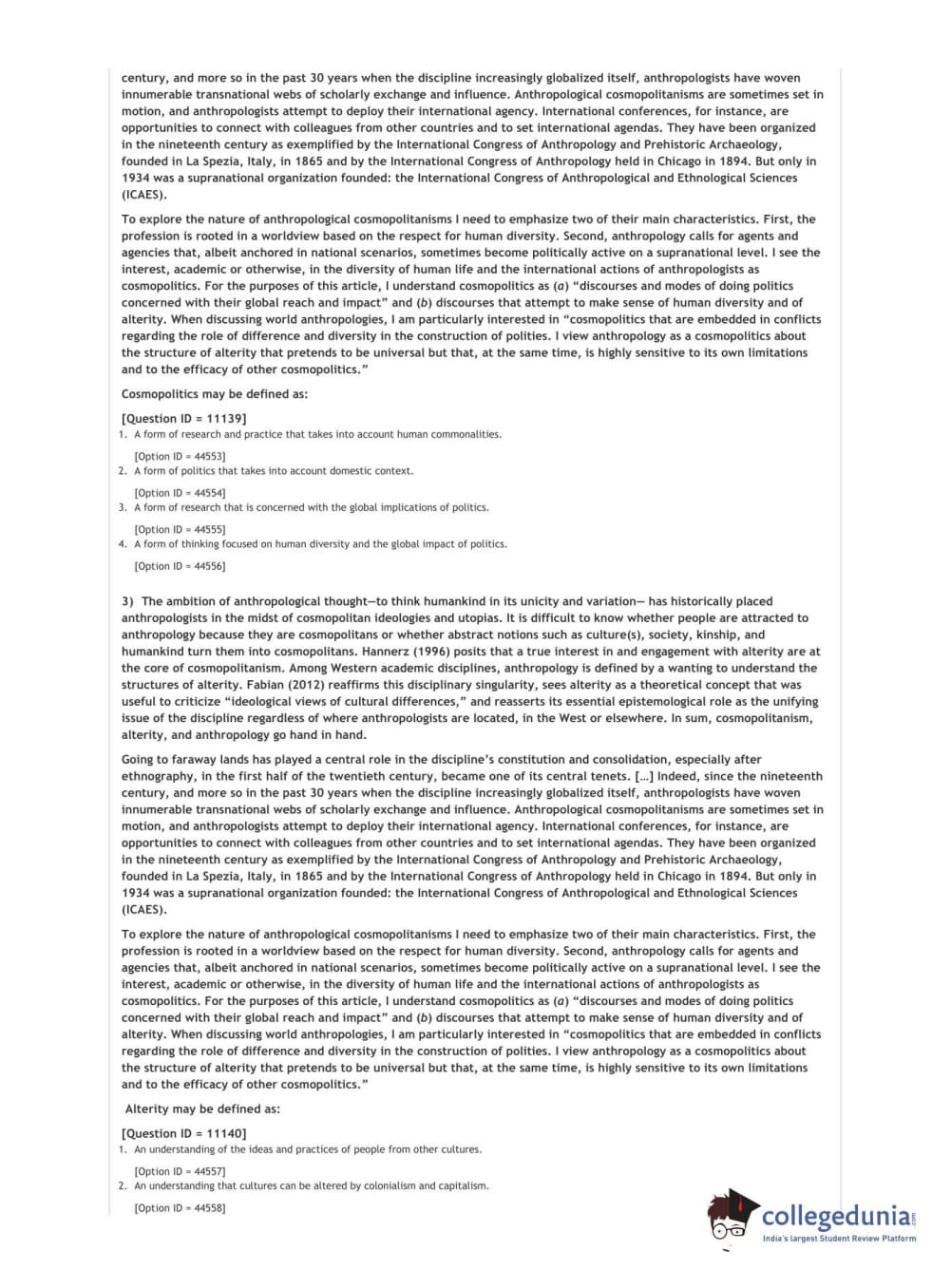 DUET 2021 DU MPhil Phd in Sociology Question paper with answer key pdf conducted on January 10, 2021 in Shift 3 is available for download. The exam was successfully organized by National Testing Agency (NTA). The question paper comprised a total of 50 questions.