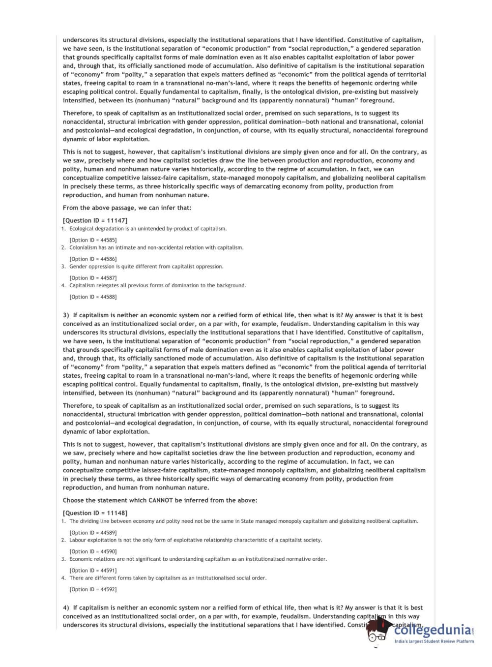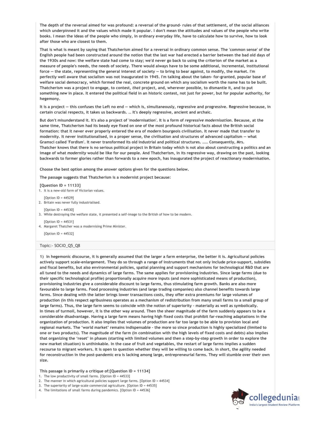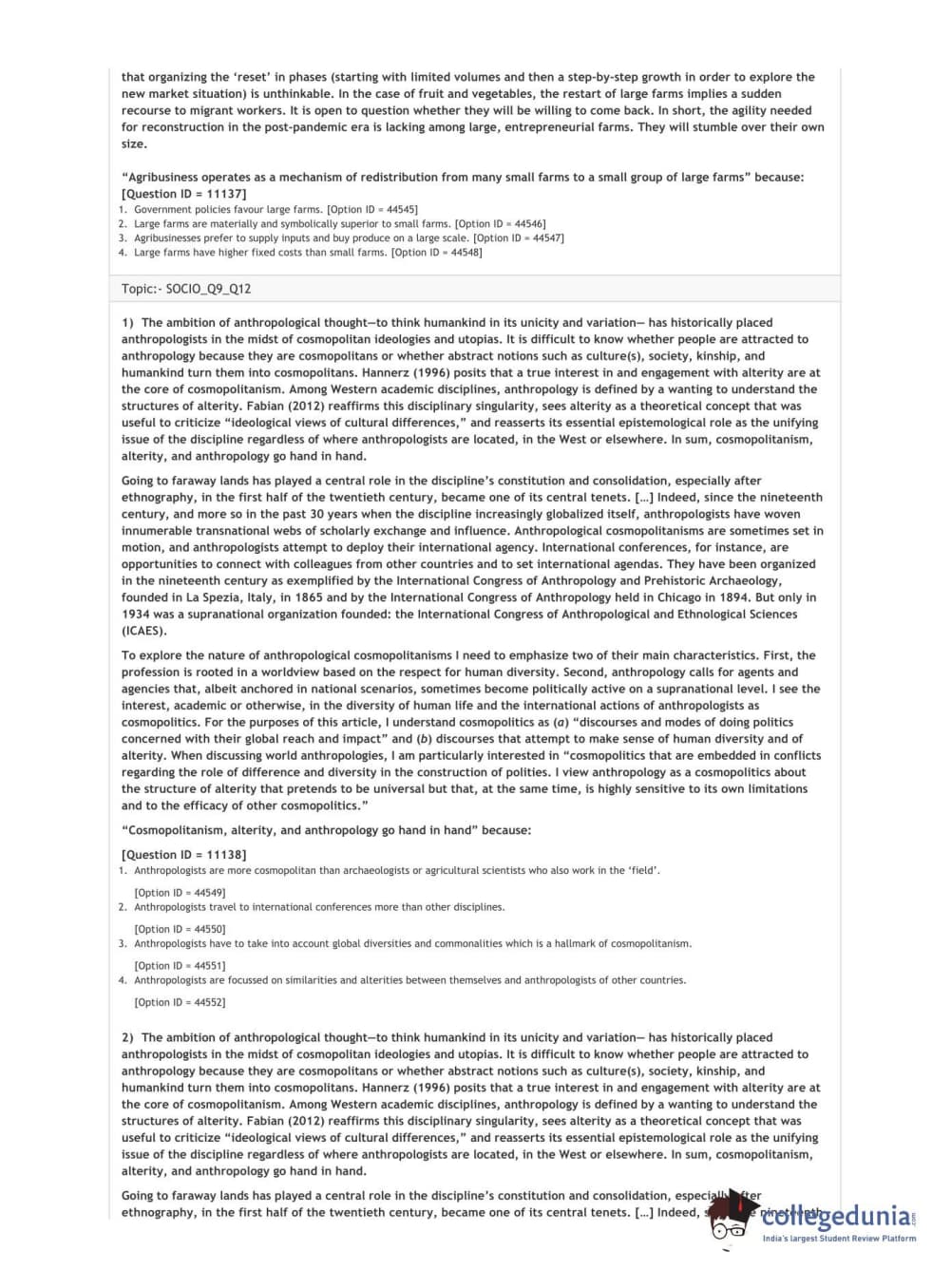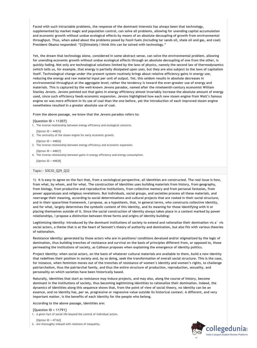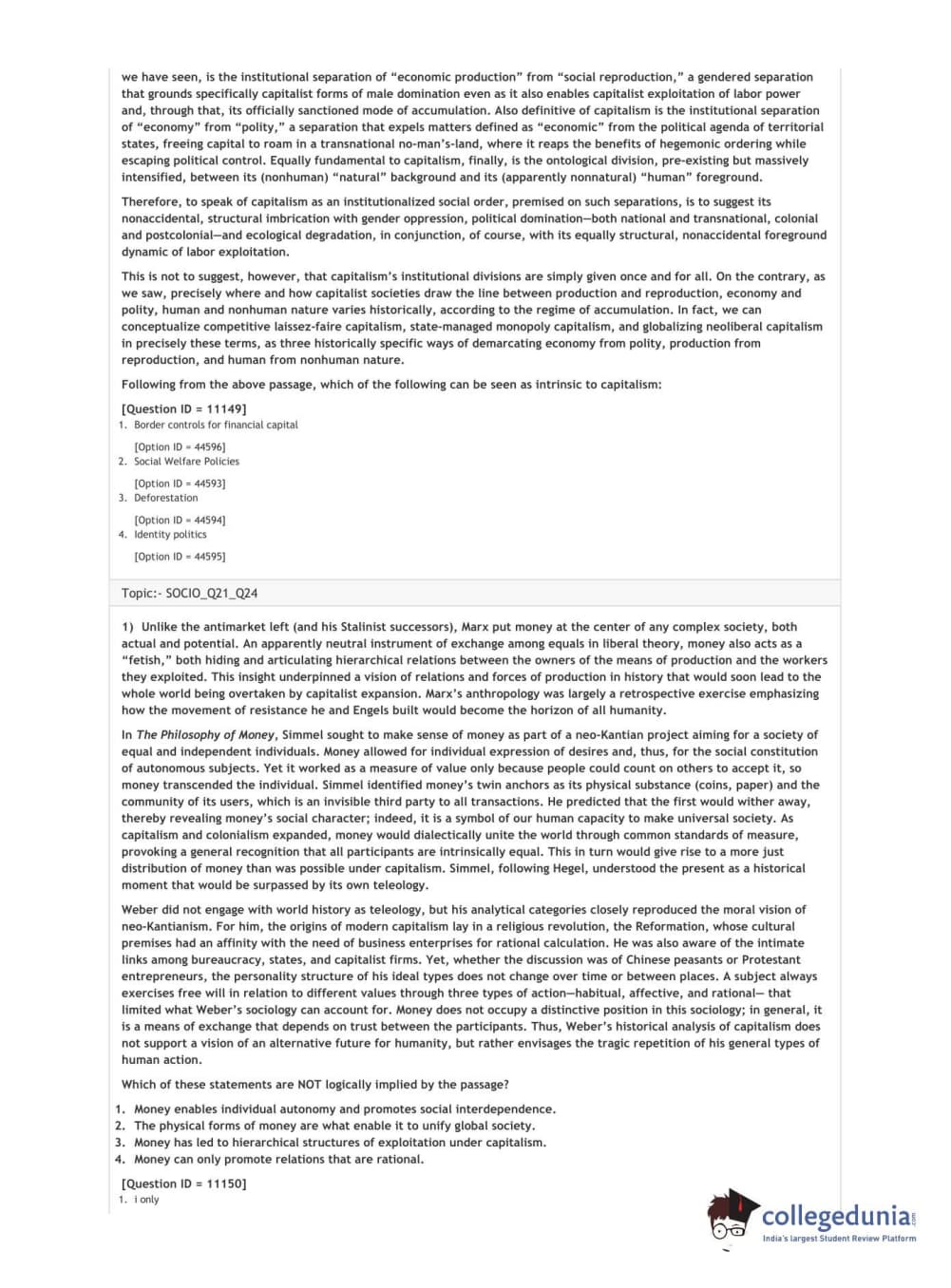 DUET 2021 DU MPhil Phd in Sociology Question paper with answer key pdf conducted on January 10, 2021 in Shift 3 is available for download. The exam was successfully organized by National Testing Agency (NTA). The question paper comprised a total of 50 questions.
