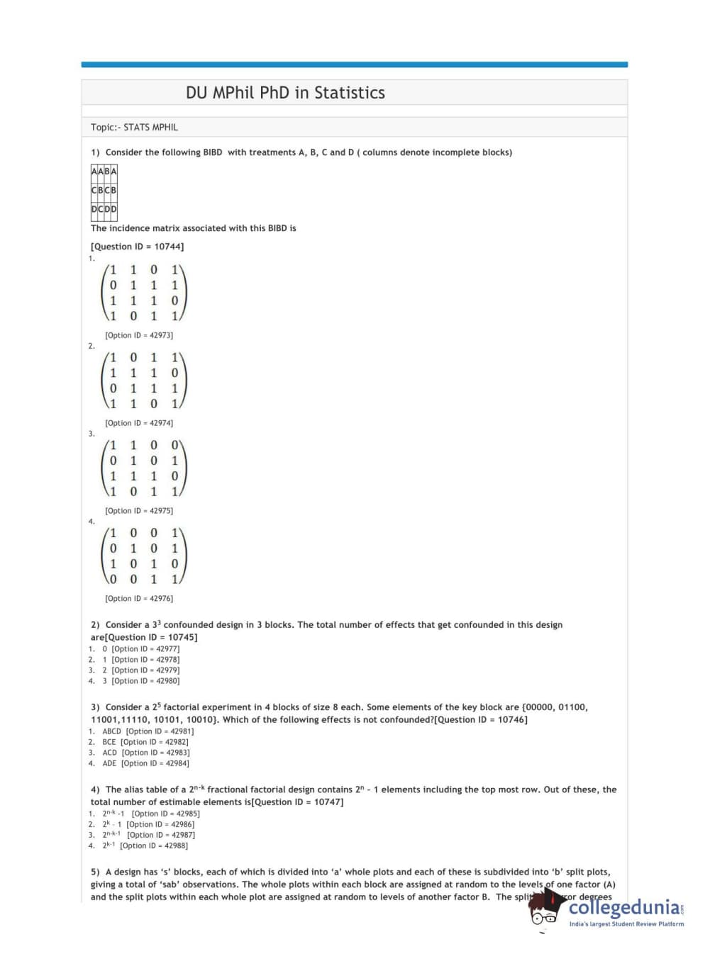 | DUET 2021 DU MPhil PhD in Statistics Question Paper PDF | DUET 2021 DU MPhil PhD in Statistics Answer Key PDF |