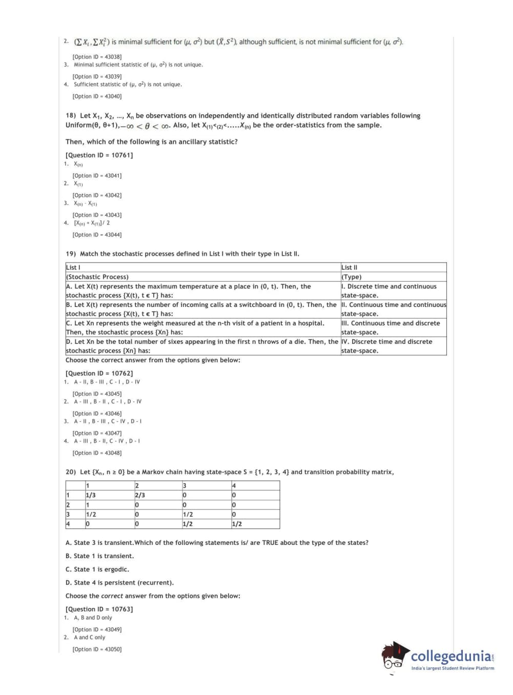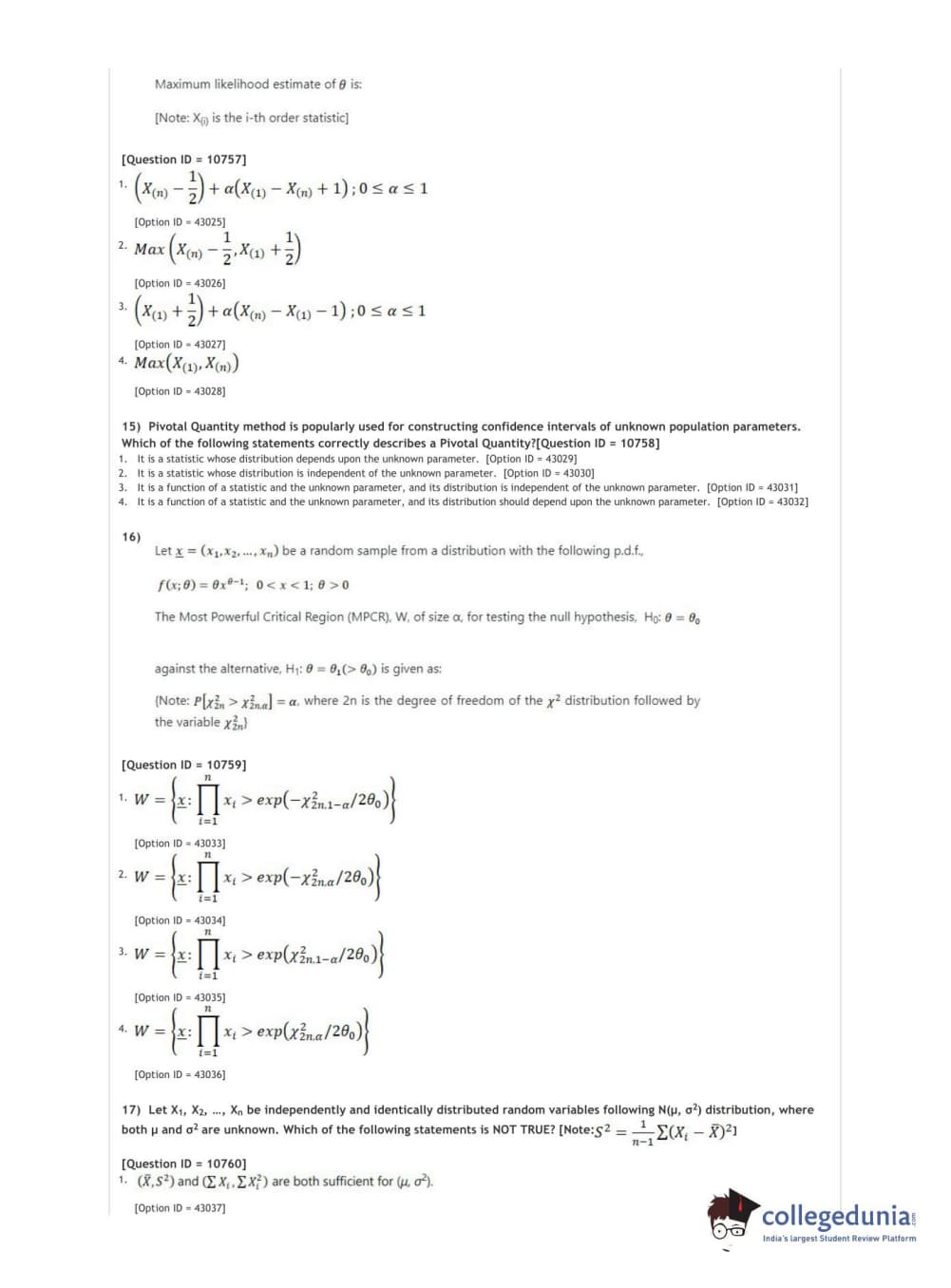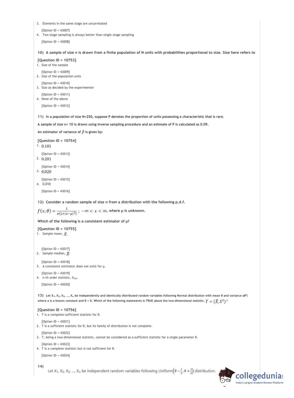 DUET 2021 DU MPhil PhD in Statistics Question Paper with Answer Key PDFs Shift 1