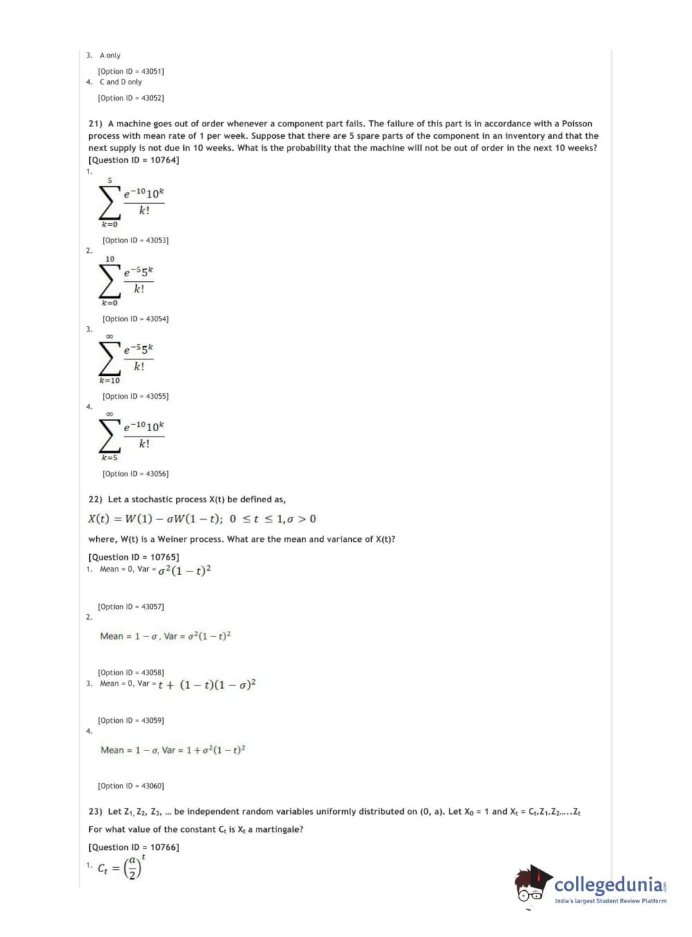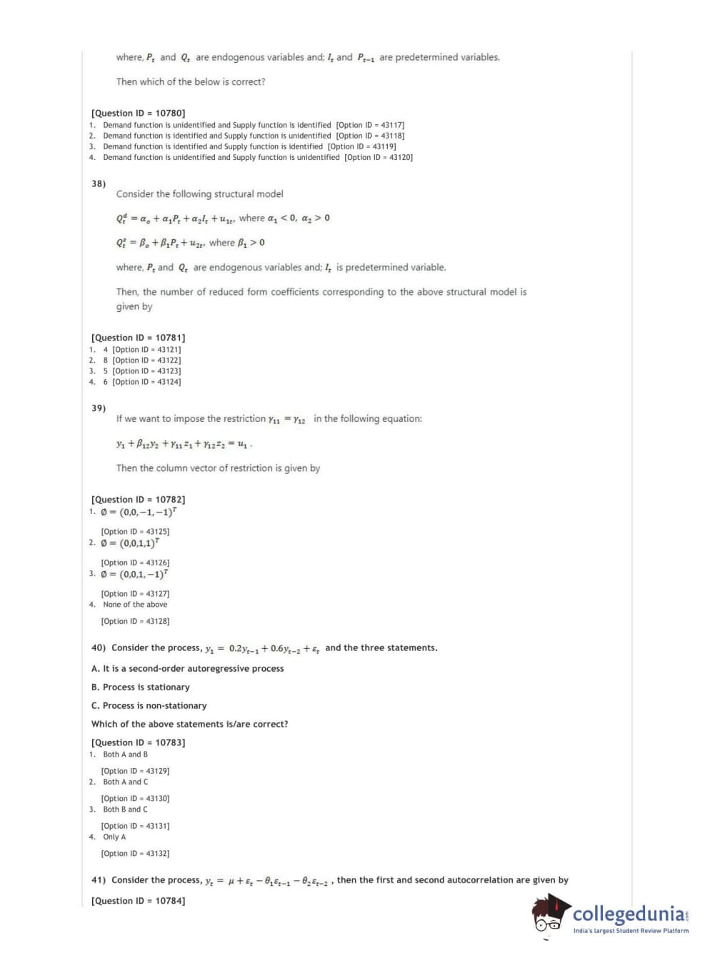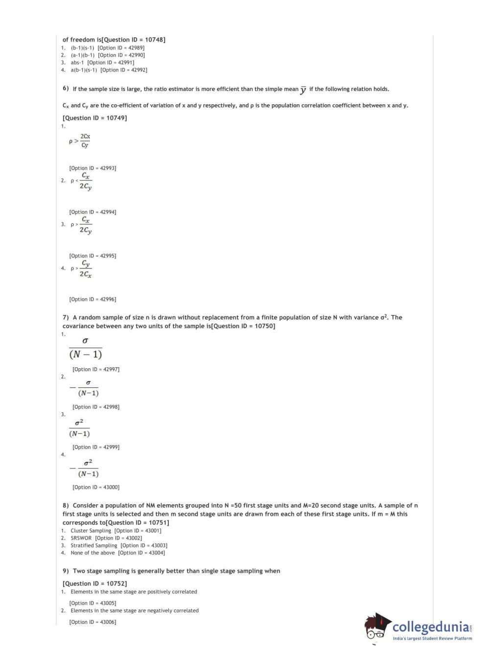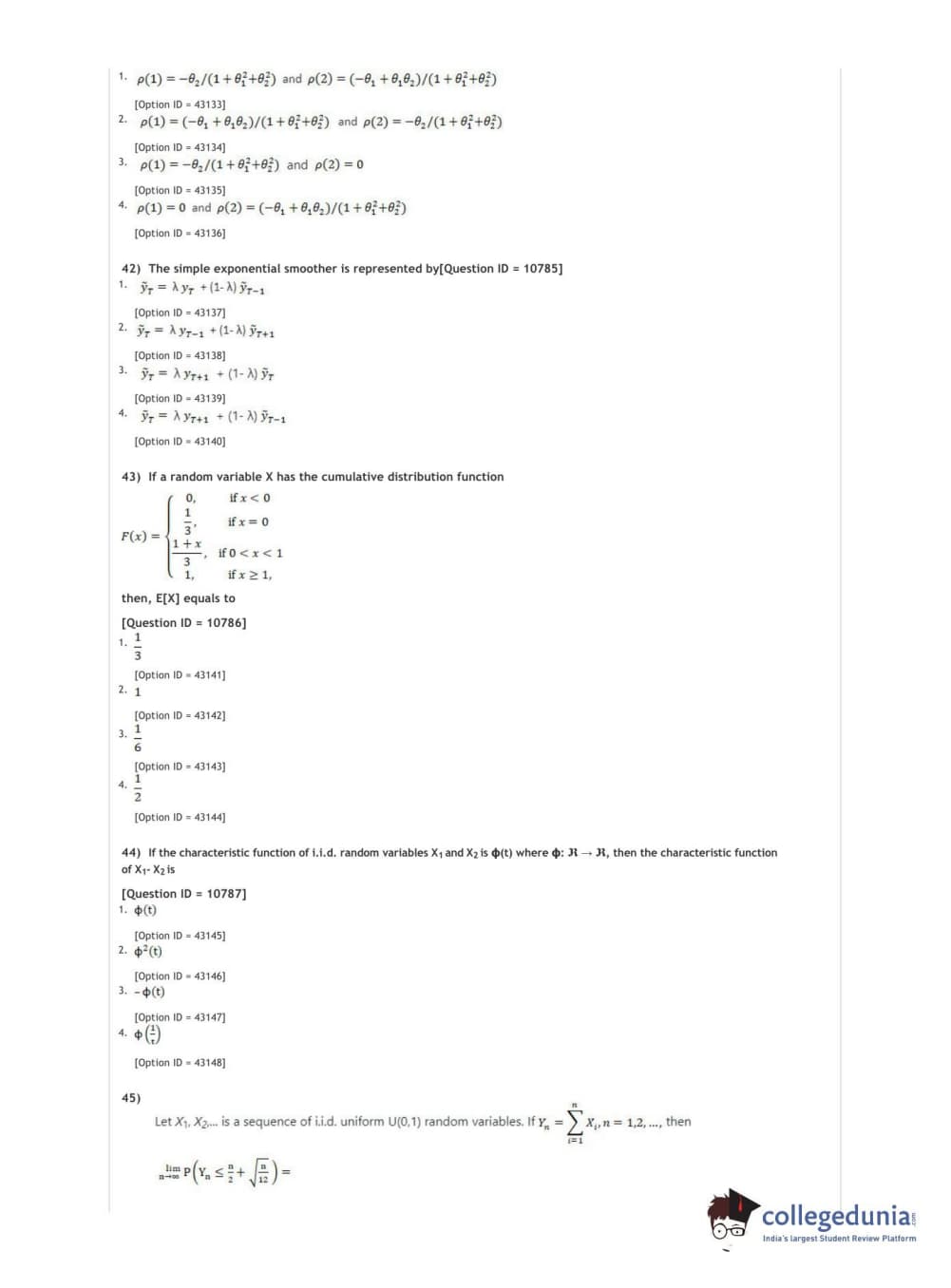 DUET 2021 DU MPhil PhD in Statistics Question Paper with Answer Key PDFs Shift 1