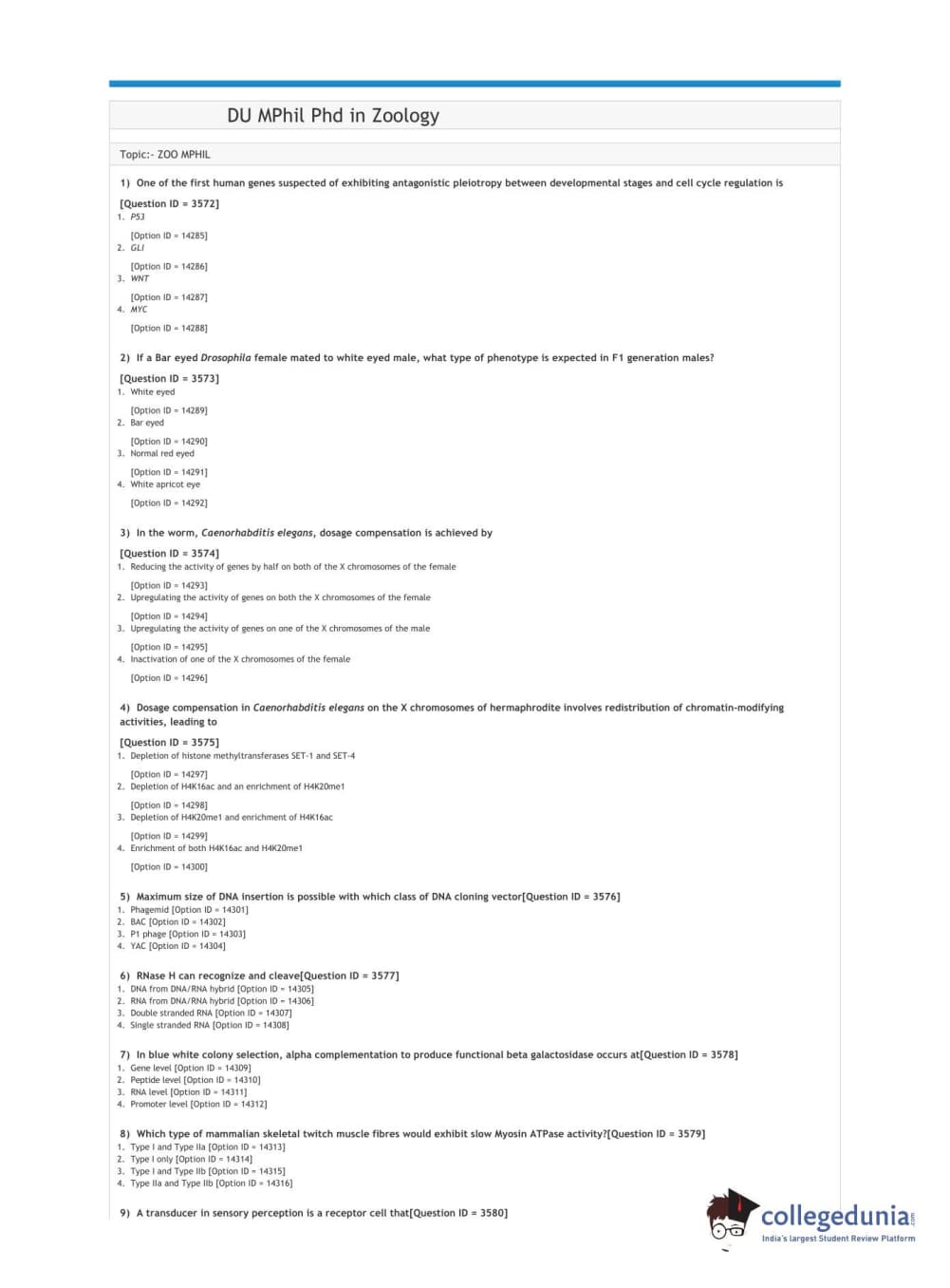 DUET 2021 DU MPhil Phd in Zoology Question Paper with Answer Key PDFs Shift 2