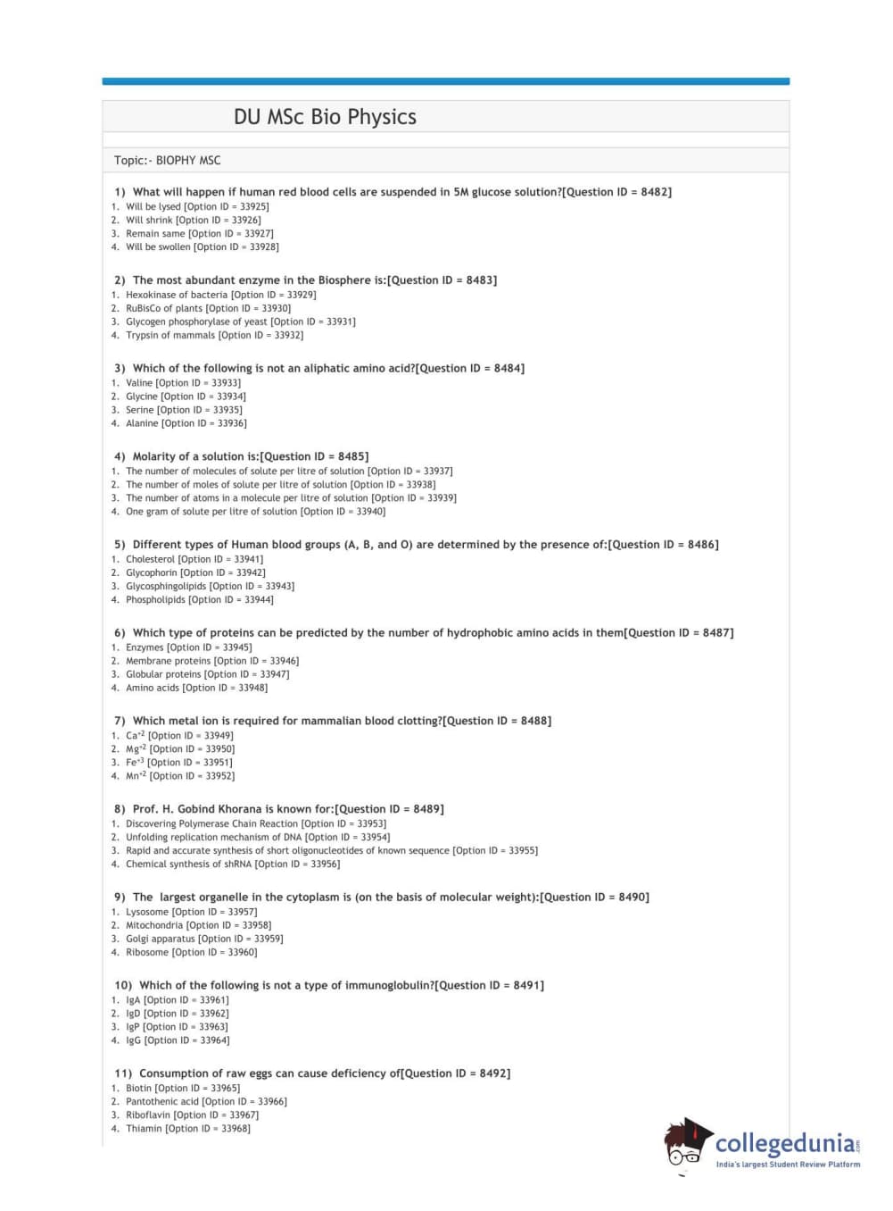 | DUET 2021 DU MSc Bio Physics Question Paper PDF | DUET 2021 DU MSc Bio Physics Answer Key PDF |