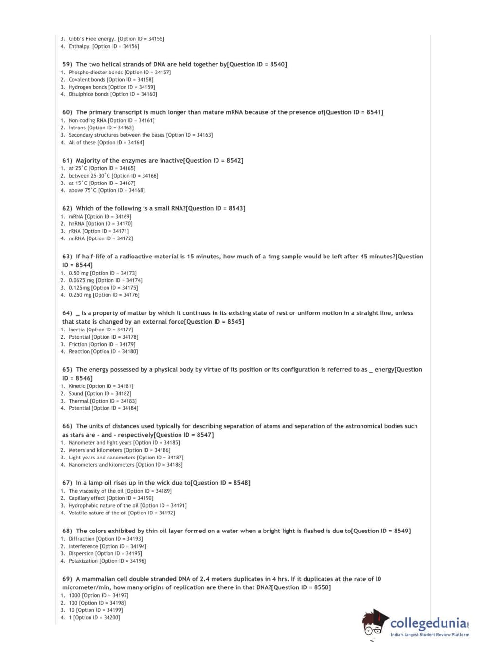 DUET 2021 DU MSc Bio Physics Question Paper with Answer Key PDFs Shift 1