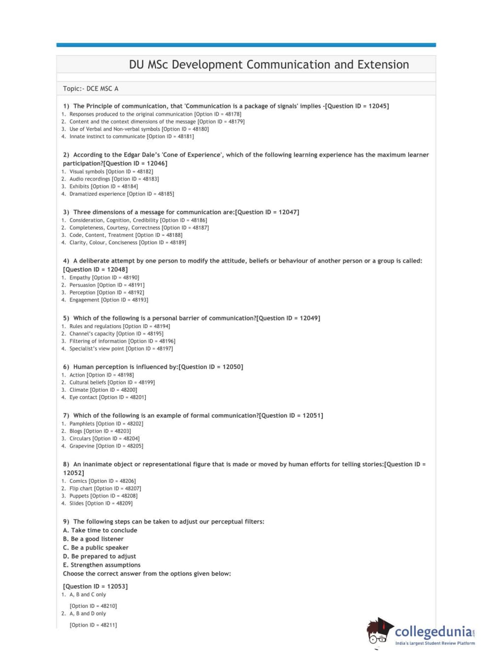 | DUET 2021 DU MSc Development Communication and Extension Question Paper PDF | DUET 2021 DU MSc Development Communication and Extension Answer Key PDF |