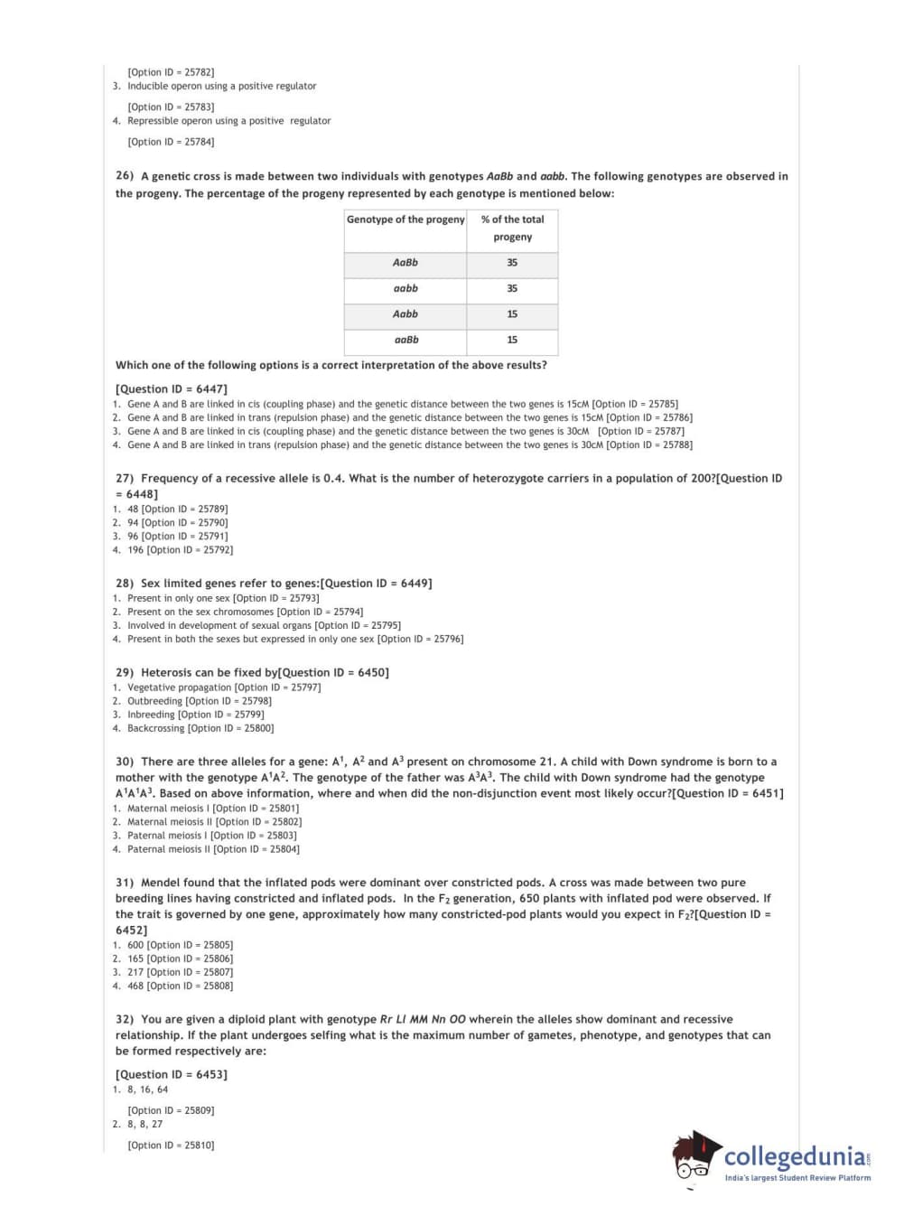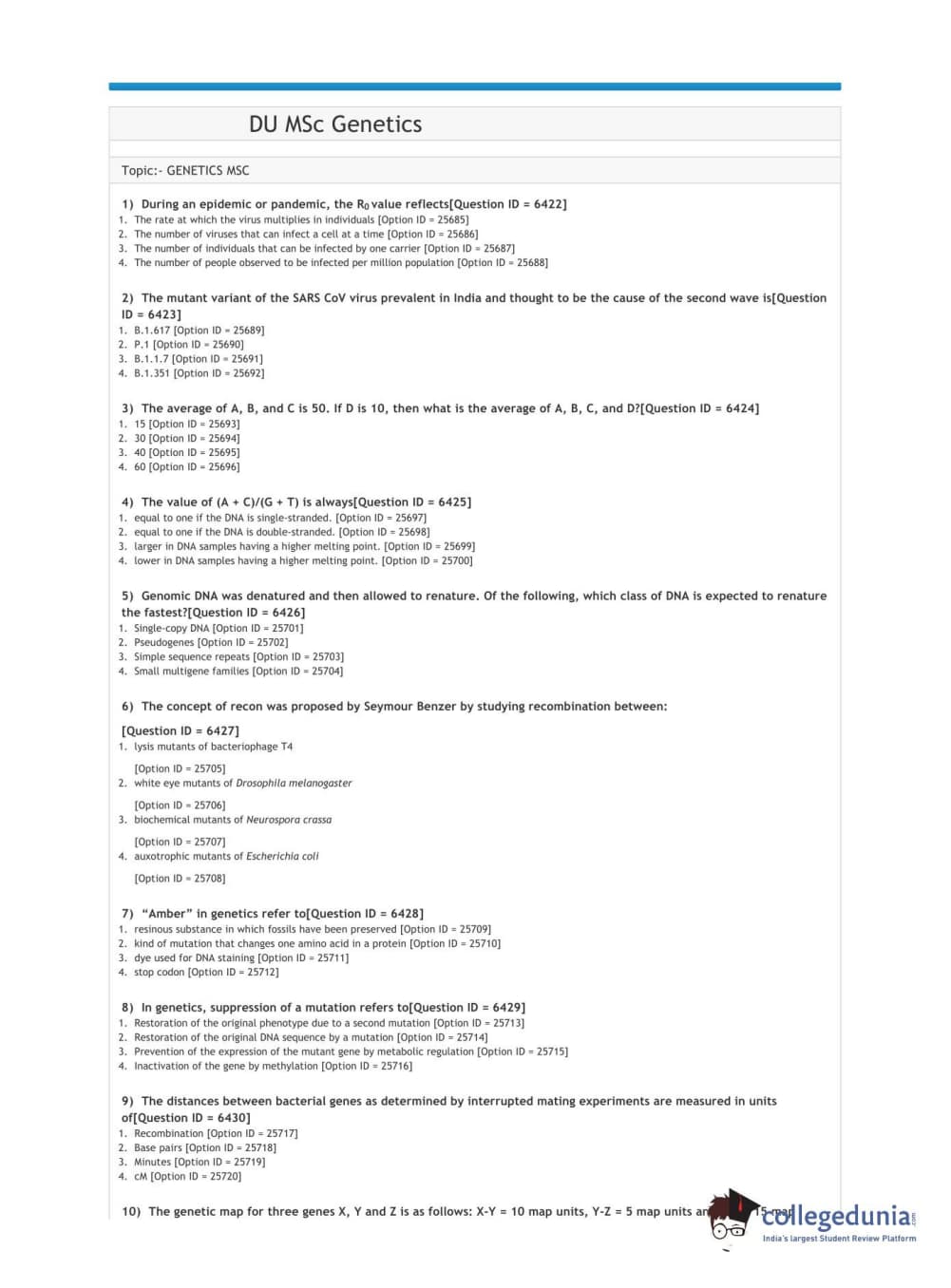 DUET 2021 DU MSc Genetics Question paper with answer key pdf conducted on September 26, 2021 in Shift 3 is available for download. The exam was successfully organized by National Testing Agency (NTA). The question paper comprised a total of 100 questions.