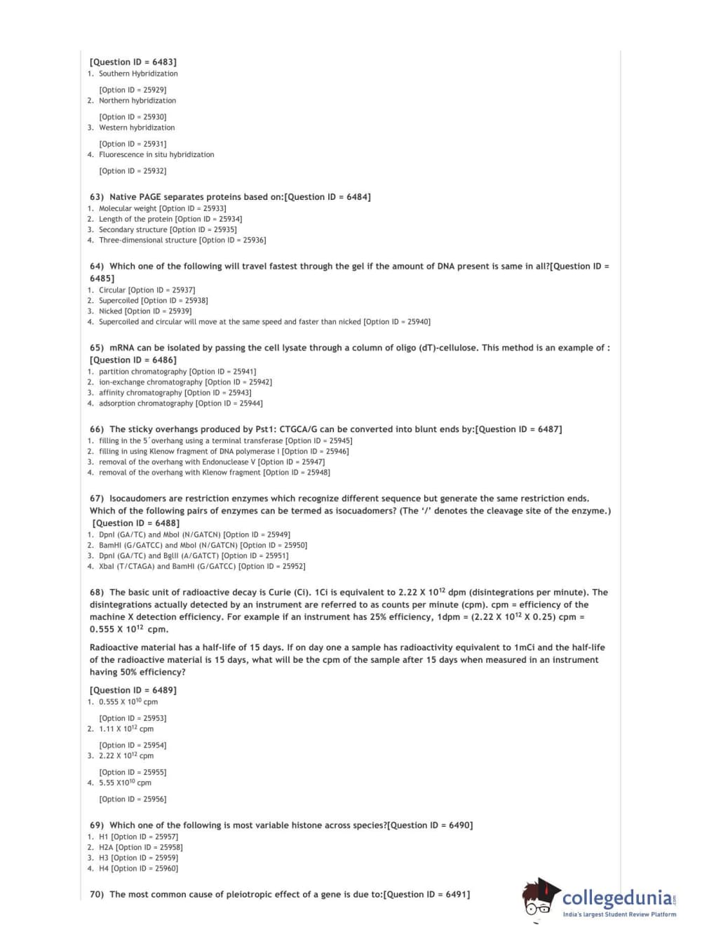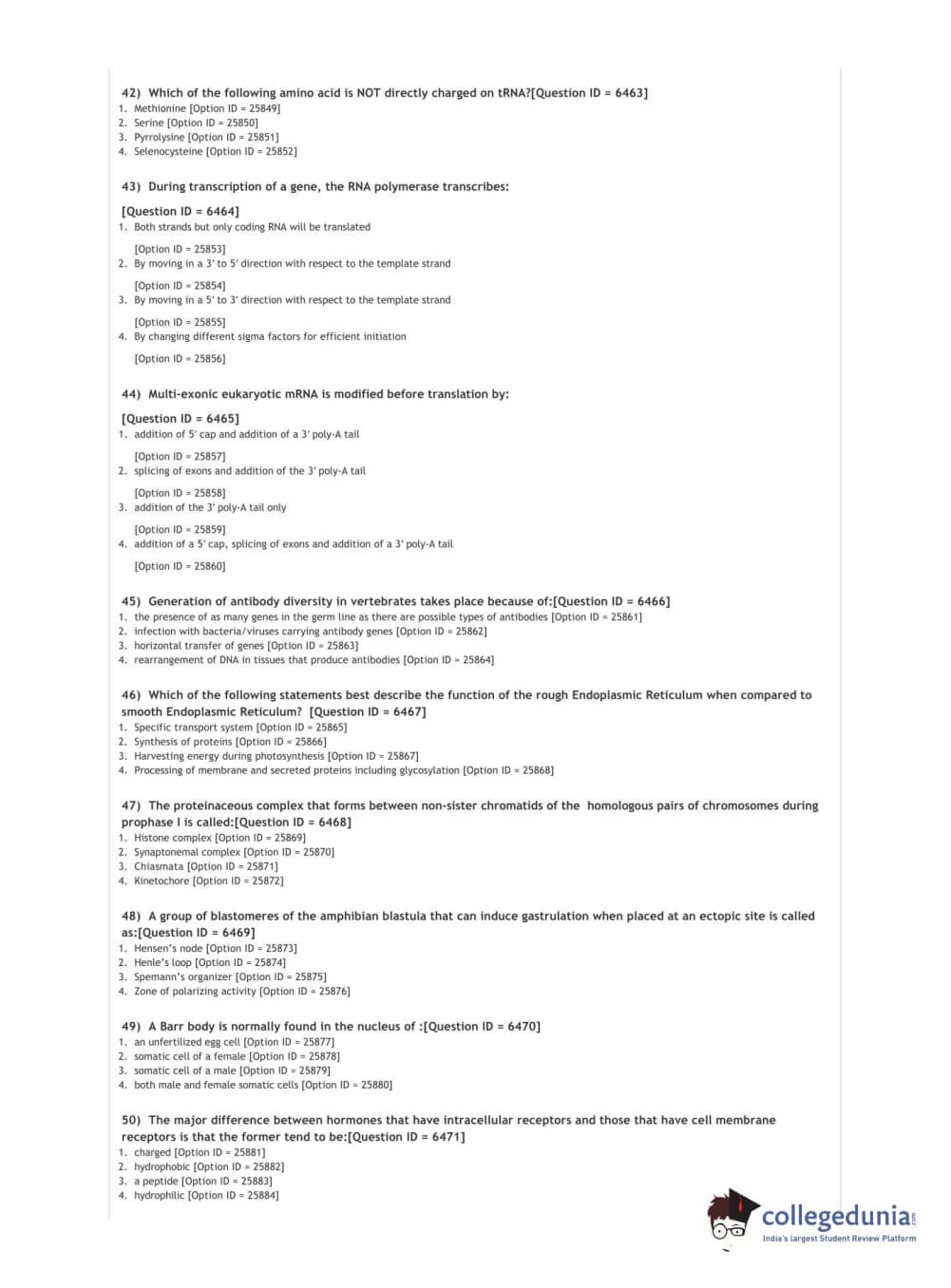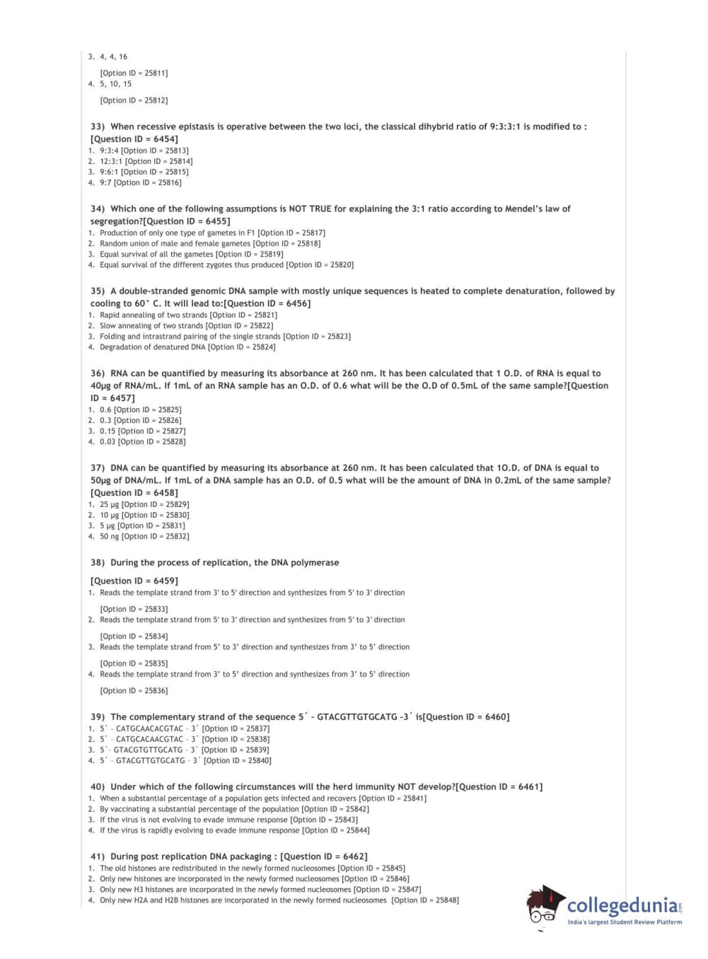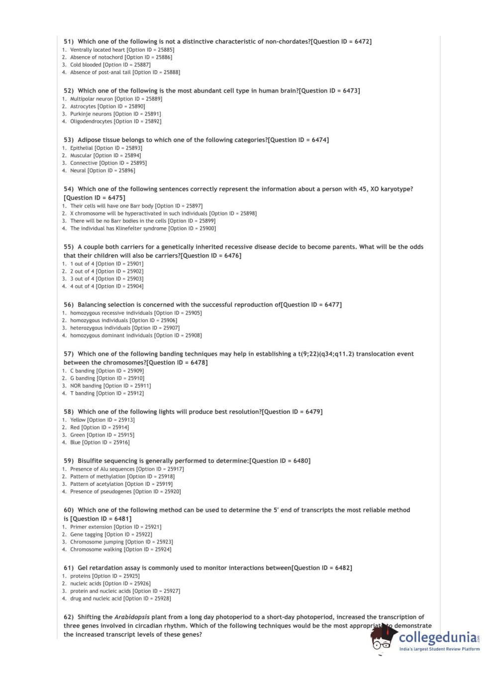 DUET 2021 DU MSc Genetics Question Paper with Answer Key PDFs Shift 3