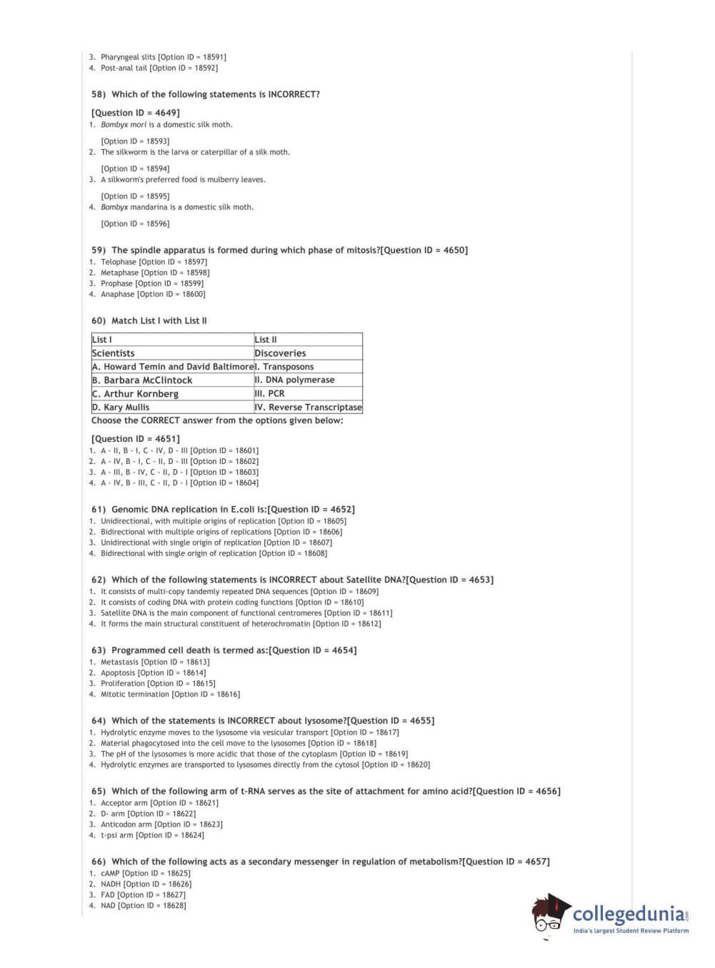 DUET 2021 DU MSc in Bio Sci N MSc PhD Comb degree in Bio Sci Question paper with answer key pdf conducted on January 10, 2021 in Shift 1 is available for download. The exam was successfully organized by National Testing Agency (NTA). The question paper comprised a total of 100 questions.