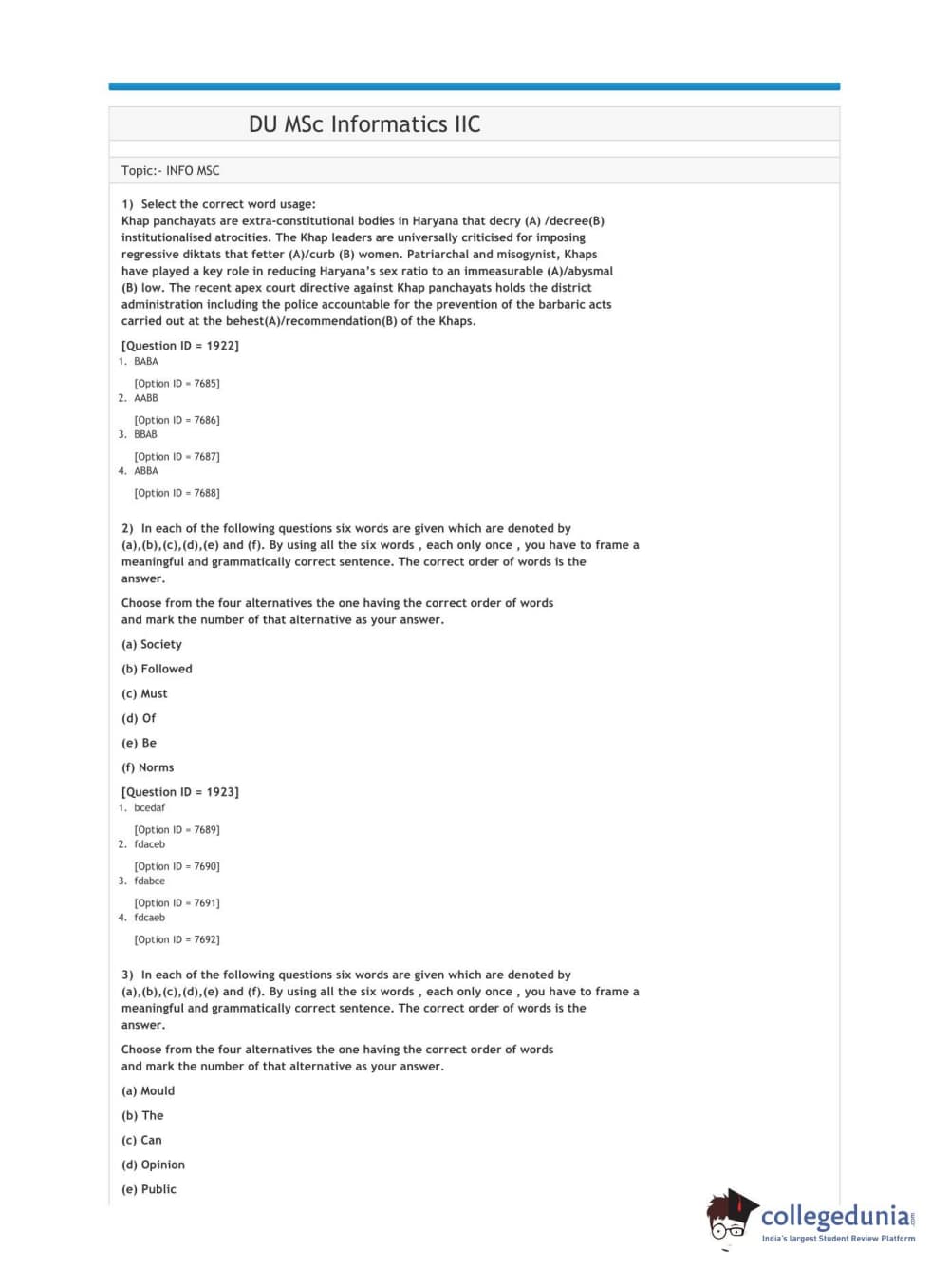 | DUET 2021 DU MSc Informatics IIC Question Paper PDF | DUET 2021 DU MSc Informatics IIC Answer Key PDF |