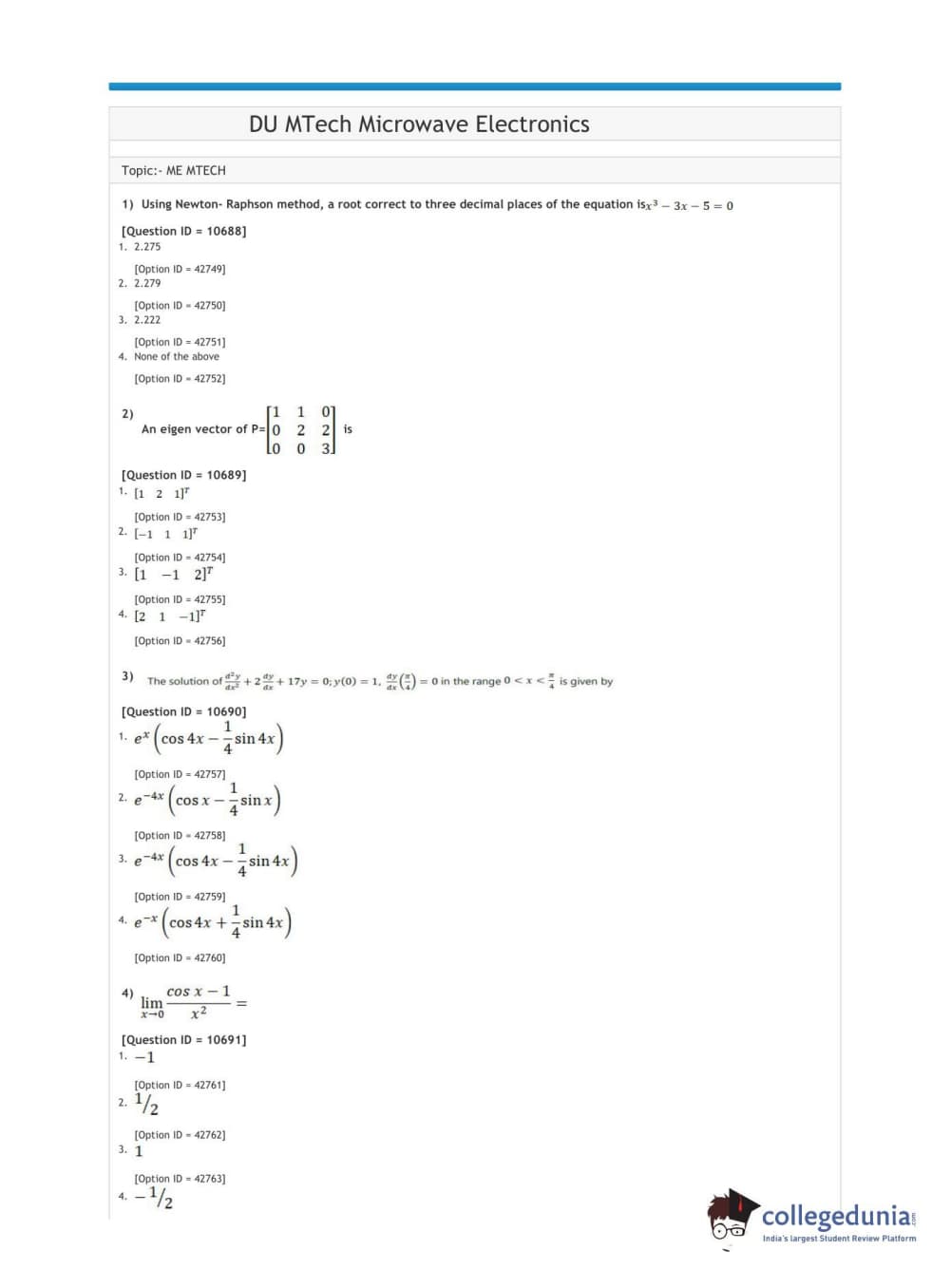 | DUET 2021 DU MTech Microwave Electronics Question Paper PDF | DUET 2021 DU MTech Microwave Electronics Answer Key PDF |