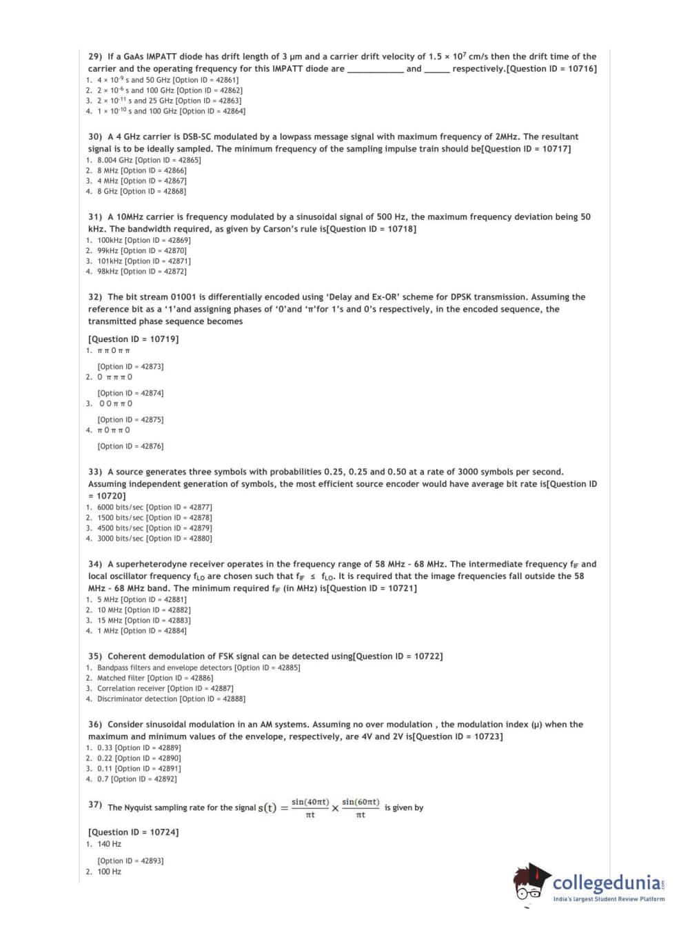 DUET 2021 DU MTech Microwave Electronics Question Paper with Answer Key PDFs Shift 3