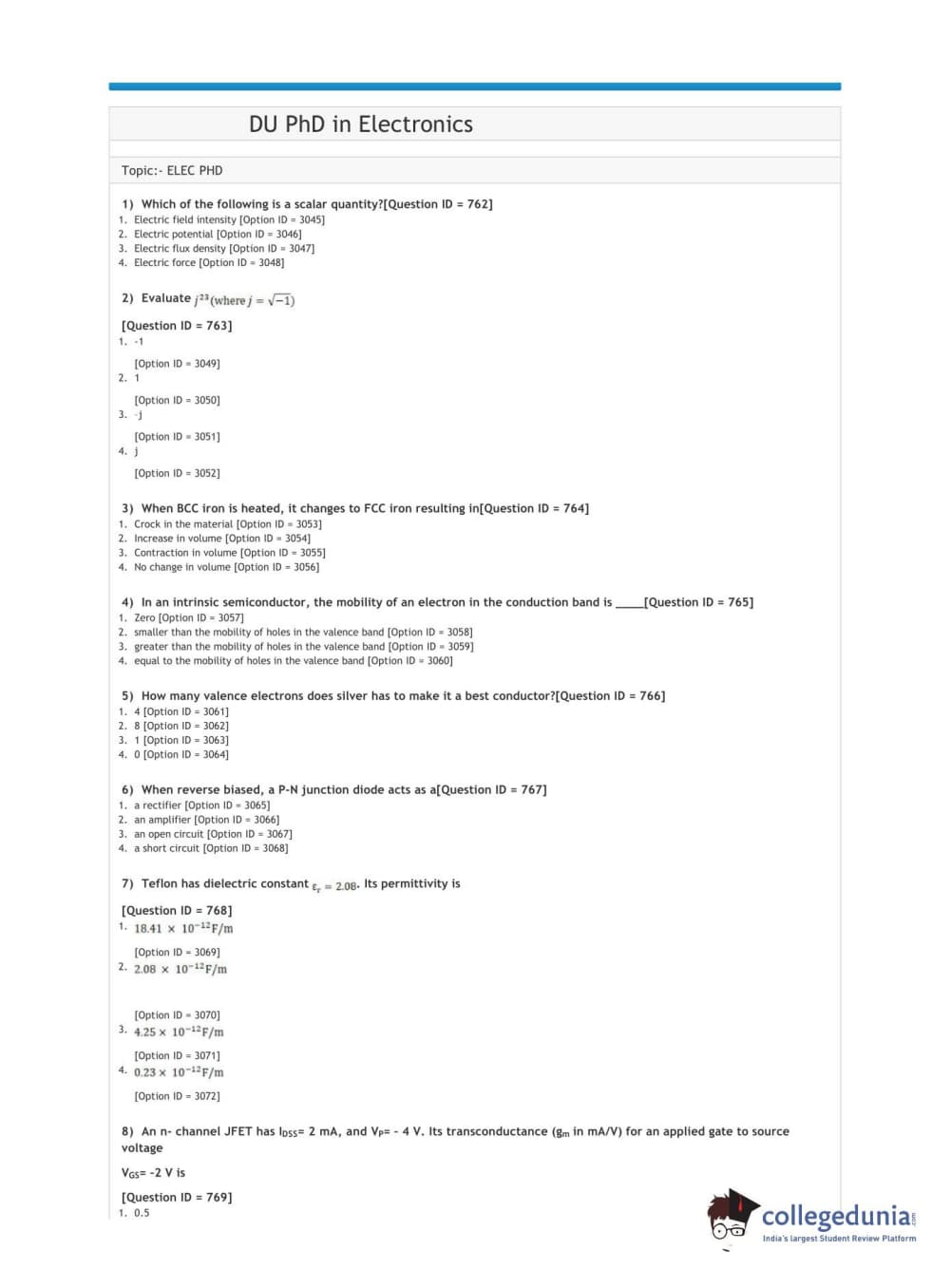 | DUET 2021 DU PhD in Electronics Question Paper PDF | DUET 2021 DU PhD in Electronics Answer Key PDF |