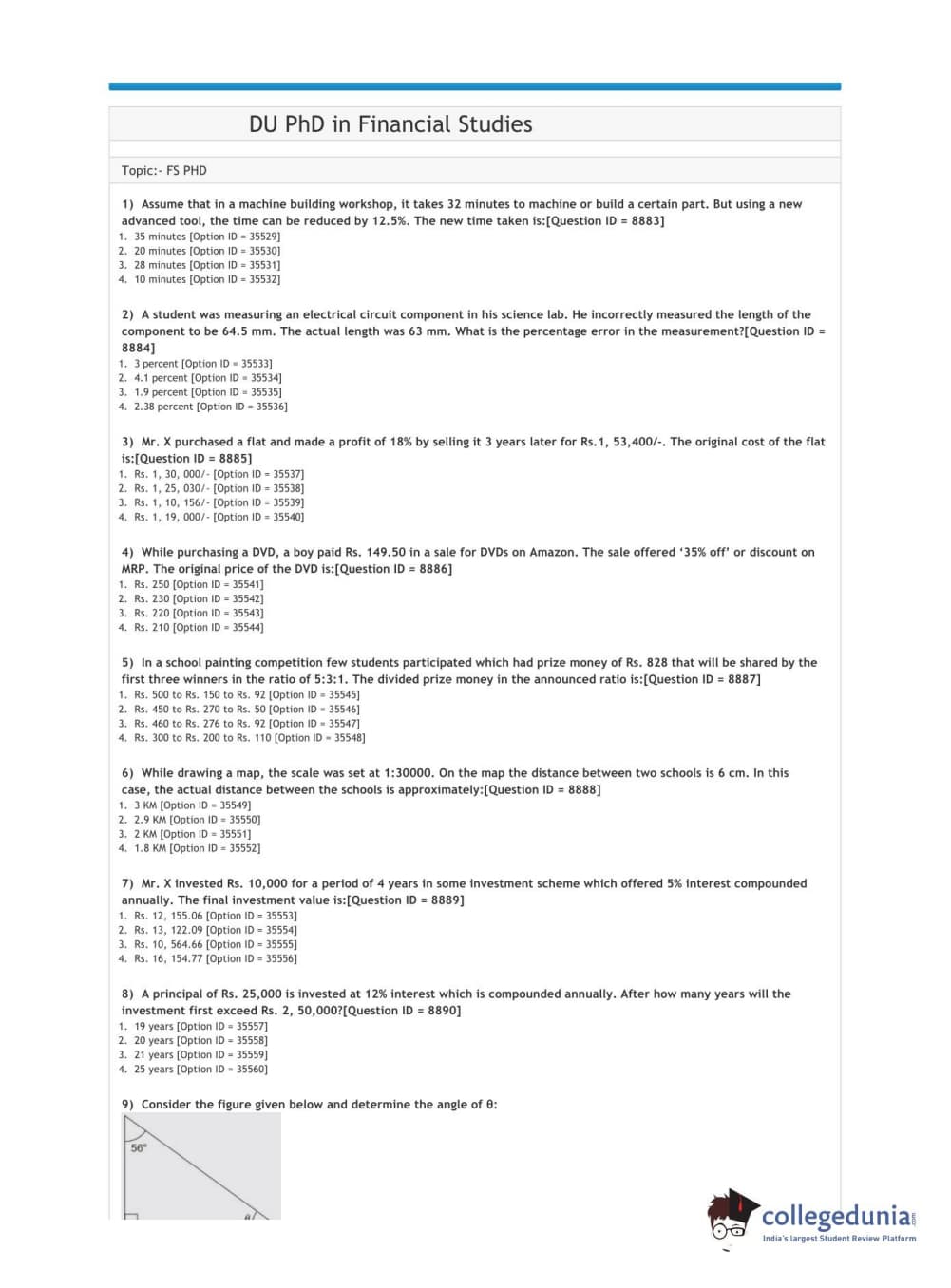 DUET 2021 DU PhD in Financial Studies Question Paper with Answer Key PDFs Shift 2