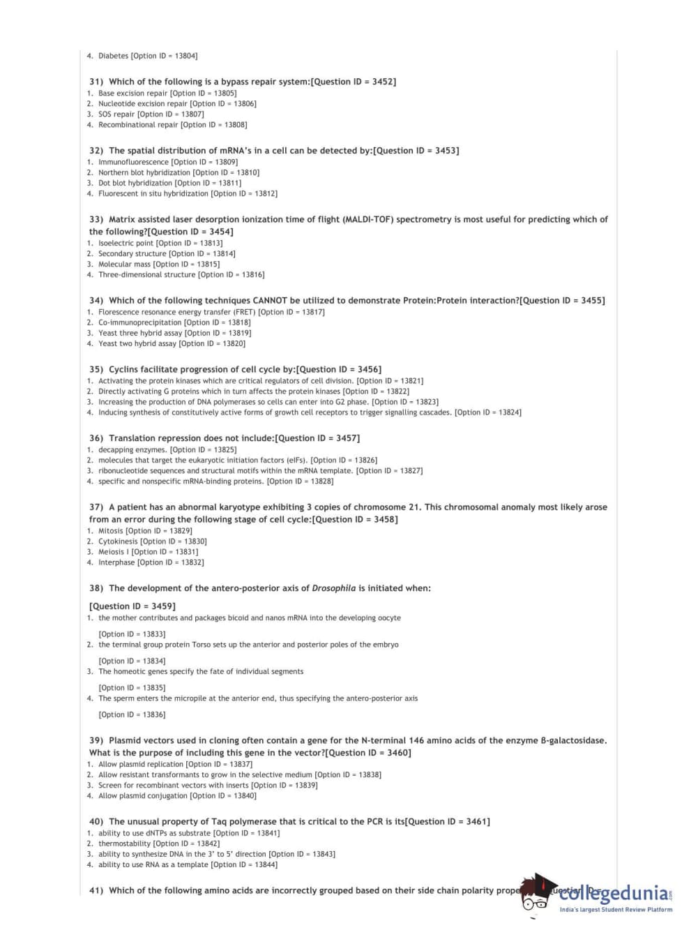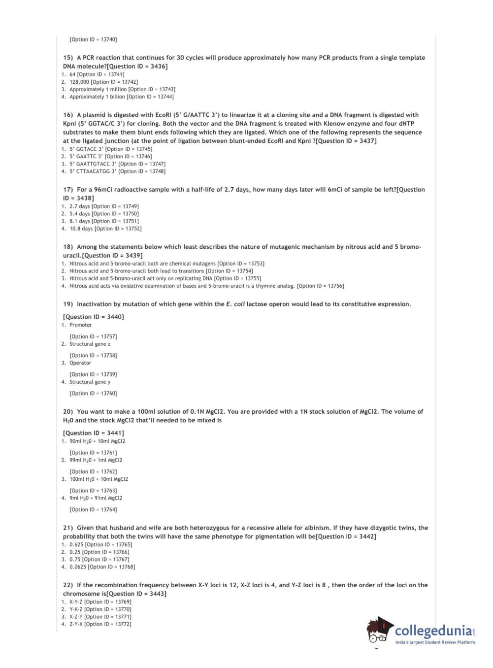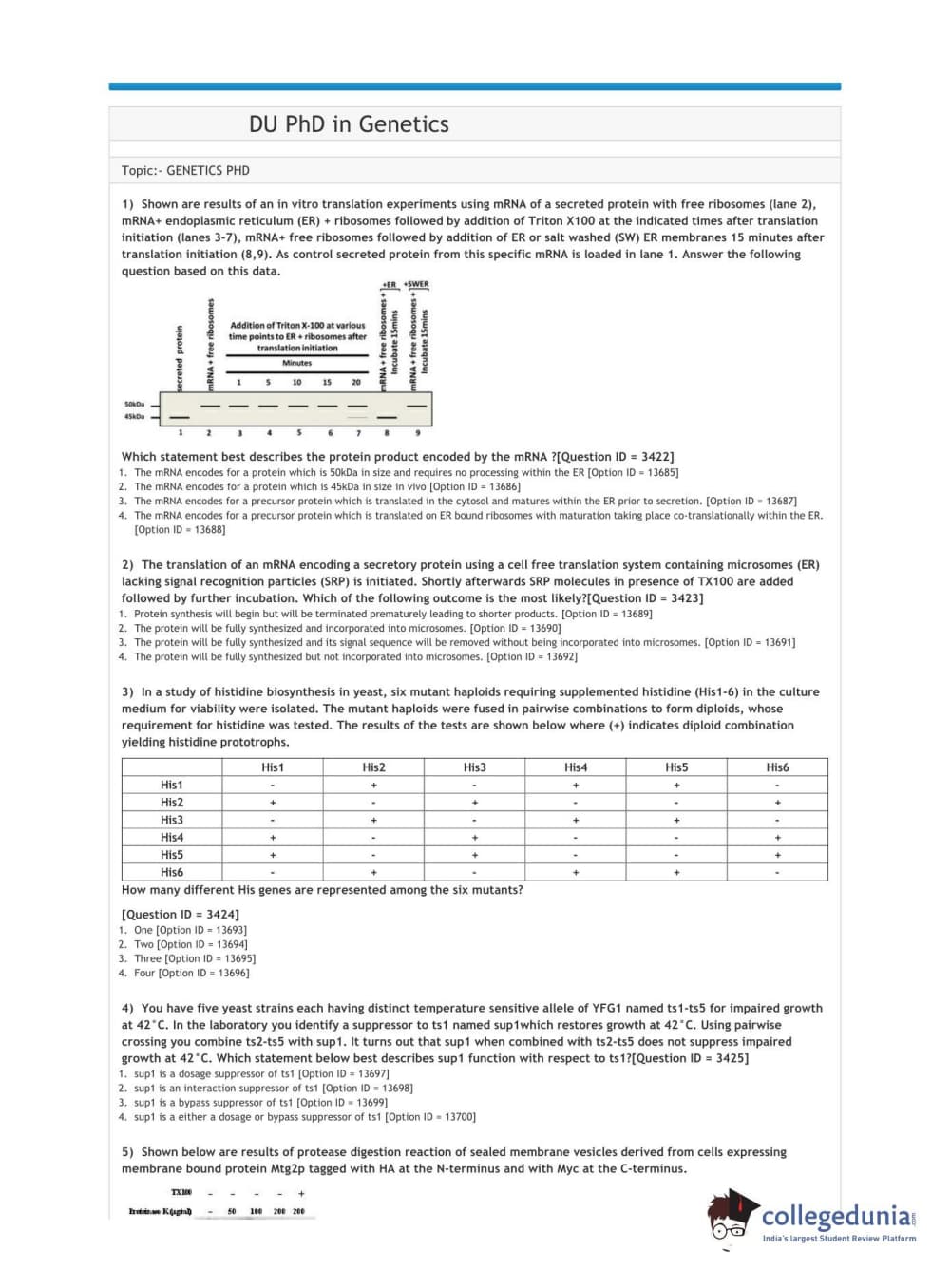 DUET 2021 DU PhD in Genetics Question Paper with Answer Key PDFs Shift 3