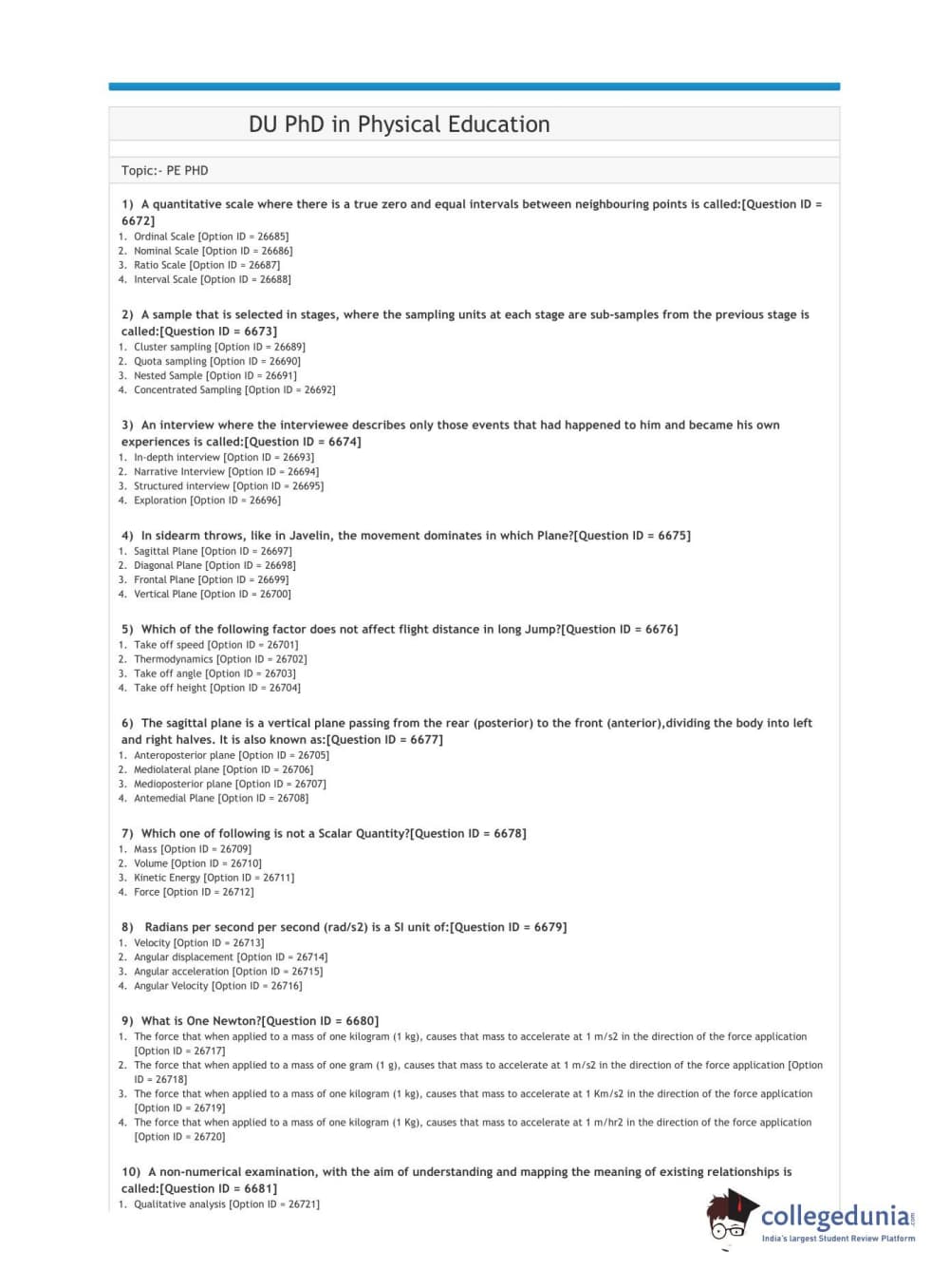 DUET 2021 DU PhD in Physical Education Question Paper with Answer Key PDFs Shift 2